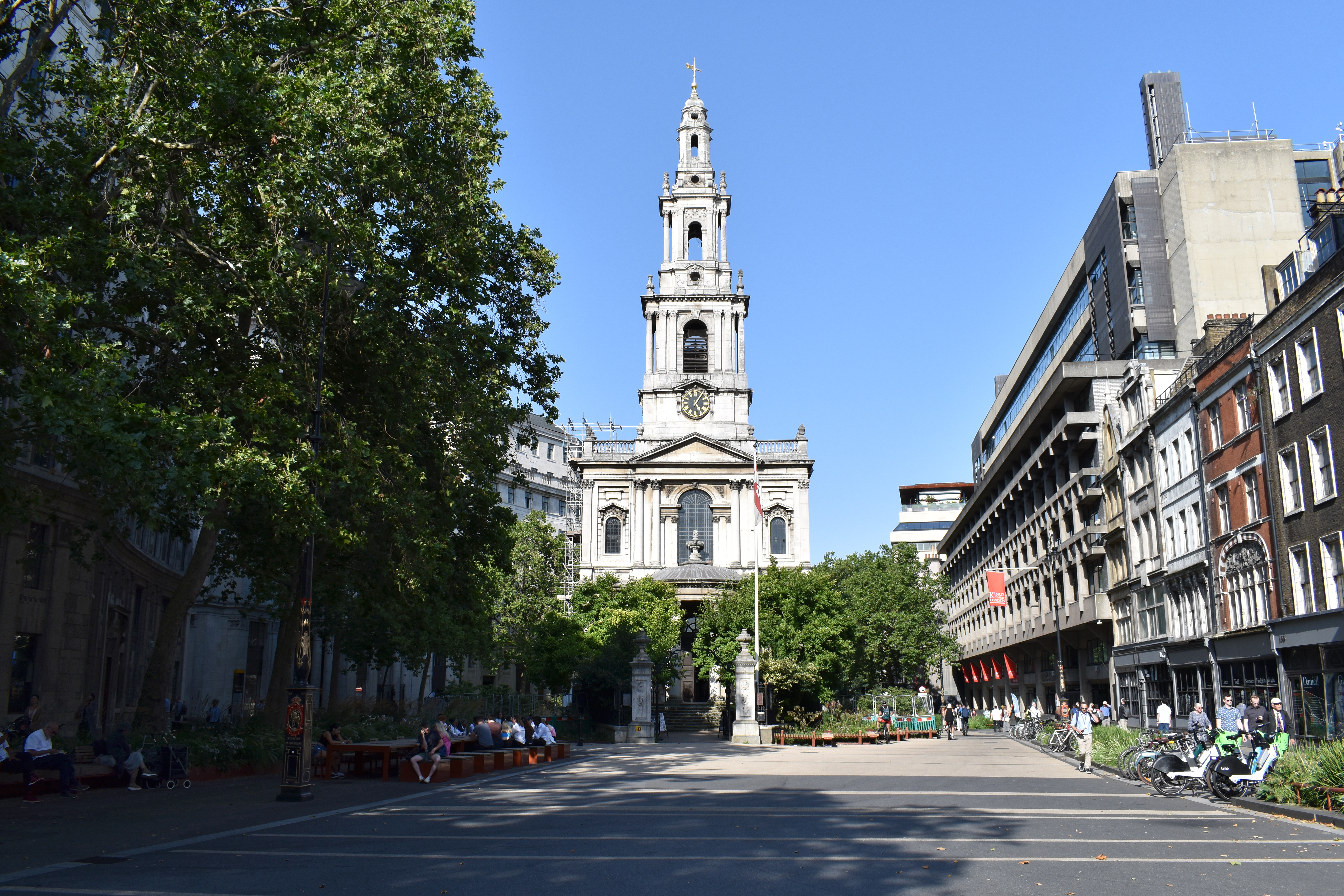 Рядом с Королевскими судами правосудия XIX века на улице Стрэнд расположена Церковь Святого Климента Датского. Хотя первая церковь на этом месте, по преданию, была основана в IX веке датчанами, нынешнее здание заменило средневековую церковь и было построено в 1682 году знаменитым архитектором сэром Кристофером Реном. Здание Рена было разрушено бомбардировками люфтваффе во время блица и восстановлено только в 1958 году, когда оно было приспособлено для выполнения своей нынешней функции главной церкви Королевских военно-воздушных сил. Перед церковью установлена бронзовая скульптура британского государственного деятеля и писателя, премьер-министра Великобритании Уильяма Гладстона. Его статуя стоит на цоколе, окруженная аллегорическими фигурами, изображающими четыре добродетели: мужество, братство, образование и стремление.