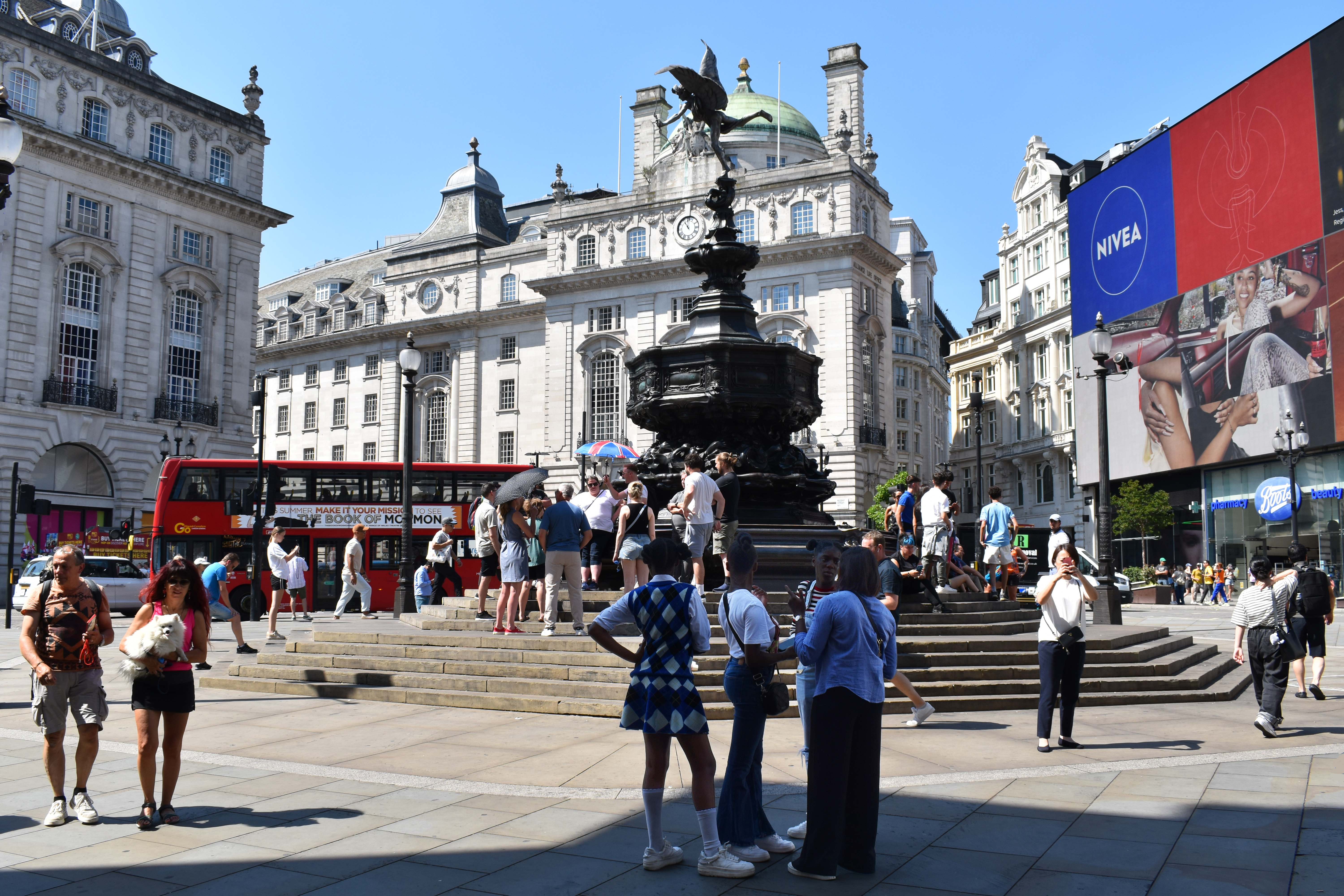 Основные достопримечательности площади Пикадилли – огромные неоновые рекламы и статуя, установленная в 1892 году в память о благотворительной деятельности лорда Шефтсбери, известного филантропа Викторианской эпохи. Созданная скульптором сэром Альфредом Гилбертом, статуя изображает Антэроса и олицетворяет "зрелую и обдуманную любовь, в противоположность Эросу – легкомысленному и ветреному тирану".