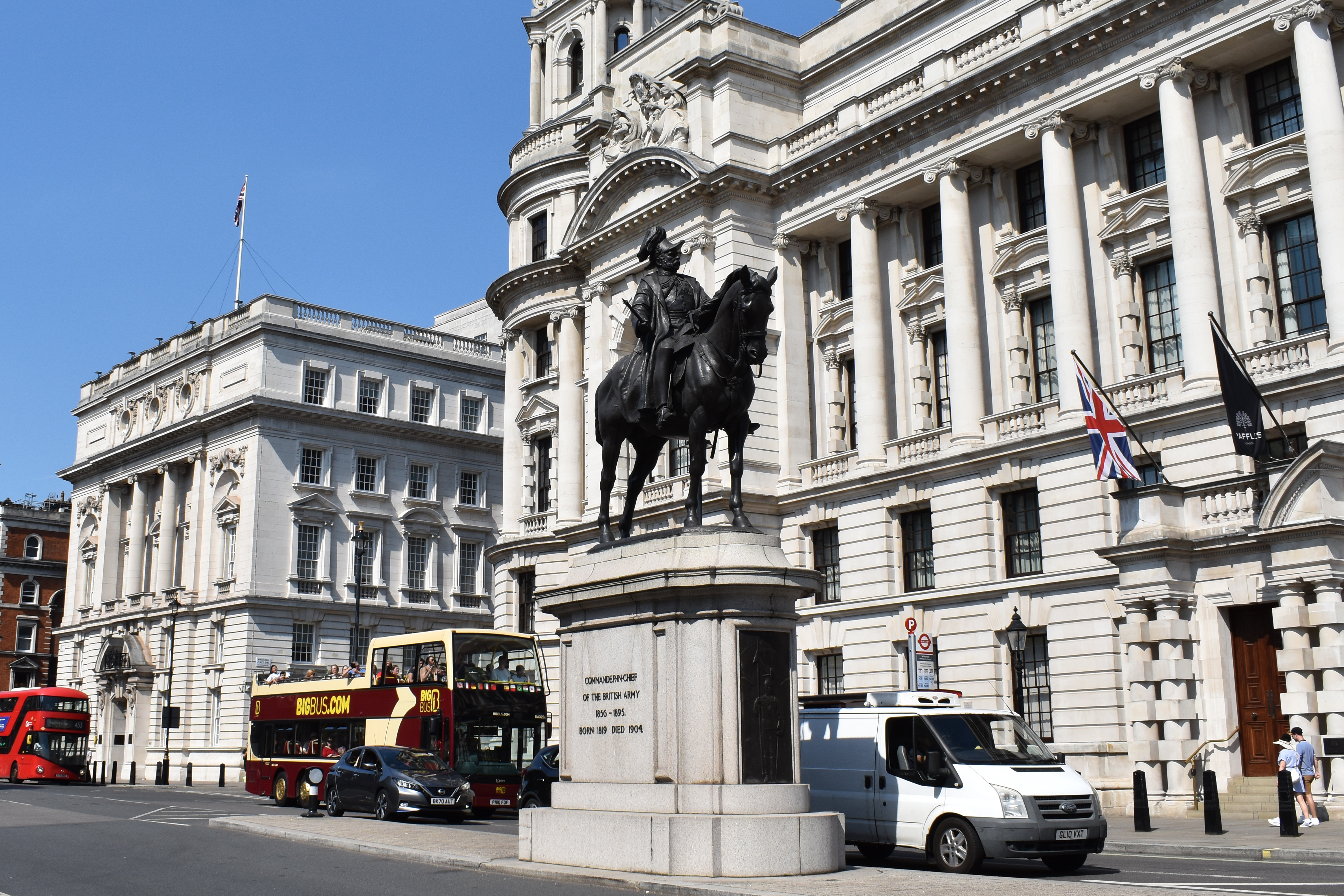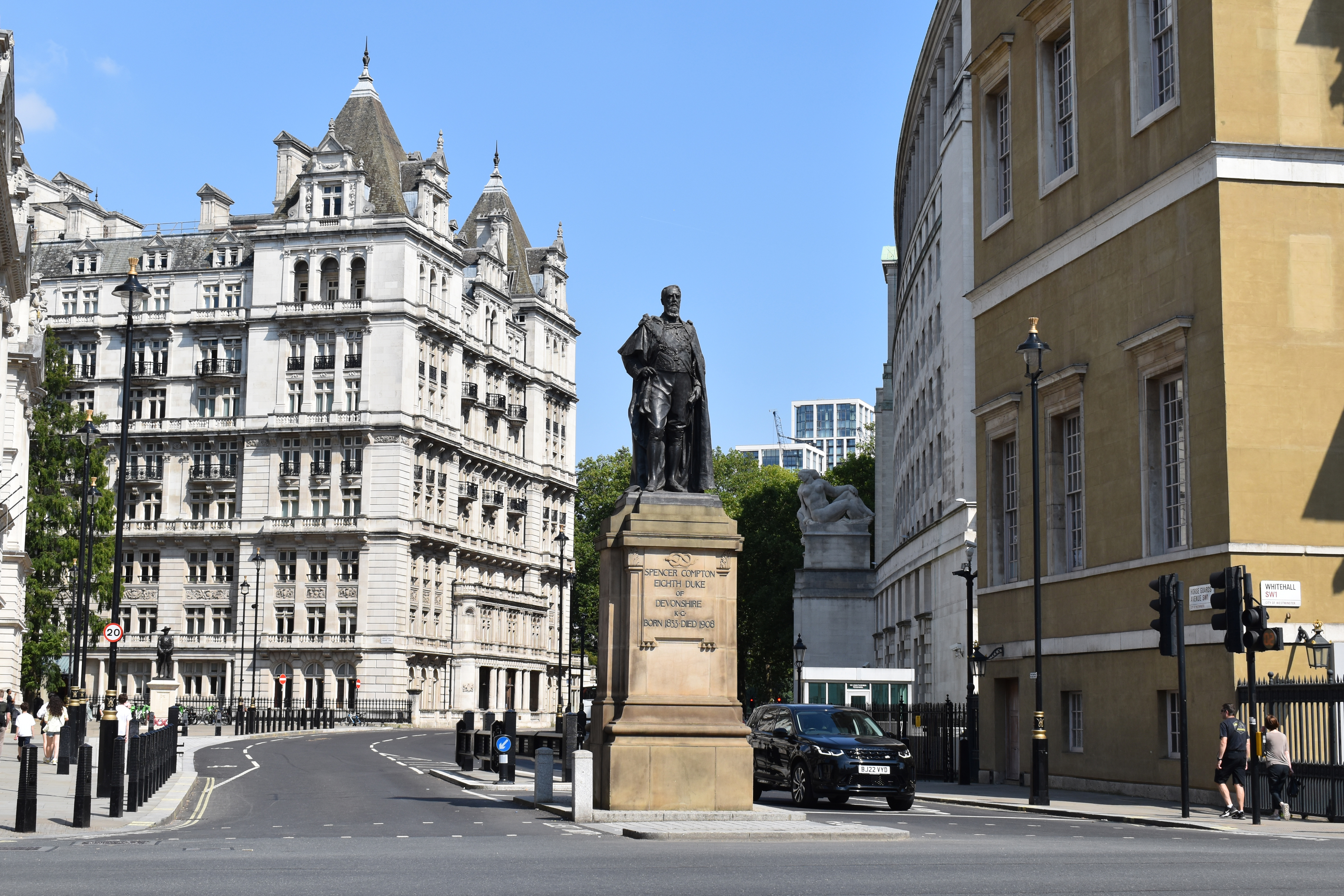 У входа на Хорсгардс-авеню в Уайтхолле установлена статуя 8-го герцога Девонширского (Спенсер Комптон Кавендиш, 1833-1908) – британского аристократа и пэра, английского государственного деятеля, либерального политика. При лорде Пальмерстоне был первым лордом адмиралтейства (1863 год) и заместителем военного министра Великобритании. Во время первого министерства Гладстона он был генеральным почтмейстером и главным секретарём Ирландии, а затем, когда Гладстон на время удалился от дел, – вождём оппозиции в нижней палате.