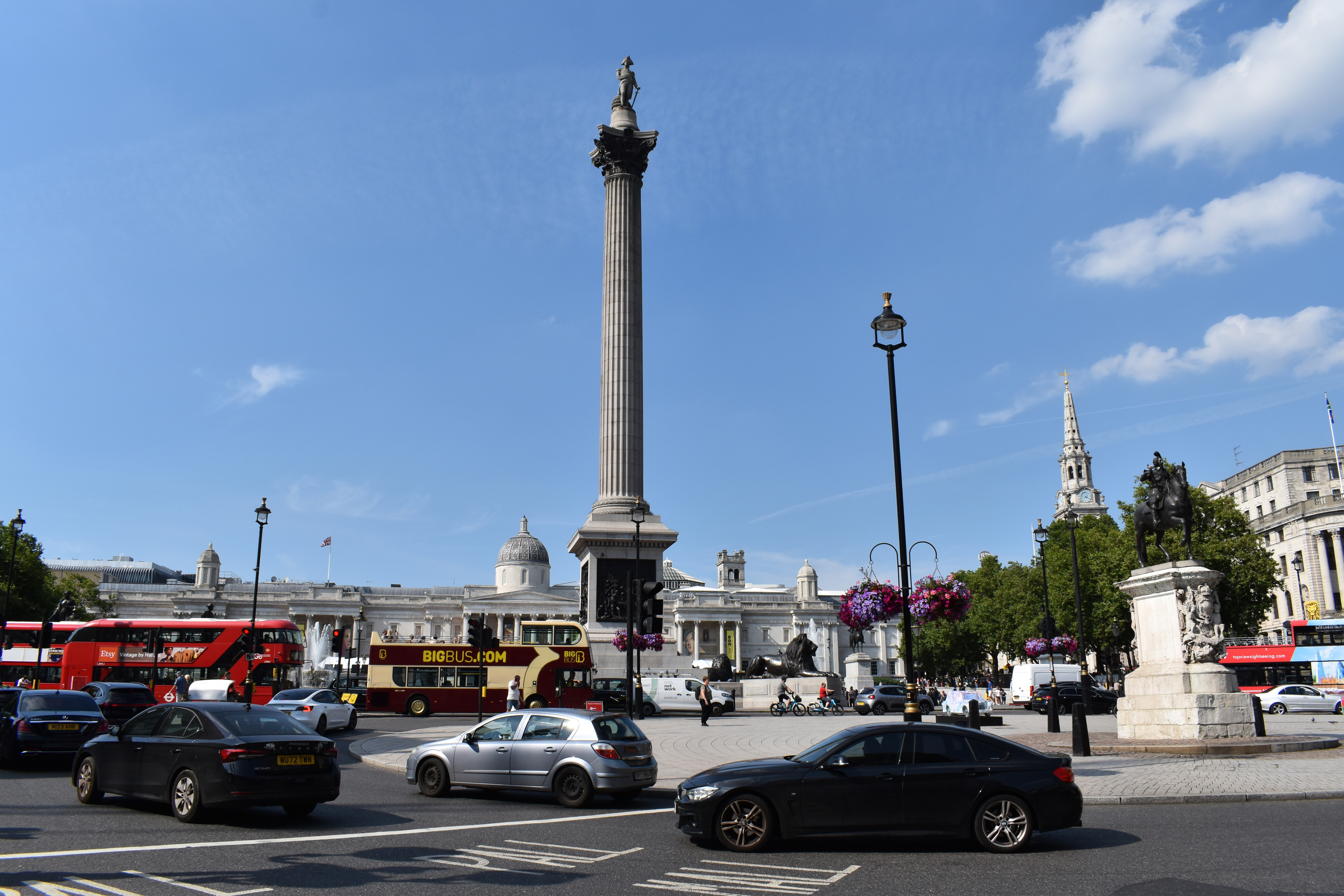 Центром Трафальгарской площади стала колонна Нельсона. Возведена она была в 1843 году в память об адмирале Горацио Нельсоне, который погиб во время Трафальгарского сражения в 1805 году. Высота колонны – 46 метров, а статуя Нельсона – 5 метров. Над созданием колонны работали несколько архитекторов и скульпторов: проект монумента разработал Уильям Рэйлтон, скульптуру адмирала – Эдвард Бэйли, четыре бронзовые панели и львов – Ватсон, Тернаус, Вуддингтон, Кэрью, Ландсир. Бронзовый орнамент в виде листьев, украшающий верхушку колонны, а также панели на пьедестале отливали из английских и французских пушек.