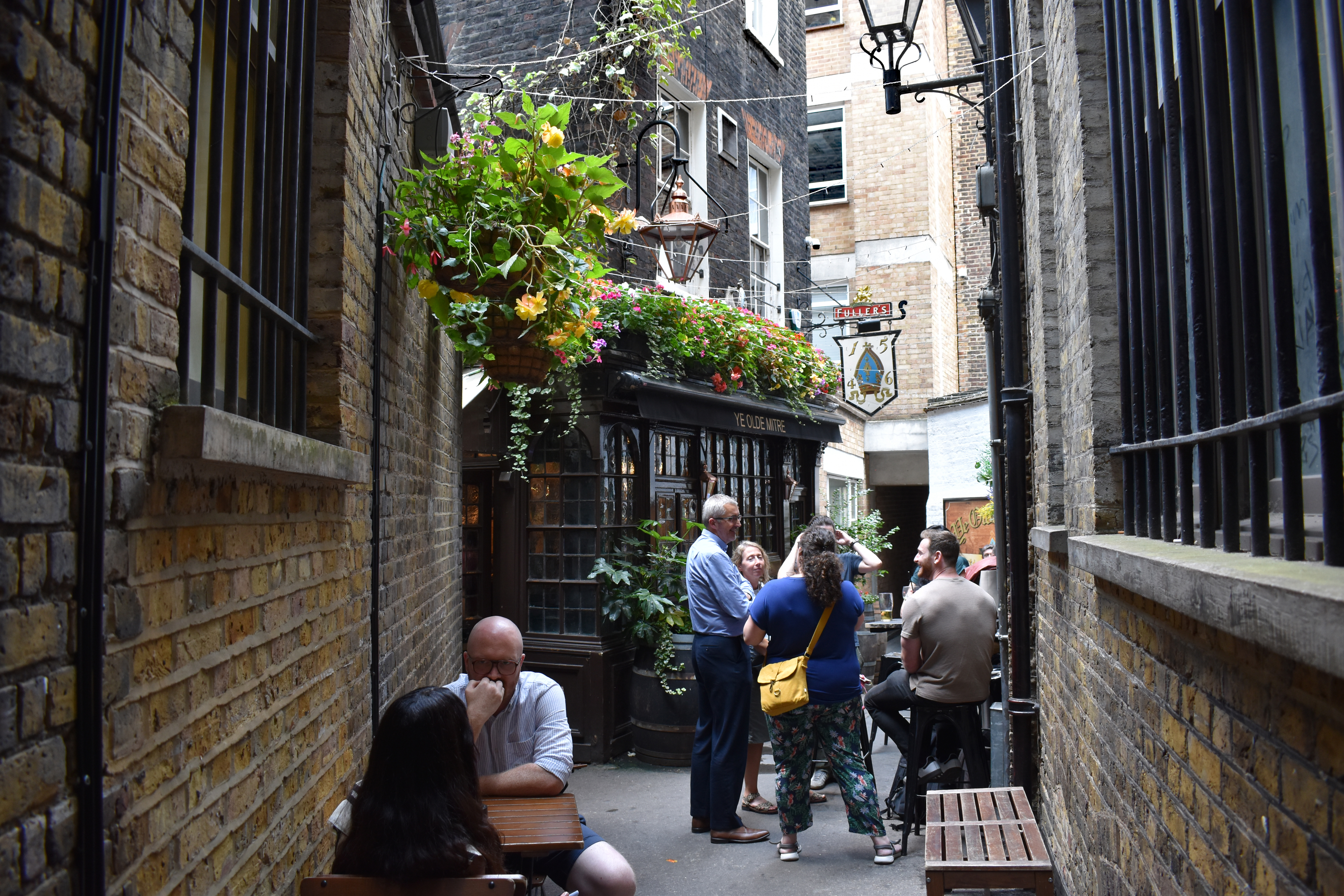 На самом деле этот паб был частью Кембриджа (Эли находится в Кембридже), и владельцы учреждения должны были приходить туда за разрешением. Паб расположен в историческом районе Лондона, недалеко от места, где был приговорён к казни через повешение, потрошение и четвертование в Смитфилде шотландский рыцарь, один из военачальников в войне за независимость от Англии Уильям Уоллес, а также мученики и предатели, которые также были убиты неподалеку.
