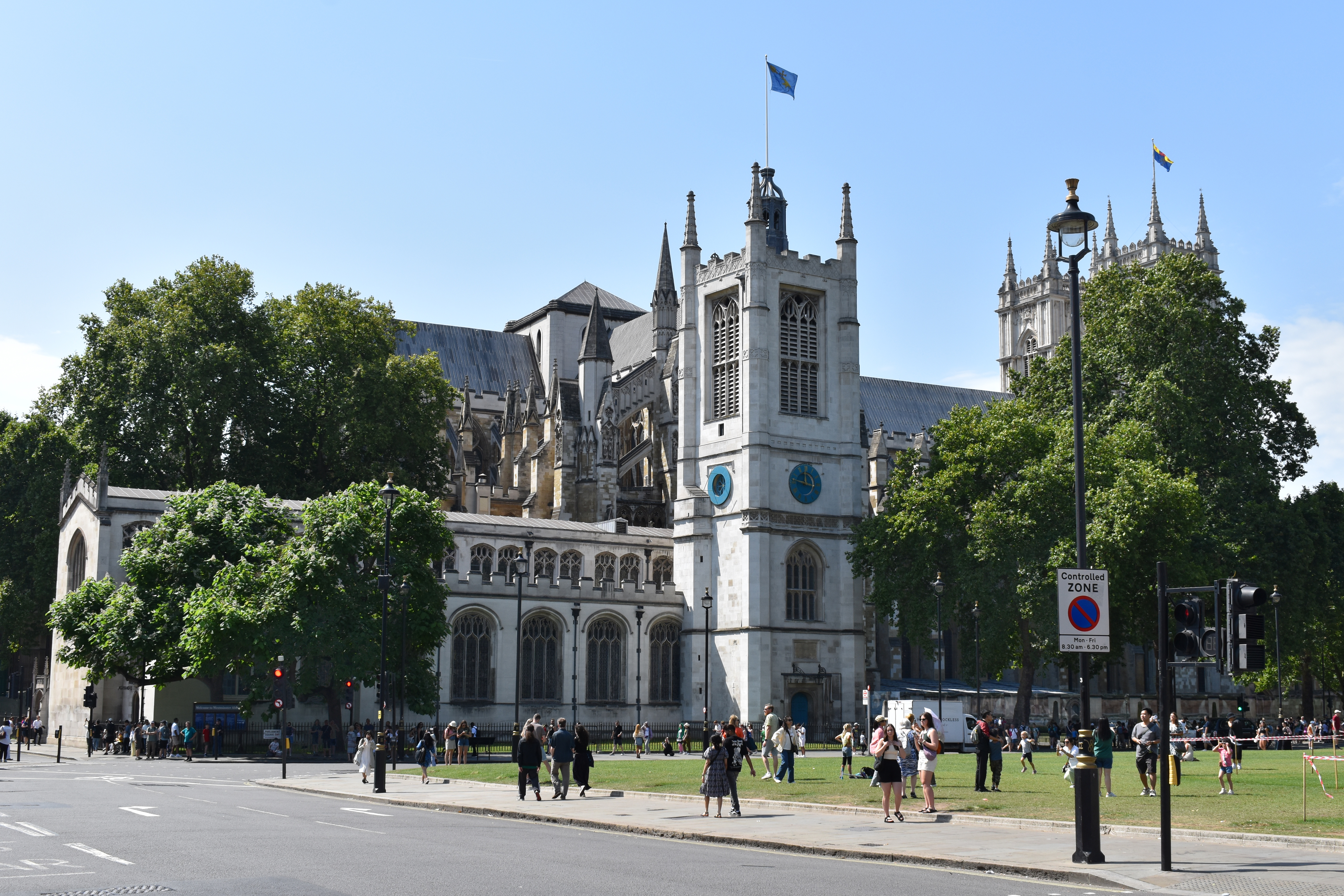 Северный вход в Вестминстерское аббатство и очередь желающих его посетить