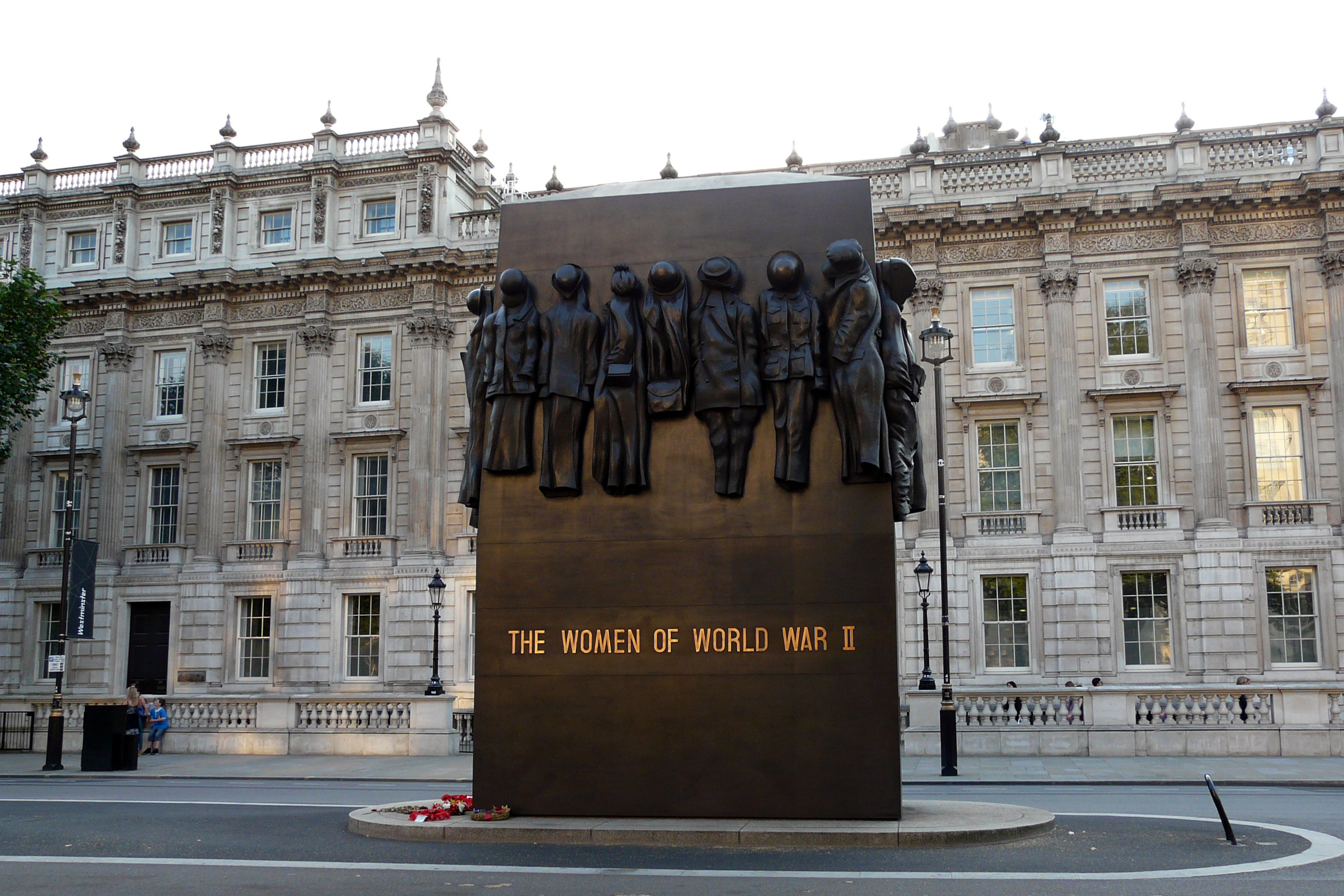 Памятник женщинам Второй мировой войны – это британский национальный военный мемориал, расположенный на Уайтхолле рядом с кенотафом в конце Даунинг-стрит. Скульптура отражает вклад в военное дело более семи миллионов женщин, в том числе 650 000 женщин, поступивших на военную службу. Это полая бронзовая фигура высотой 6,7 метра (22 фута), напоминающая вешалку, символизирующая призыв Уинстона Черчилля "Пусть женщины выйдут вперед", который заключался в том, что женщины оставили свою обычную жизнь, чтобы бороться за выживание в любой роли. Памятник был изваян Джоном В. Миллсом, который сам был эвакуированным в военное время, когда его мать поступила на службу в пожарную охрану.