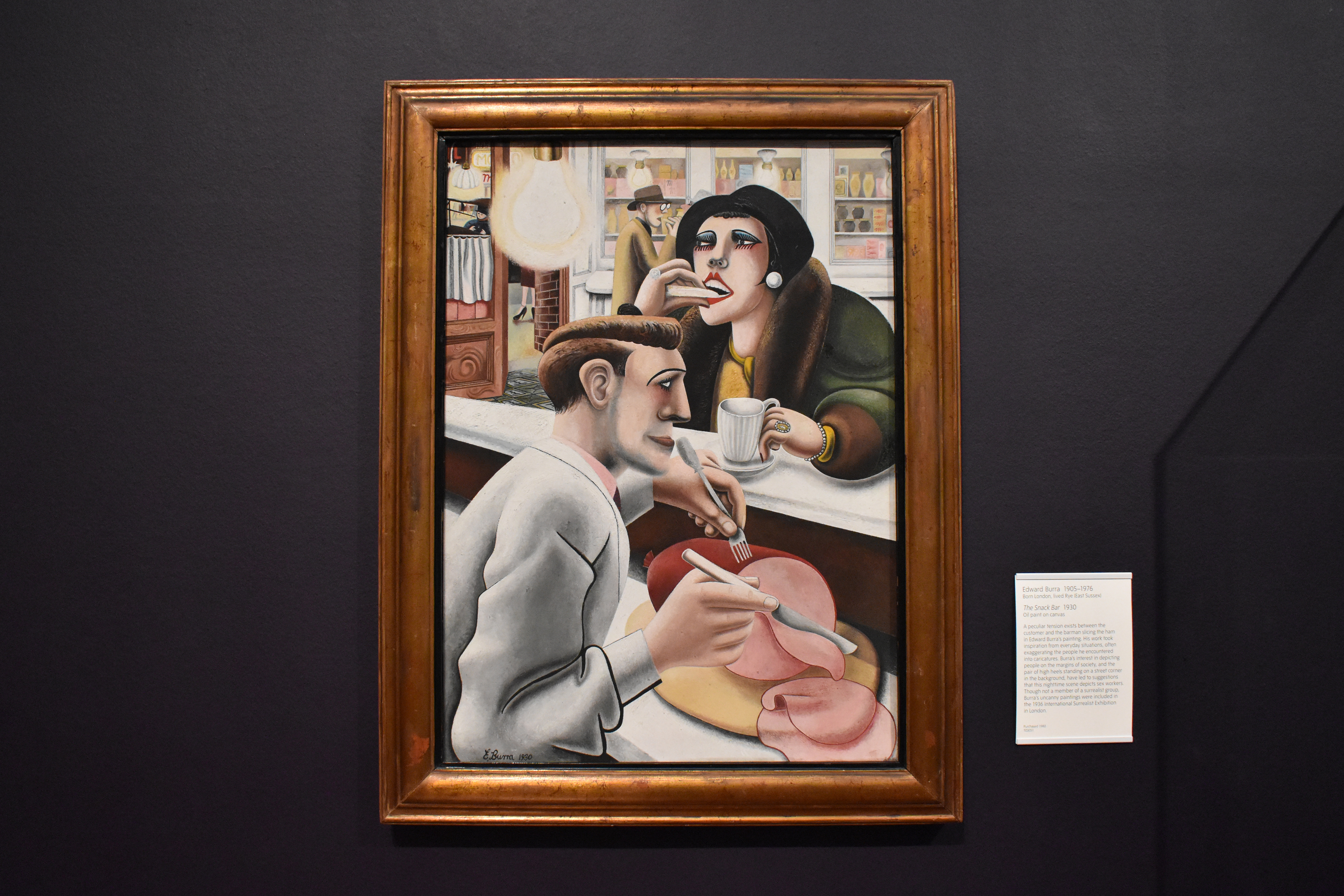 На картине Эдварда Бурры между клиентом и барменом, нарезающим ветчину, существует своеобразное напряжение. Его работы черпают вдохновение в повседневных ситуациях, часто преувеличивая людей, с которыми он сталкивается, до карикатур. Интерес Бурры к изображению людей, находящихся на задворках общества, и пара туфель на высоких каблуках, стоящих на углу улицы на заднем плане, привели к предположению, что на этой ночной сцене изображены работники секс-индустрии. Хотя Бурра не был членом сюрреалистической группы, его жуткие картины были включены в Международную сюрреалистическую выставку 1936 года в Лондоне,