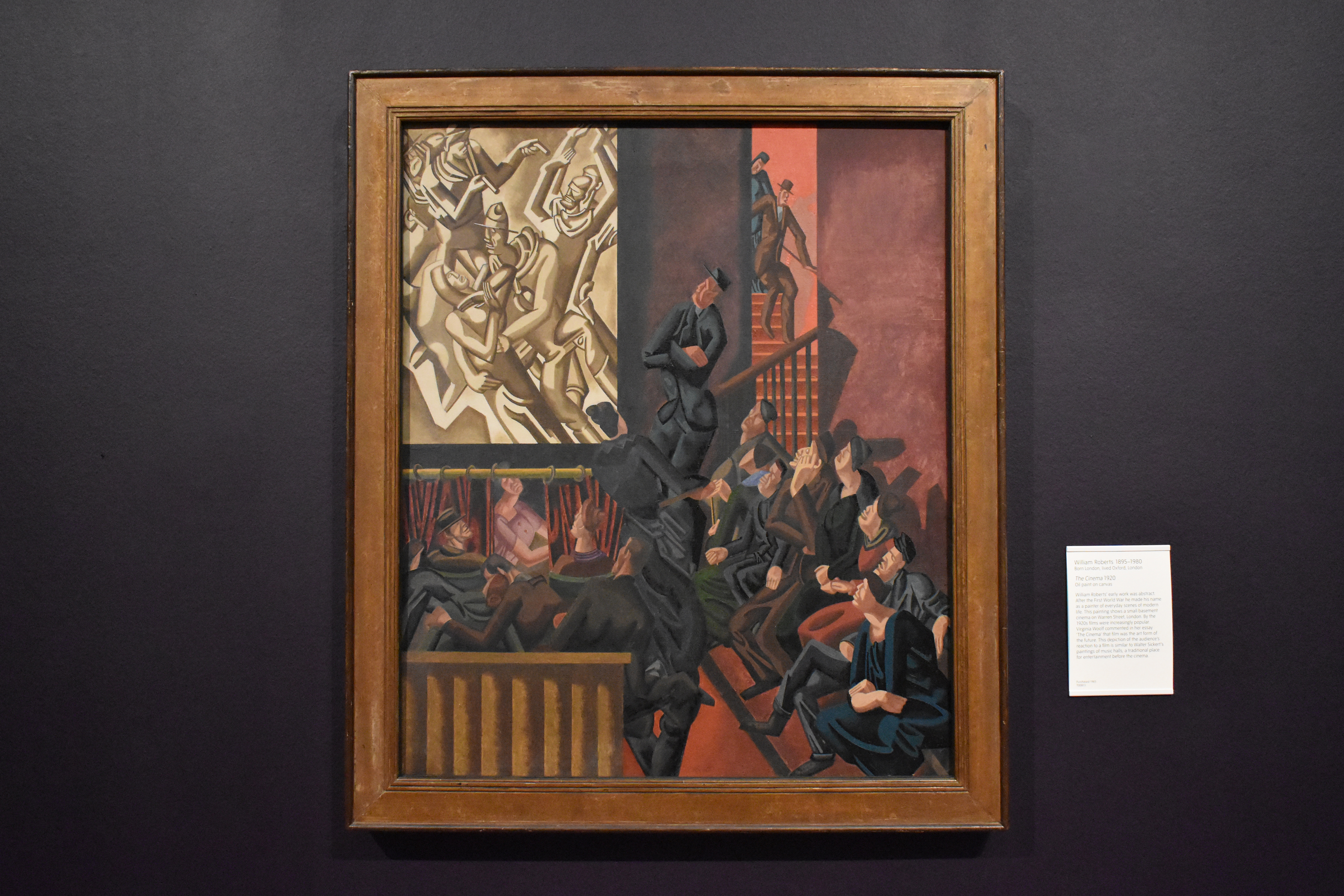 Ранние работы Уильяма Робертса были абстрактными. После Первой мировой войны он стал известен как художник, изображающий повседневные сцены современной жизни. На этой картине изображен небольшой подвальный кинотеатр на Уоррен-стрит в Лондоне. К 1920-м годам фильмы становились все более популярными. Вирджиния Вульф в своем эссе "Кино" отметила, что кино – это искусство будущего. Изображение реакции зрителей на фильм напоминает картины Уолтера Сикерта, изображающие мюзик-холлы – традиционное место развлечений до появления кино.