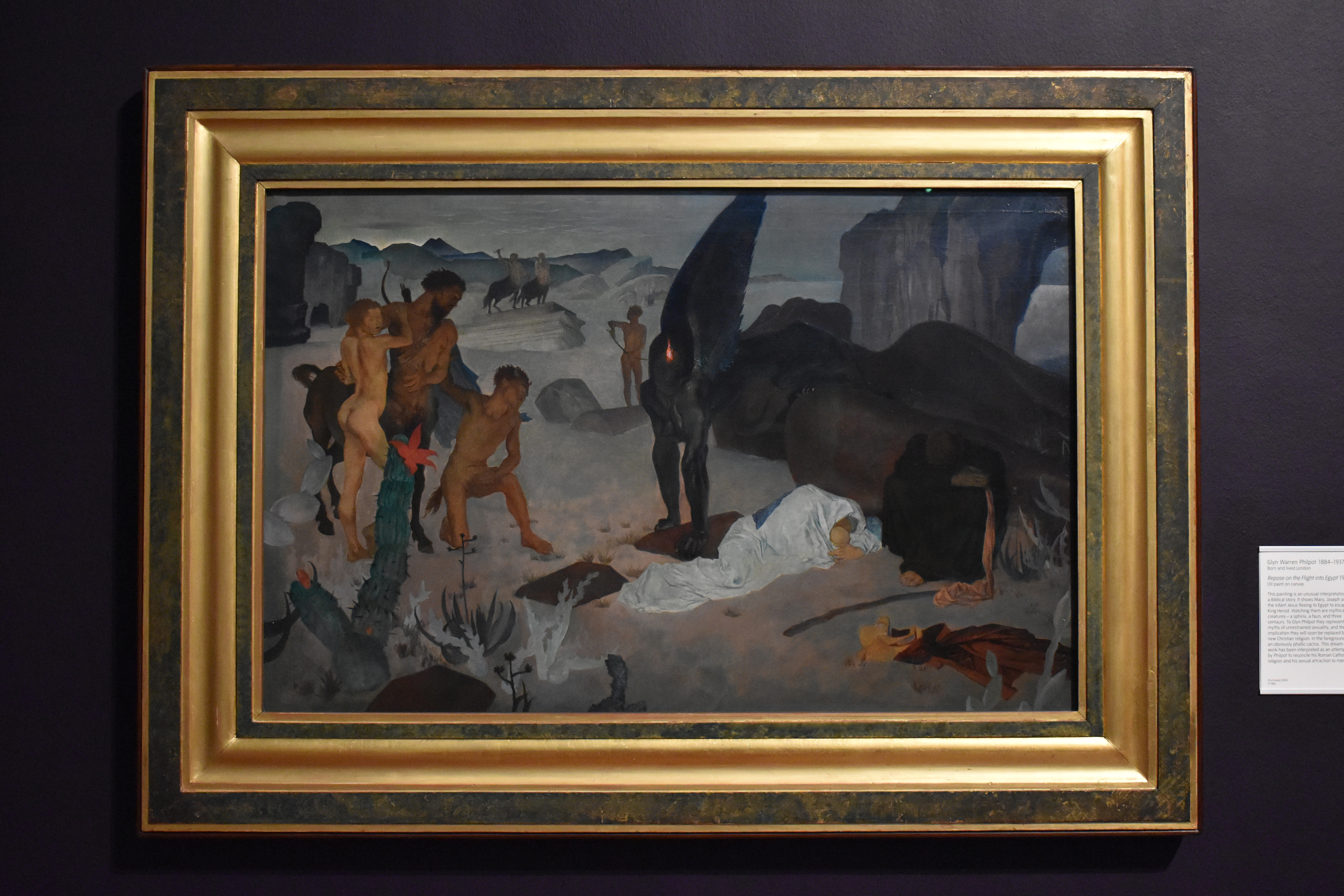 Эта картина представляет собой необычную интерпретацию библейского сюжета. На ней изображены Мария, Иосиф и младенец Иисус, бегущие в Египет, спасаясь от царя Ирода. За ними наблюдают мифические существа – сфинкс, фавн и три кентавра. Для Глина Филпота они представляют мифы о необузданной сексуальности и намек на то, что скоро им на смену придет новая христианская религия. На переднем плане – явно фаллический кактус. Эта похожая на сон работа была истолкована как попытка Филпота примирить свою римско-католическую религию и сексуальное влечение к мужчинам.