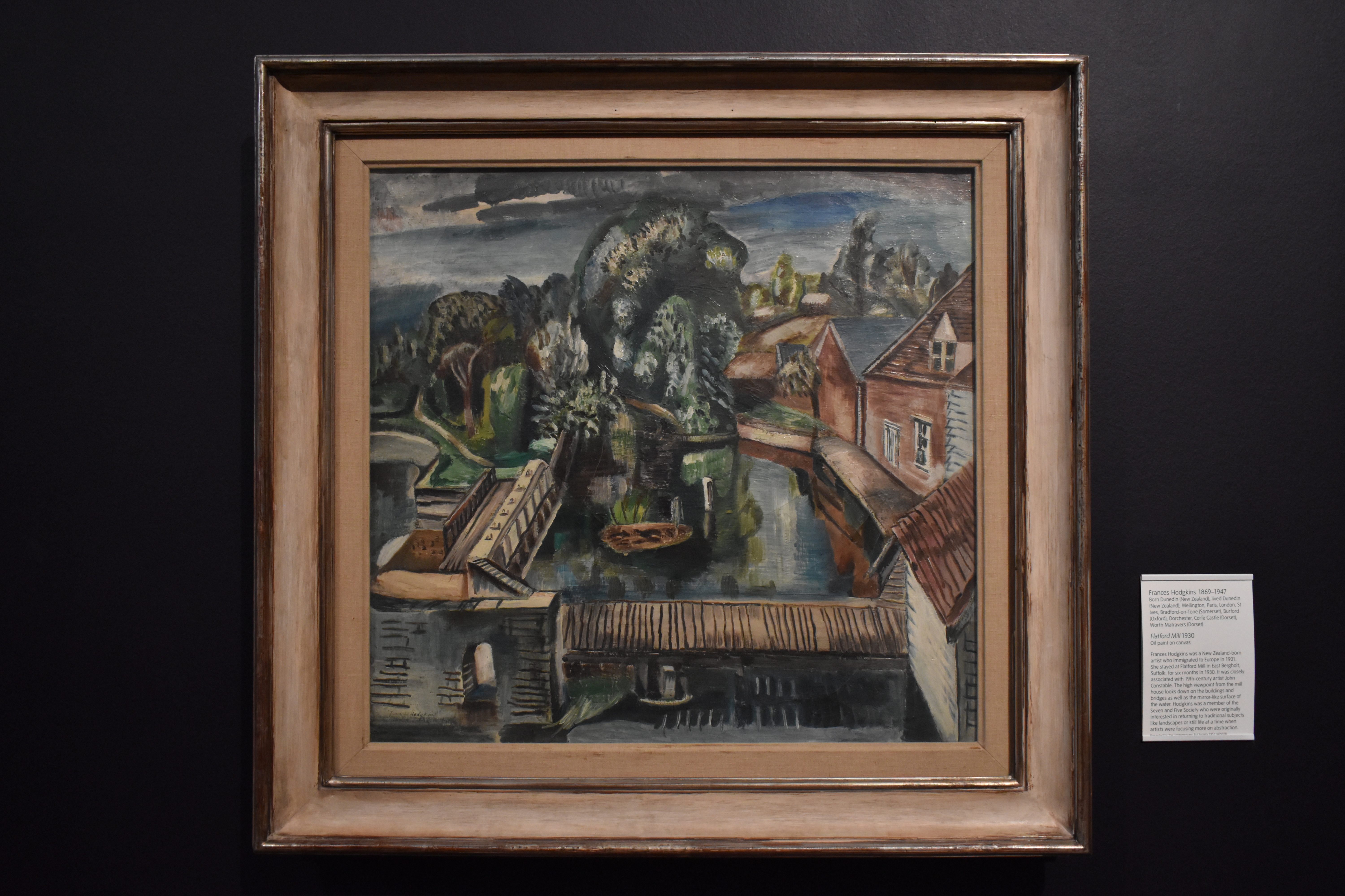 Фрэнсис Ходжкинс была художницей новозеландского происхождения, иммигрировавшей в Европу в 1901 году. В 1930 году она провела шесть месяцев в мельнице Флэтфорд в Ист-Бергхольте, Саффолк. Она была тесно связана с художником XIX века Джоном Констеблем. С высоты мельничного домика открывается вид на здания и мосты, а также зеркальную гладь воды. Ходжкинс была членом общества "Семь и пять", которое изначально было заинтересовано в возвращении к традиционным сюжетам, таким как пейзажи или натюрморты, в то время, когда художники больше внимания уделяли абстракции.