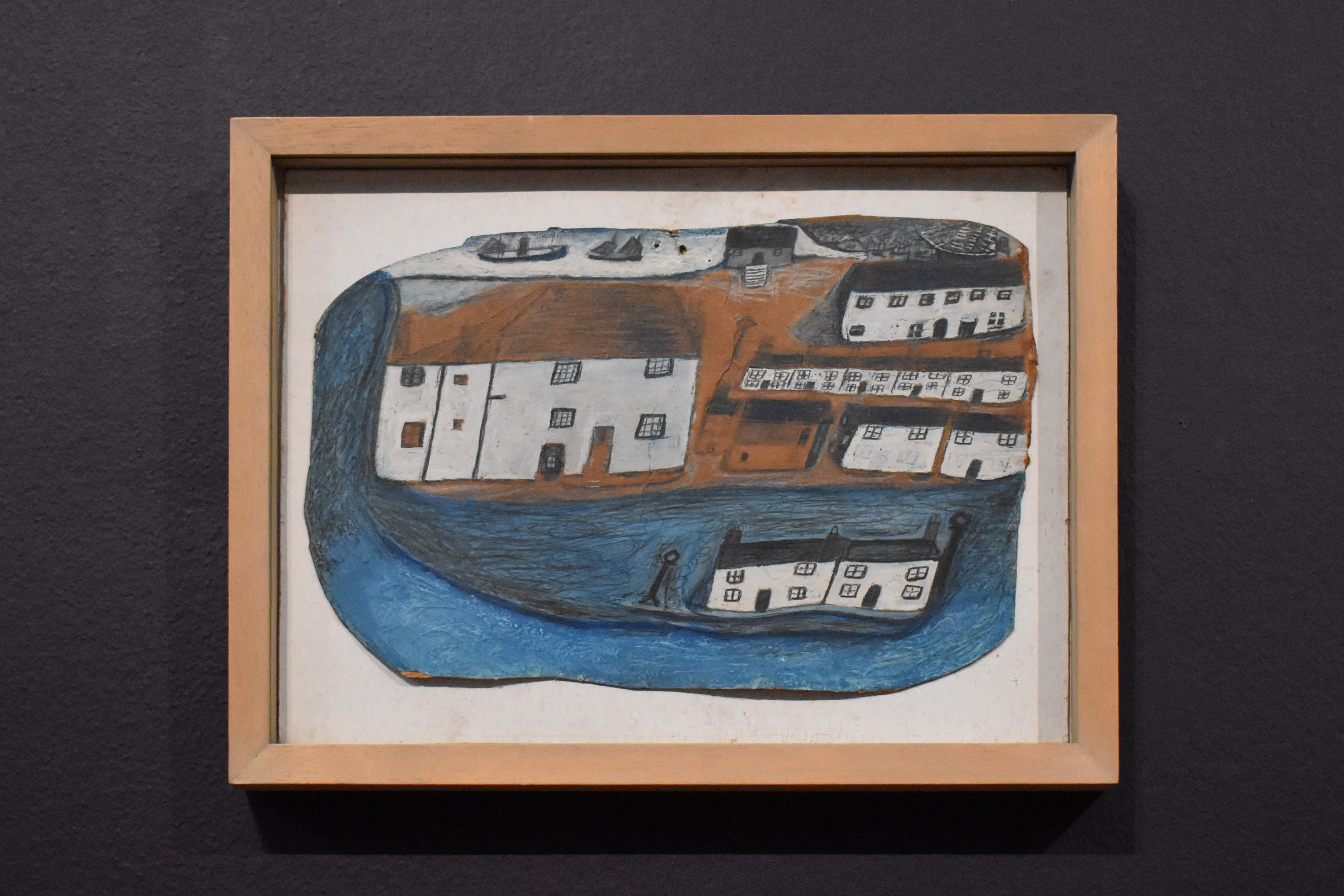 Альфред Уоллис работал моряком, продавцом мороженого и торговцем металлоломом, а после выхода на пенсию научился рисовать. Здесь он показывает белоснежные стены городка, известного своей рыбалкой, а позже – сообществом художников. Уоллис создавал свои картины скорее по памяти, чем по наблюдениям, применяя свое глубокое знание Сент-Айвса, гавани и его связи с морем. Используя прямые геометрические линии, Сент-Айвс создает сильное ощущение движения. Художники Бен Николсон и Кристофер Вуд познакомились с творчеством Уоллиса в 1928 году, купив эту работу во время своего первого визита.