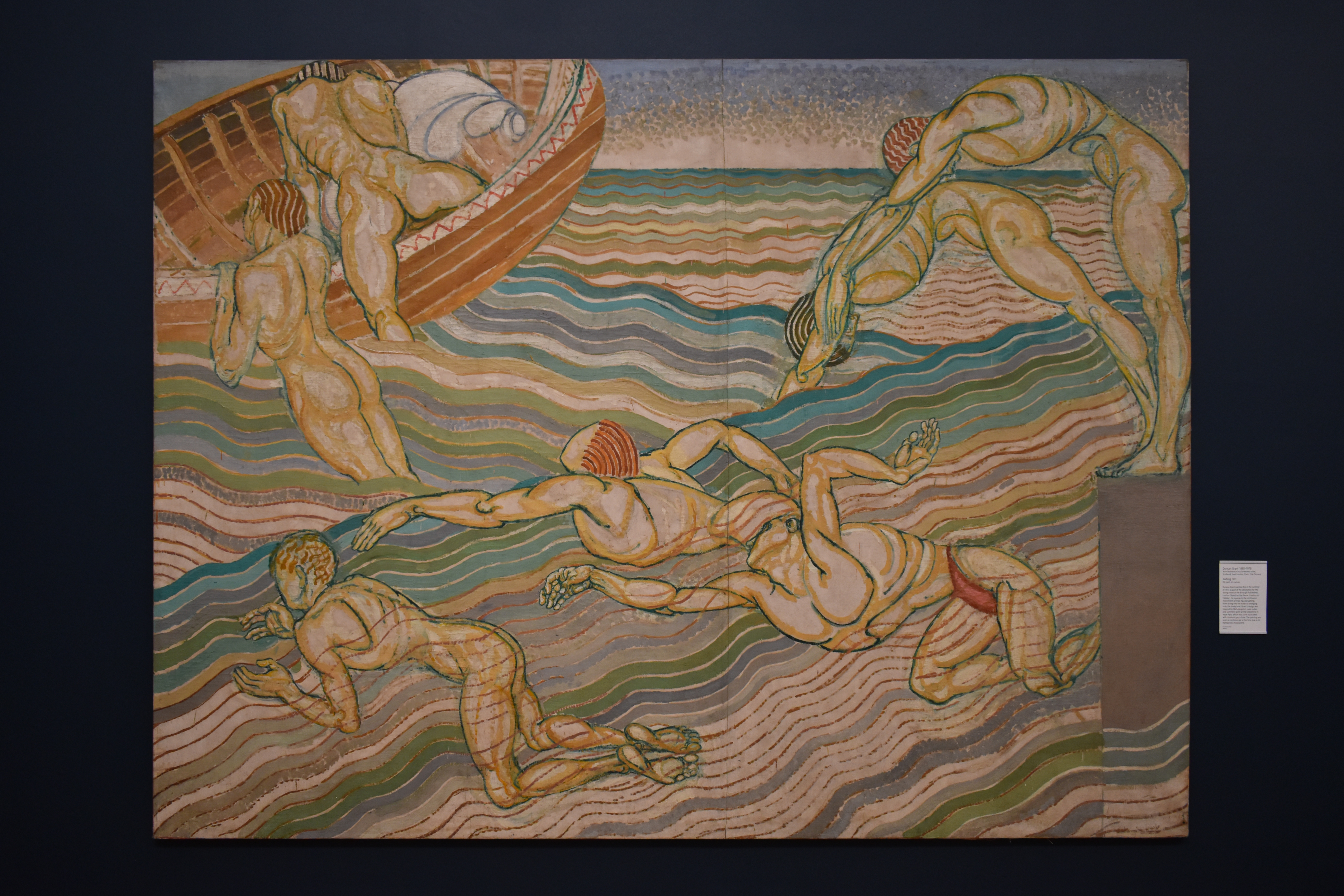 Дункан Грант написал эту картину летом 1911 года в рамках оформления столовой в Политехническом институте Боро, Лондон. На основе темы «Лондон на каникулах» он изобразил непрерывные движения купающихся мужских фигур, от погружения в воду до выхода на шаткую лодку. На создание картины Гранта вдохновили мужские обнаженные тела Микеланджело и лето, проведенное у Серпентина в Гайд-парке, который ассоциировался с лондонской гей-культурой. В то время картина была воспринята неоднозначно из-за ее гомоэротического подтекста.![]()