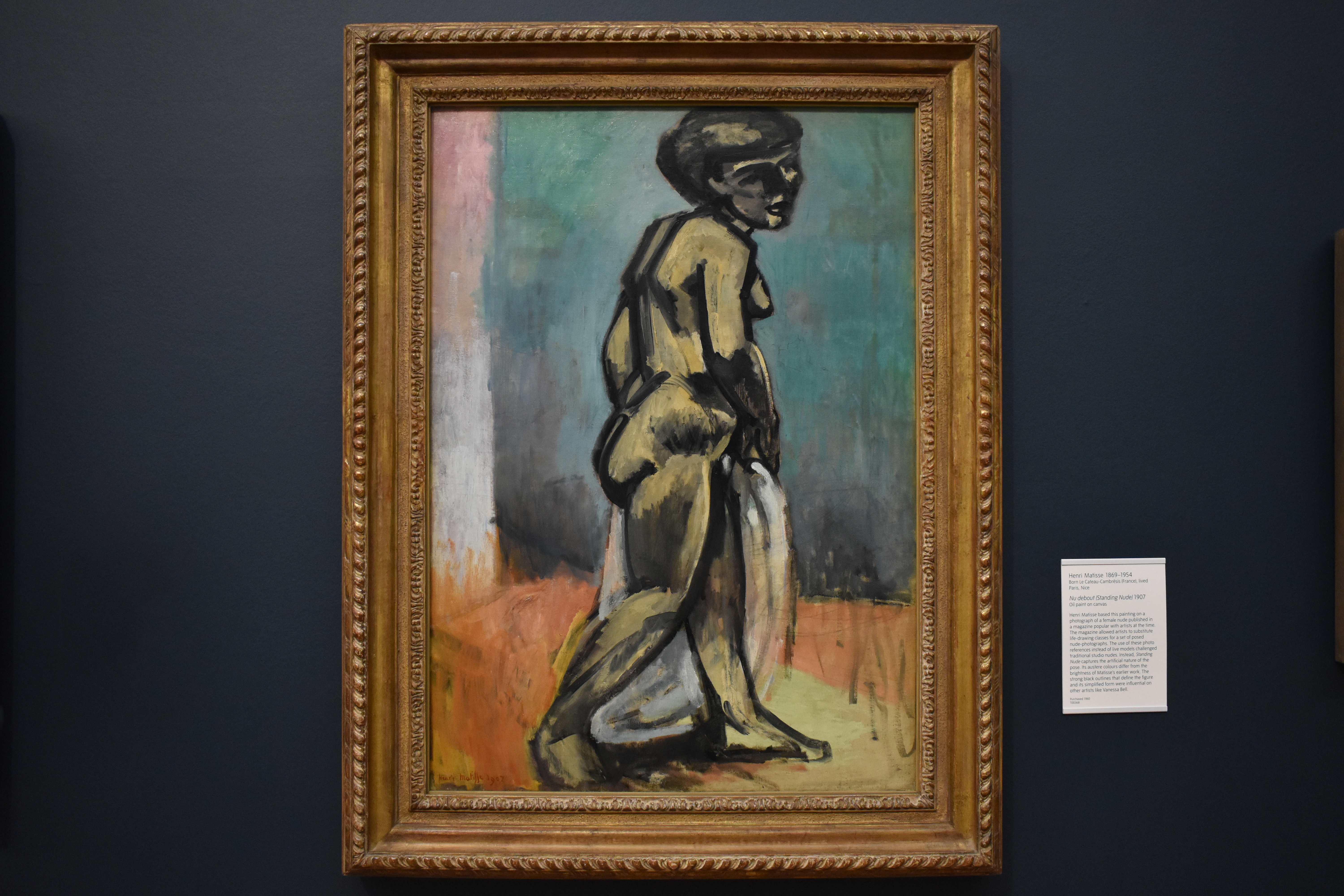 Анри Матисс создал эту картину на основе фотографии обнаженной женщины, опубликованной в журнале, популярном среди художников того времени. Журнал позволял художникам заменять уроки рисования с натуры на набор позирующих фотографий обнаженной натуры. Использование этих фотографий вместо живых моделей бросило вызов традиционной студийной обнаженной натуре. Вместо этого. В «Стоящей обнаженной» передана искусственная природа позы. Аскетичные цвета отличаются от яркости ранних работ Матисса. Сильные черные контуры, определяющие фигуру, и ее упрощенная форма оказали влияние на других художников, таких как Ванесса Белл.