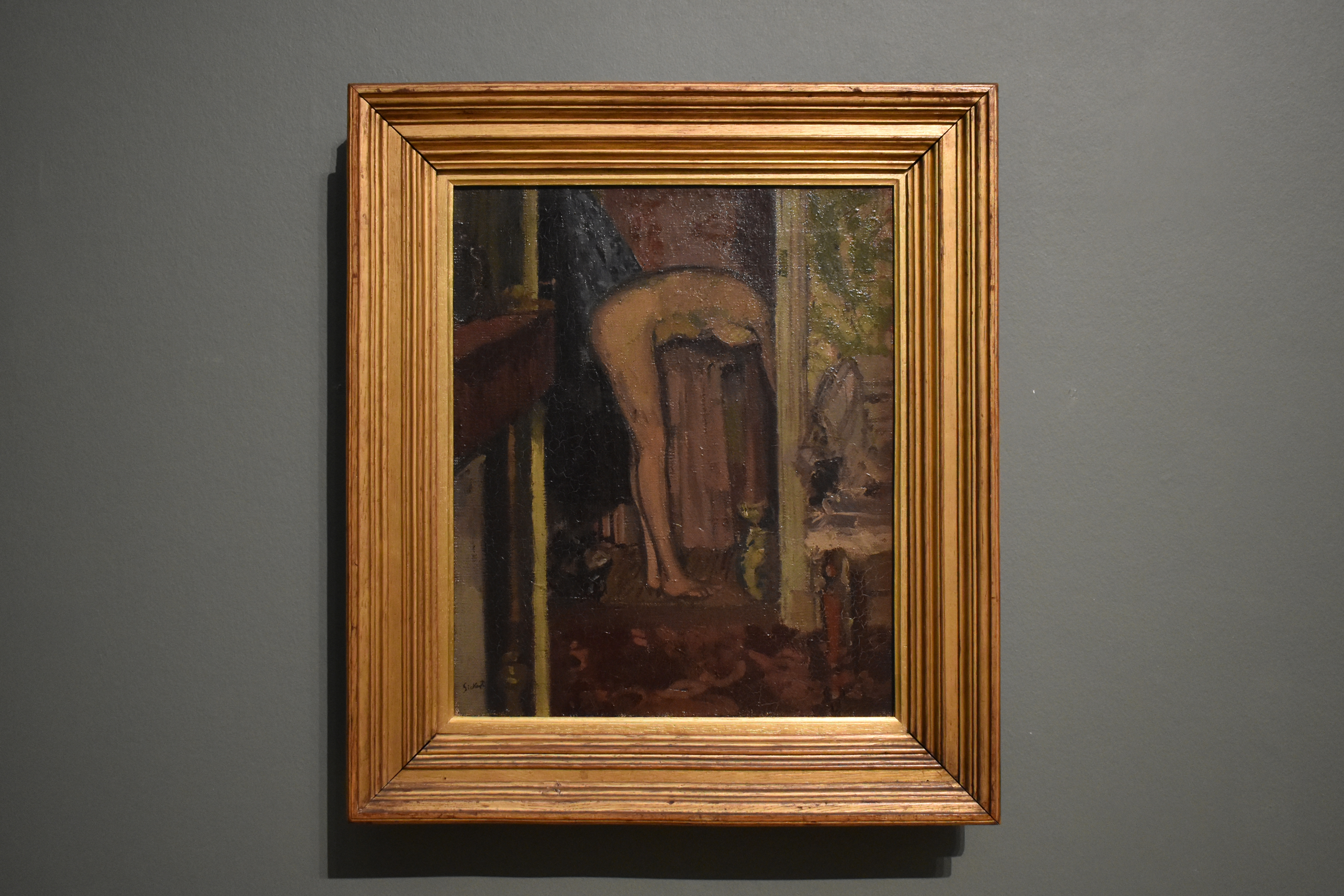 Вальтер Сиккерт был приверженцем живописи повседневной жизни. Здесь он показывает женщину в обстоятельствах, когда она, естественно, могла бы быть обнаженной. Используя вид "замочной скважины". Сиккерт подразумевает, что мы получаем возможность заглянуть в подлинный, ничем не нарушаемый момент. Женщина не замечает нашего взгляда и позирует естественно. Это одна из серии обнаженных натурщиц по имени Бланш, которую Сиккерт написал в своей парижской студии осенью 1906 года.