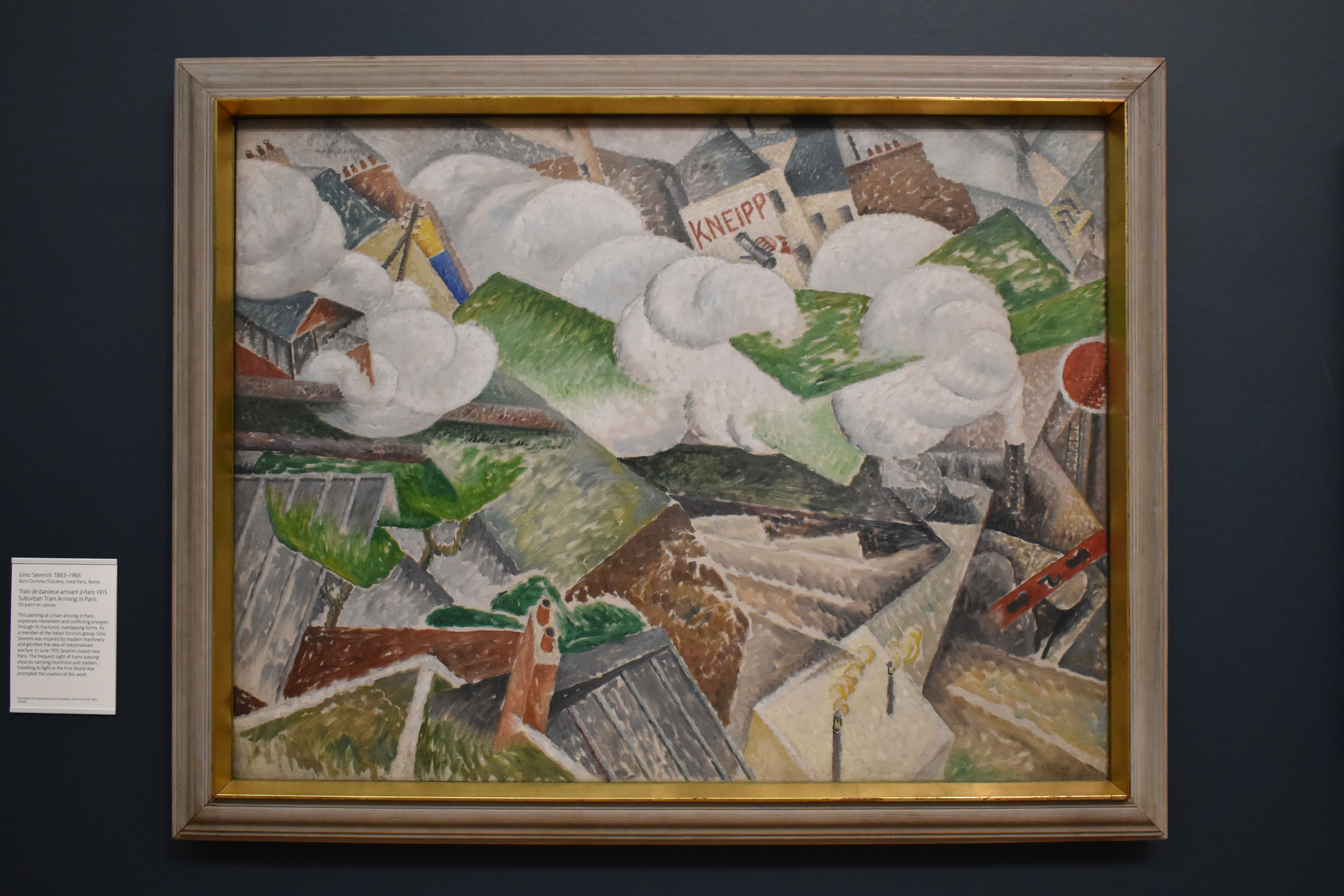 Эта картина, изображающая поезд, прибывающий в Париж, выражает движение и противоречивые энергии через свои раздробленные, накладывающиеся друг на друга формы. Как член группы итальянских футуристов, Джино Северини был вдохновлен современной техникой и прославлял идею индустриализированной войны. В июне 1915 года Северини остановился под Парижем. Частое наблюдение за проходящими рядом поездами с боеприпасами и солдатами, отправляющимися на фронт Первой мировой войны, побудило его к созданию этой работы.