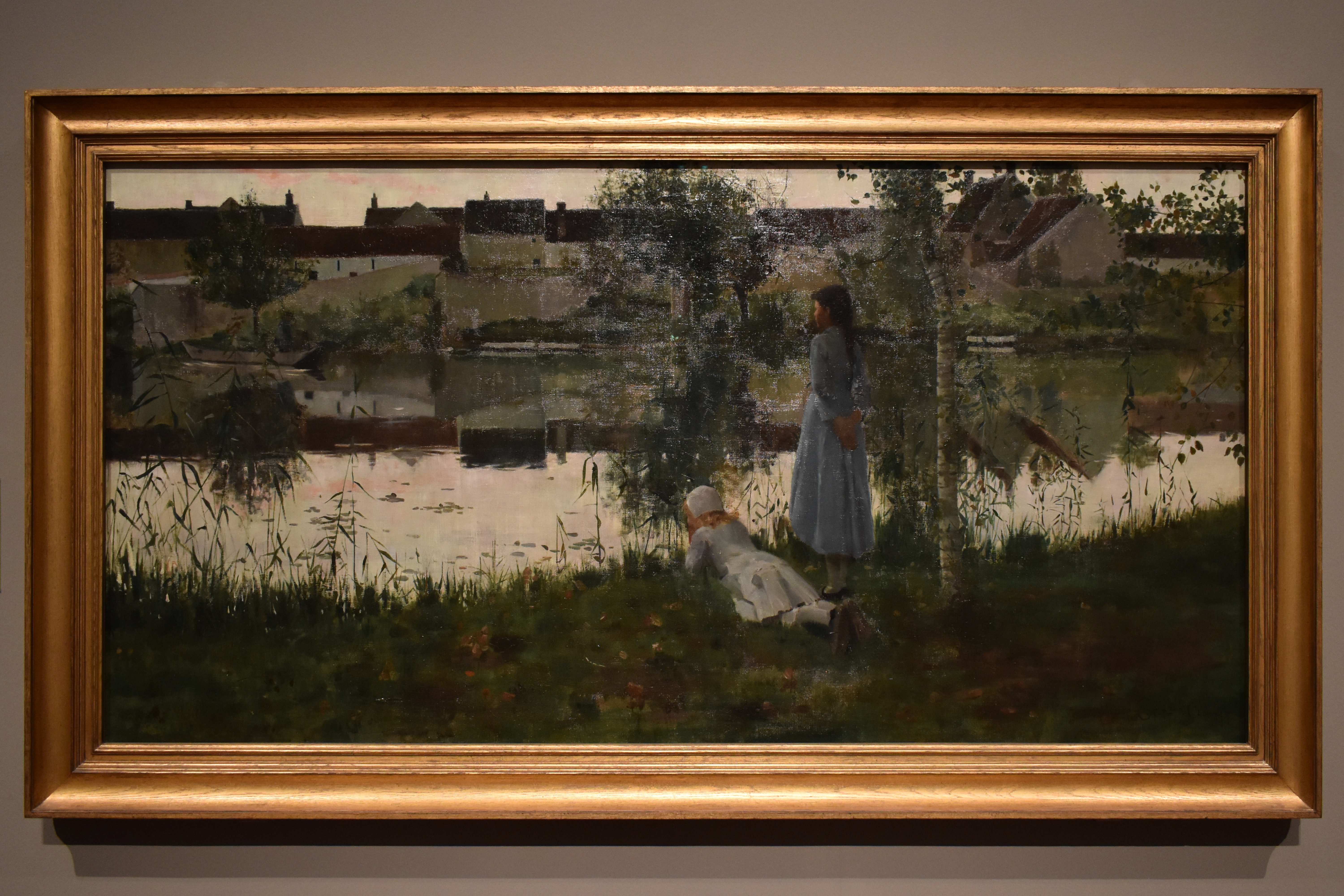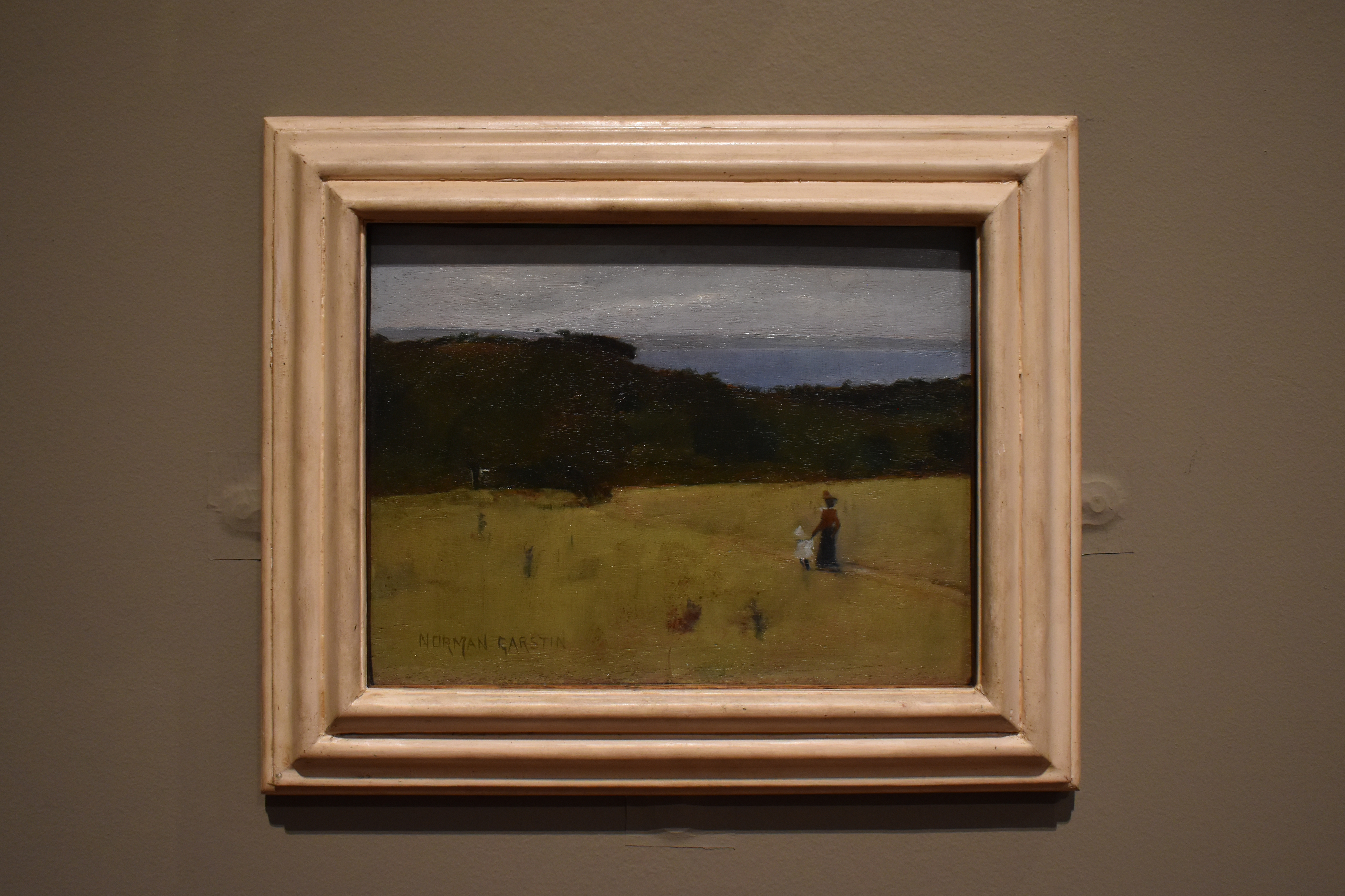 Дора Каррингтон была связана с группой писателей и художников Блумсбери, которые жили, работали и учились вместе в Лондоне. На этой картине изображена ферма недалеко от Кесвика в Озерном крае, где новобрачная Каррингтон проводила летние каникулы с мужем и их друзьями. Искусствоведы предположили, что пейзаж был искажен так, чтобы напоминать изгибы женского тела. Две маленькие фигурки смотрят на пейзаж, возможно, размышляя о своей женственности.![]()