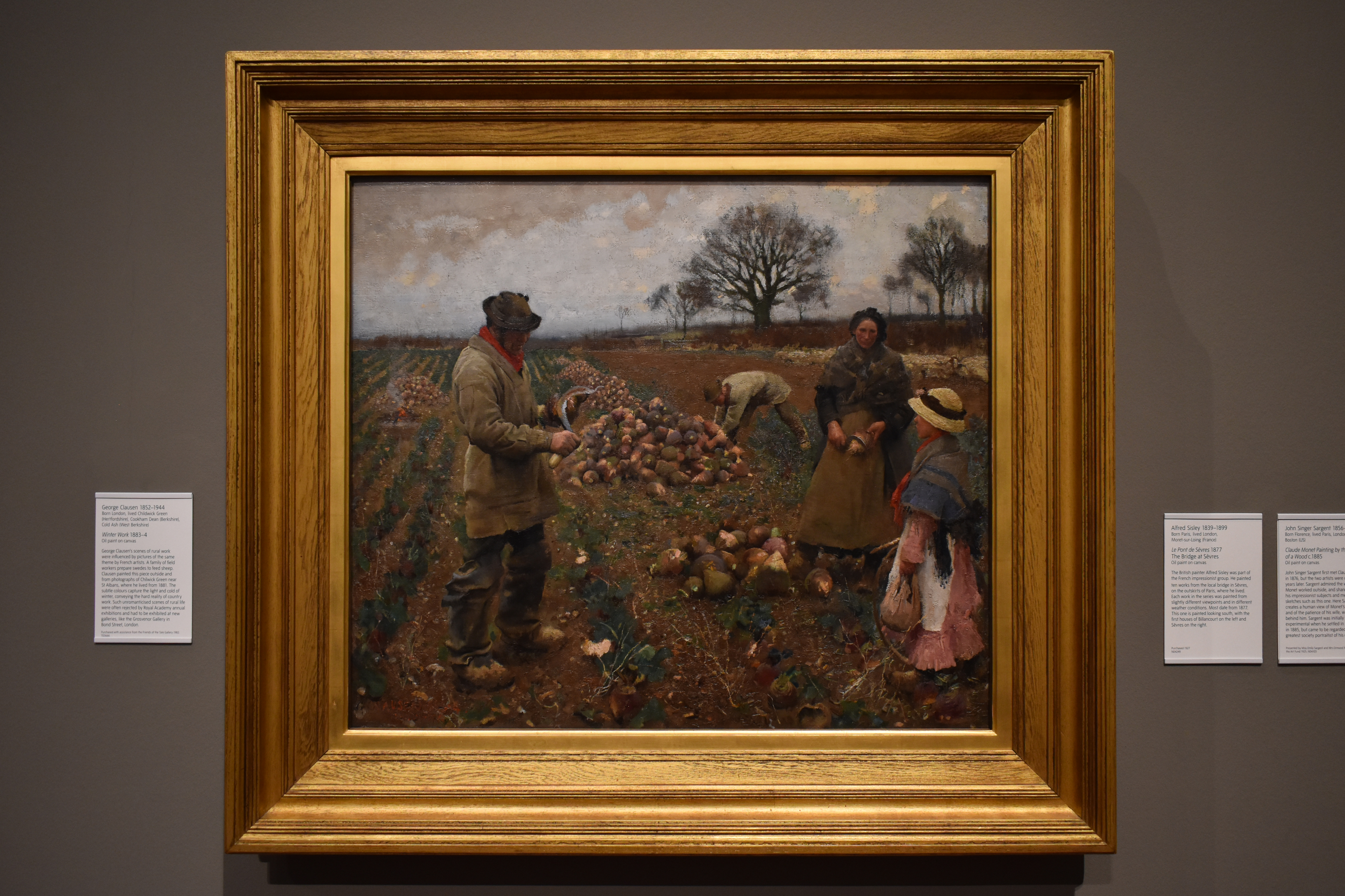 Эта картина – пара к "Сенокосам", на которой изображены рабочие, собирающие урожай. Ритм рабочих фигур нарушает управляющий фермой верхом на лошади. Его возвышенное положение свидетельствует о его авторитете и социальной иерархии. Эффективность сельского хозяйства была очень актуальна, так как растущее, все более городское население нужно было кормить. Эффективность рабочей силы способствовала росту производительности земли и труда. Восхваляет ли картина сельскохозяйственный труд, или ее идеализм умаляет индивидуальность рабочих – это можно интерпретировать.