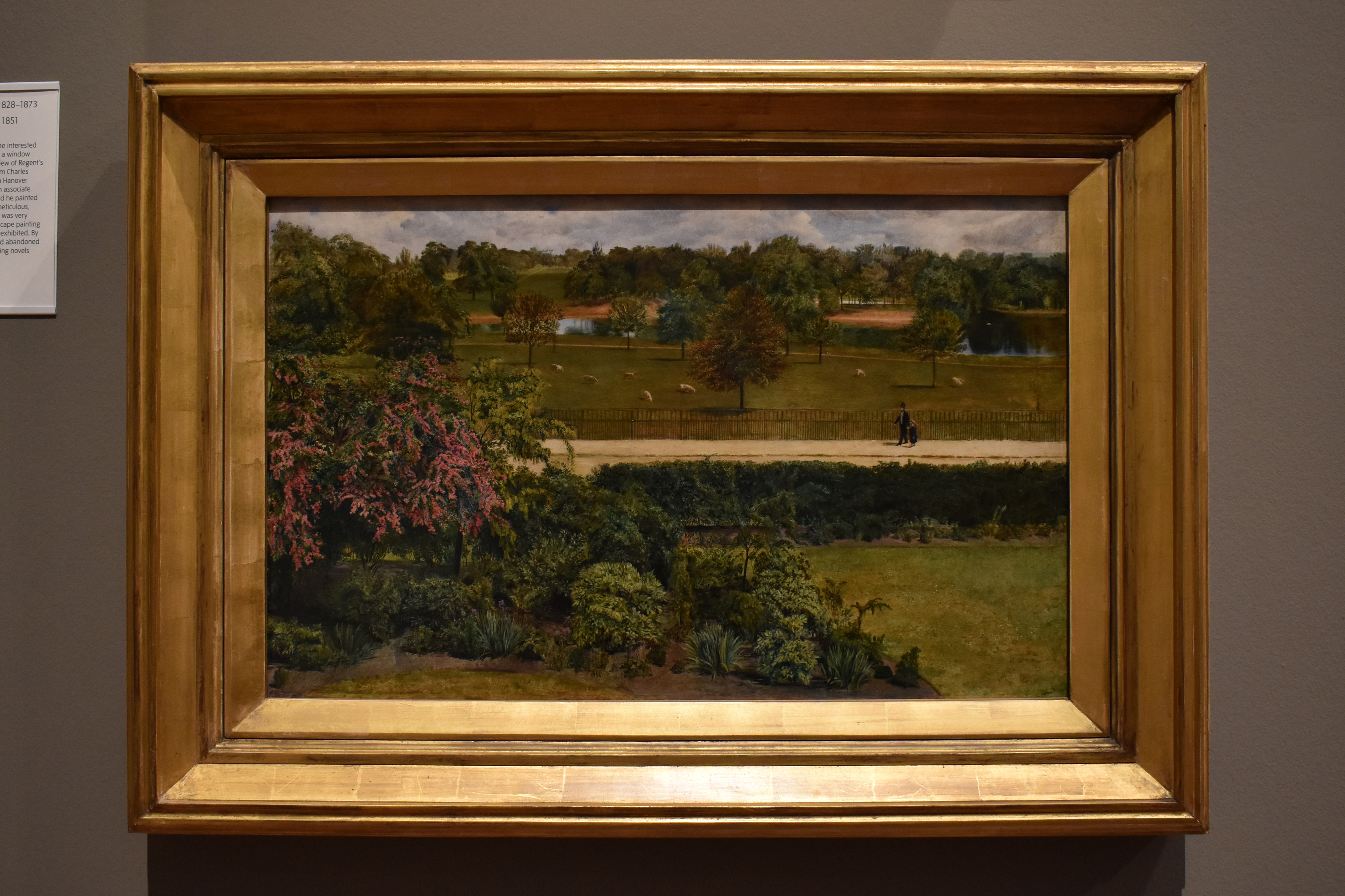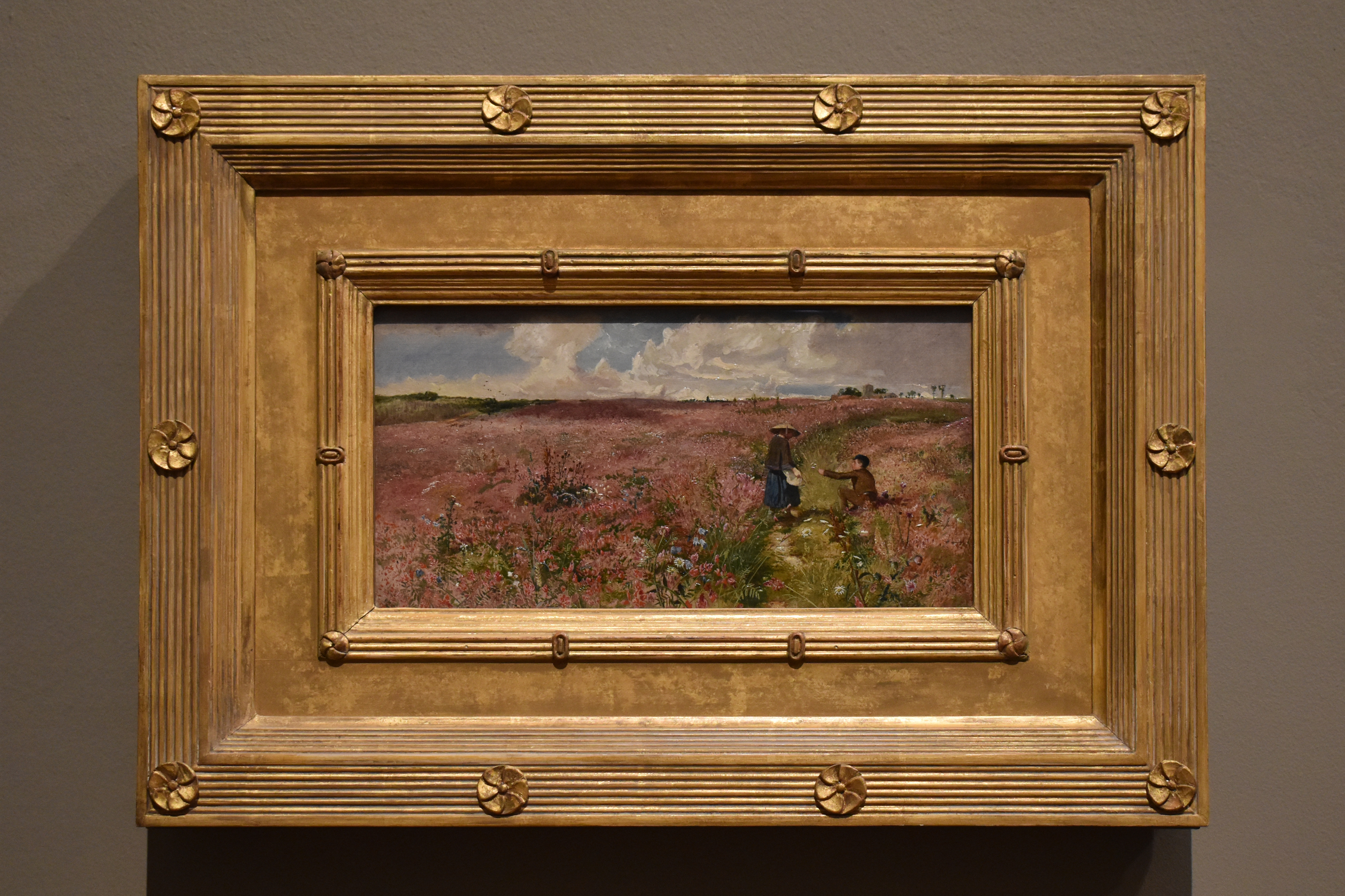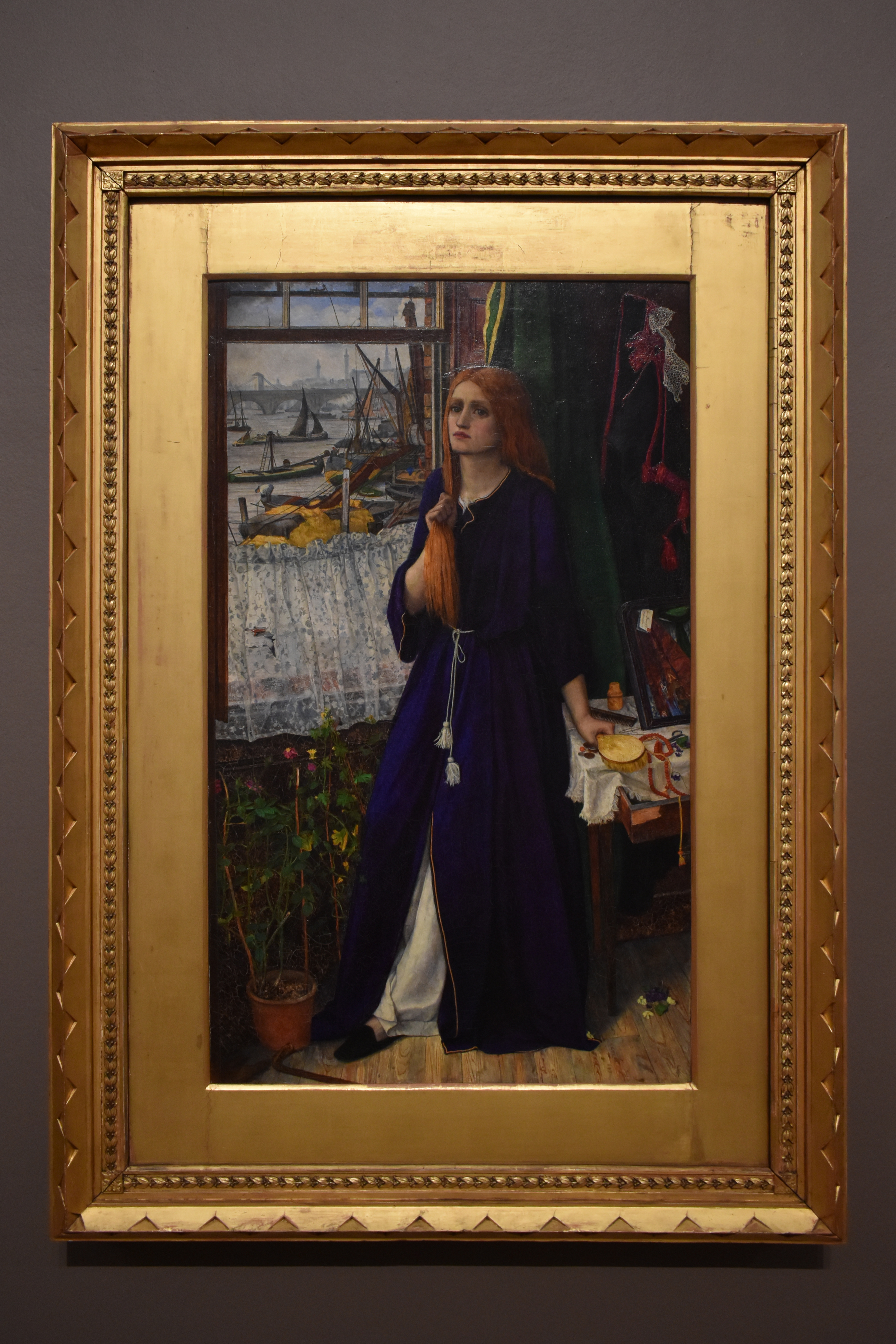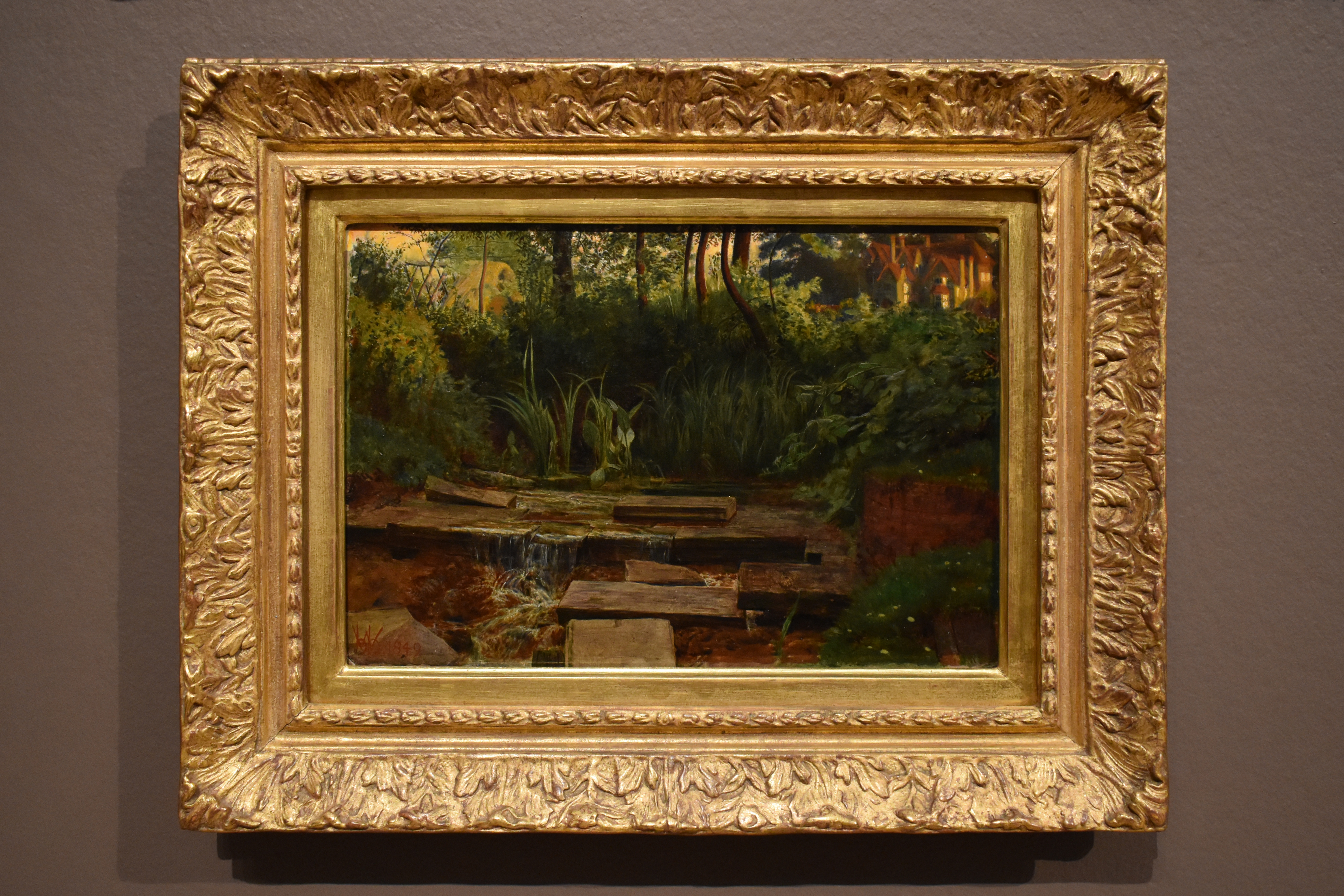 Здесь мы видим, как золотистый свет проникает сквозь деревья, освещая ручей, загроможденный брошенными камнями. Сцена была написана на натуре либо в Уимблдонском парке в Лондоне, либо у реки Хогсмил в Юэлле, графство Суррей. Скорее всего, художник работал бок о бок с коллегой-прерафаэлитом Джоном Эвереттом Милле. Оба художника придавали своим пейзажам сюжет, добавляя фигуры или, в данном случае, "усадьбу с привидениями". В его окнах отражается вечернее солнце, как будто они горят. Река Хогсмил также стала декорацией для картины "Офелия" (висит неподалеку).![]()