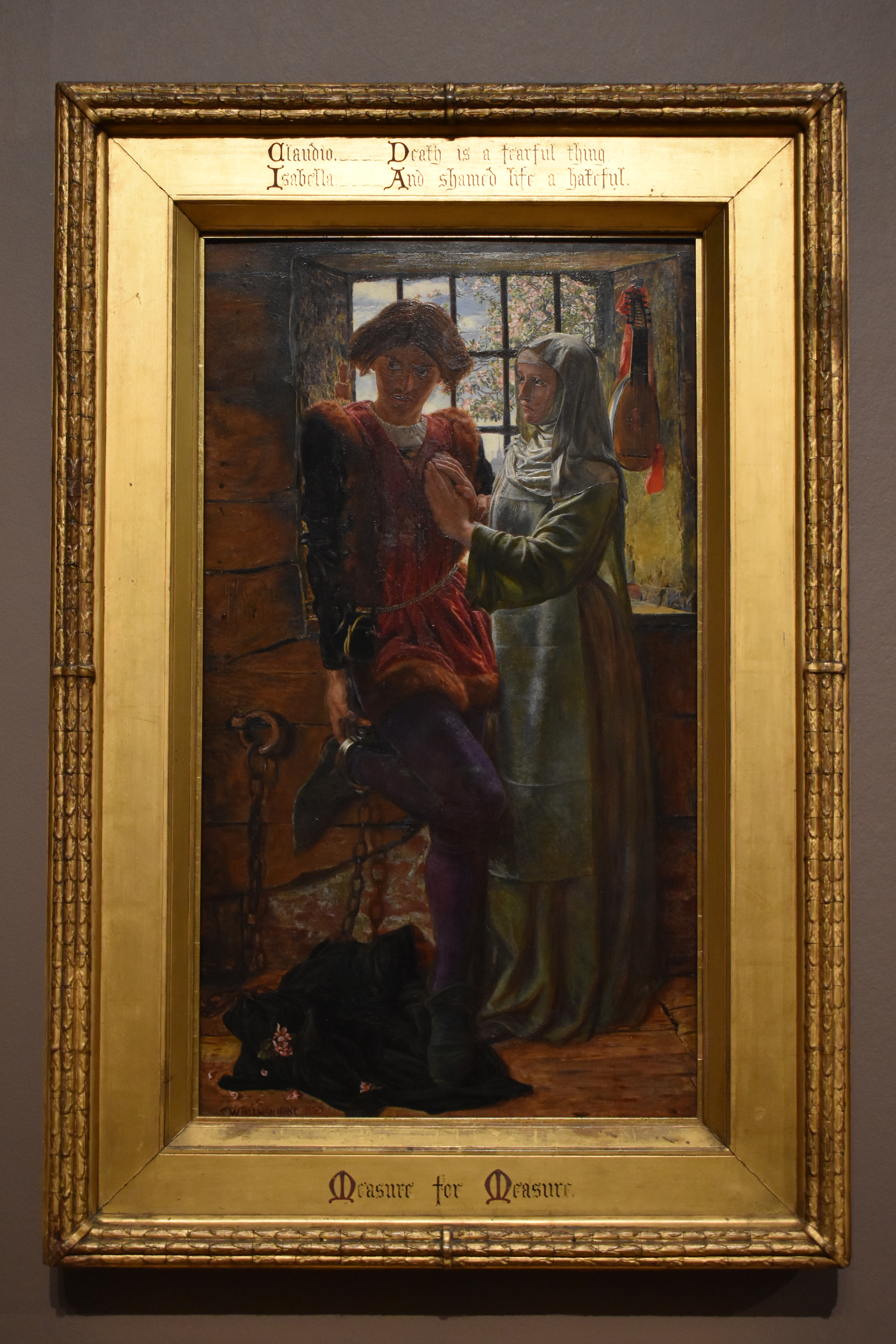 Прерафаэлиты адаптировали истории прошлого к современным проблемам. Эта картина – ранний пример их интимного, психологического подхода. Эта сцена представляет собой моральный выбор из пьесы Шекспира «Мера за меру». Клавдио приговорен к смерти Анджело, заместителем герцога Венского. Его можно спасти, если его сестра Изабелла, монахиня, согласится на секс с Анджело. Неудобная поза Клавдио привлекает внимание к его закованным в кандалы ногам. Изабелла обдумывает его просьбу, выбирая между своей судьбой и судьбой брата, положив руки ему на грудь и чувствуя, как бьется его сердце.