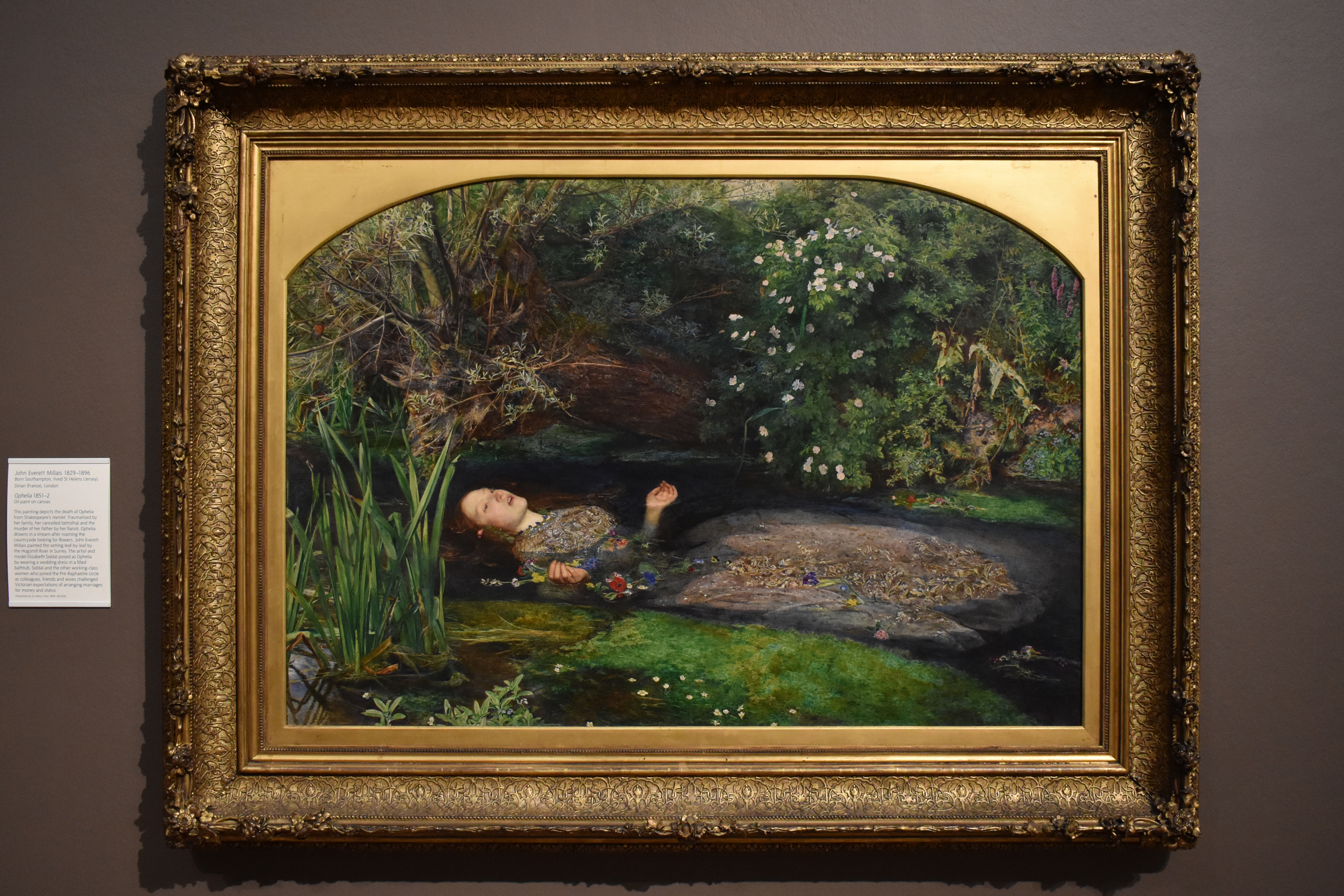 На этой картине изображена смерть Офелии, сцена из пьесы Шекспира "Гамлет". Травмированная тем, что Гамлет разрывает их помолвку и случайно убивает её отца, она падает в ручей и тонет. Цветы, которые она собирает, символизируют её историю, а маки – смерть. Милле рисовал одинокий пейзаж лист за листом в течение многих месяцев у реки Хогсмилл в Суррее. После этого художница, поэт и модель Элизабет Сиддалл позировала в свадебном платье в ванне с водой в студии Милле. В этой картине Милле критиковал викторианскую практику случайных браков, заключавшихся ради денег и статуса.