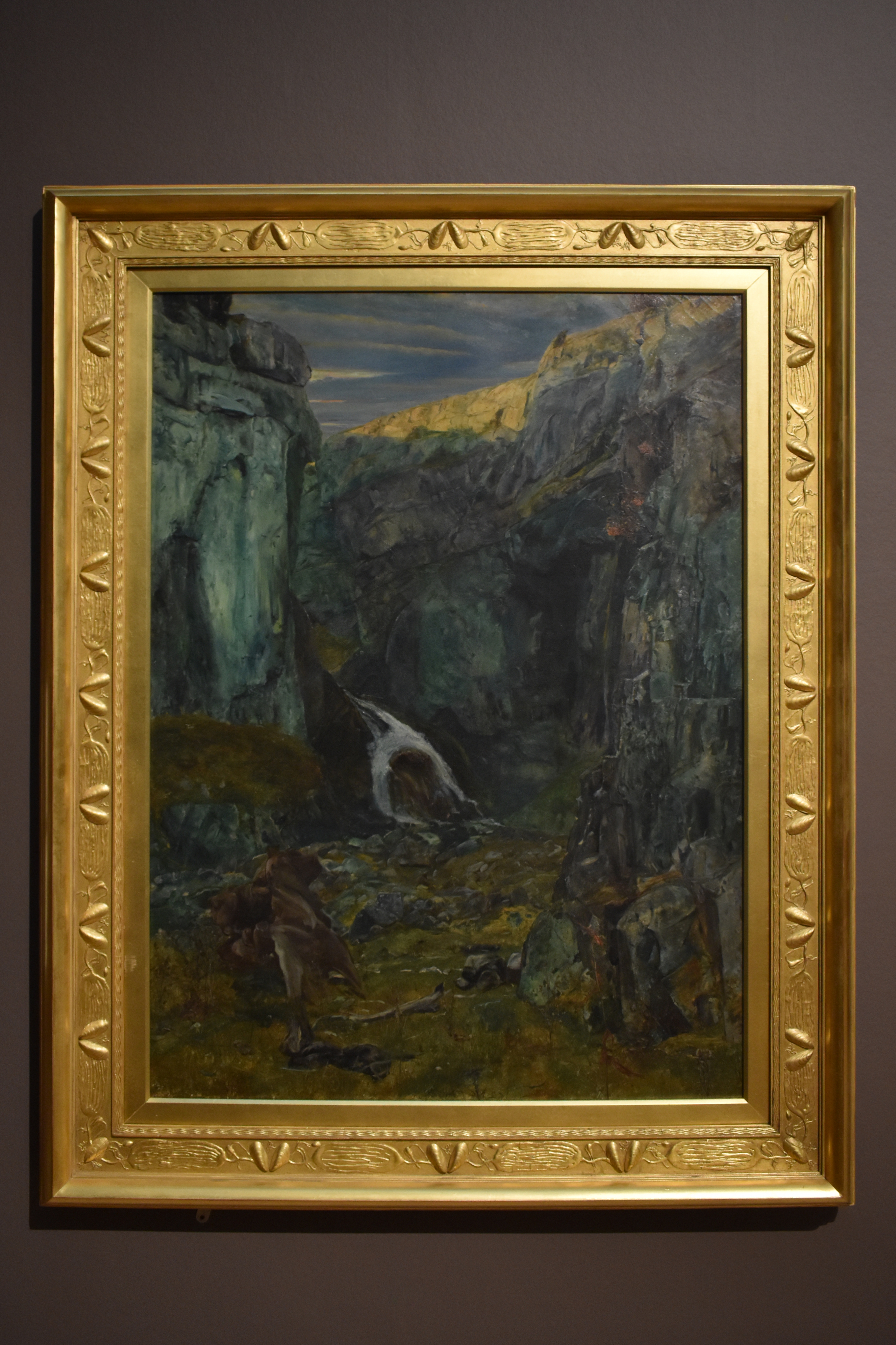 Инчболд, родившийся в Лидсе, попал под влияние прерафаэлитов в начале 1850-х годов. Он зарекомендовал себя как один из ведущих пейзажистов этого движения, но к концу десятилетия перешел к более широкому, атмосферному подходу, как показано здесь. Когда картина впервые была выставлена в Королевской академии, её сопровождали строки из сонета Вордсворта "Гордейл" 1818 года: "...когда воздух меркнет от угасающего света.../Тогда, задумчивый Вотари!, пусть твои ноги направятся в Гордейл, страшную пропасть, как логово, где кучкуются молодые львы; ...".