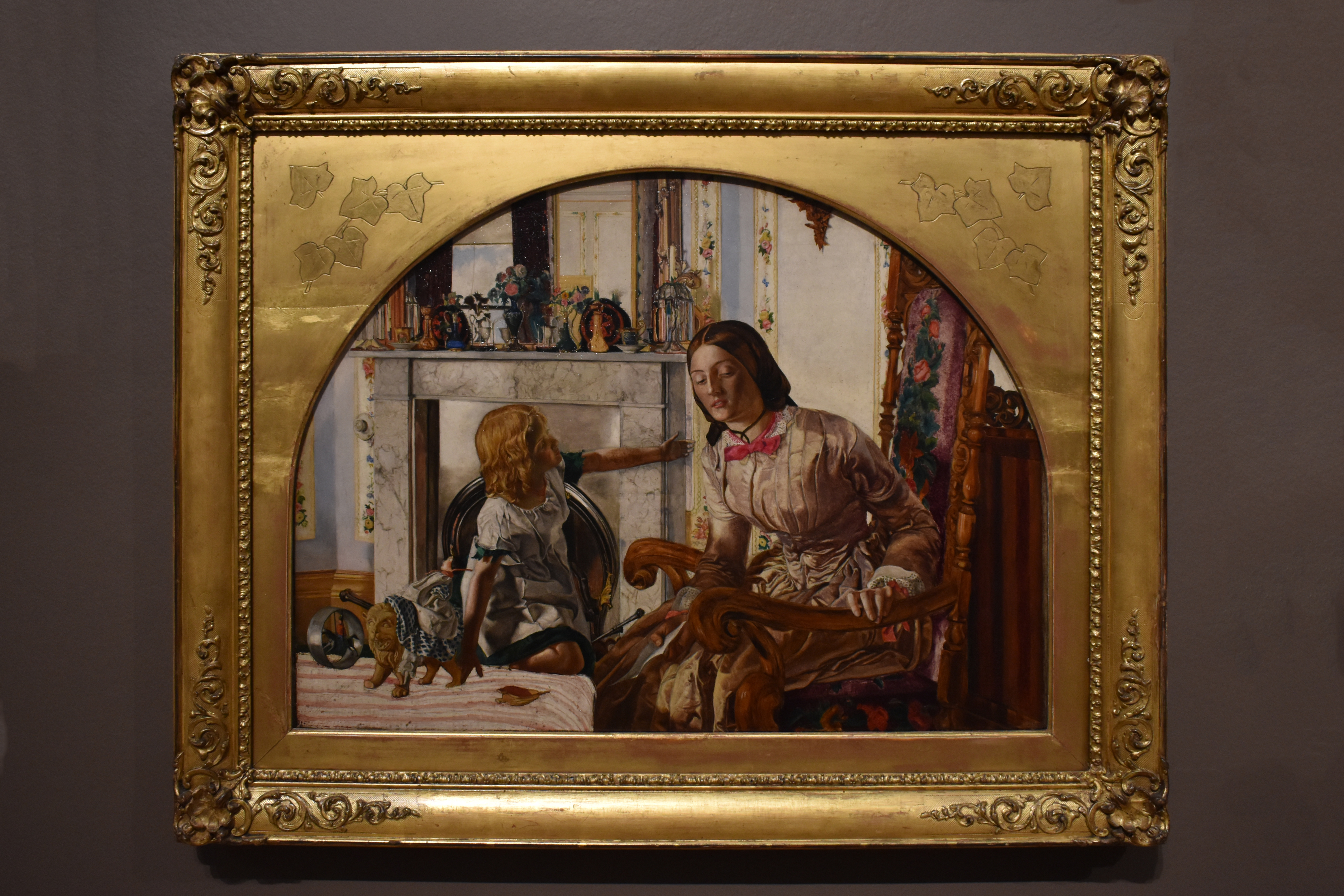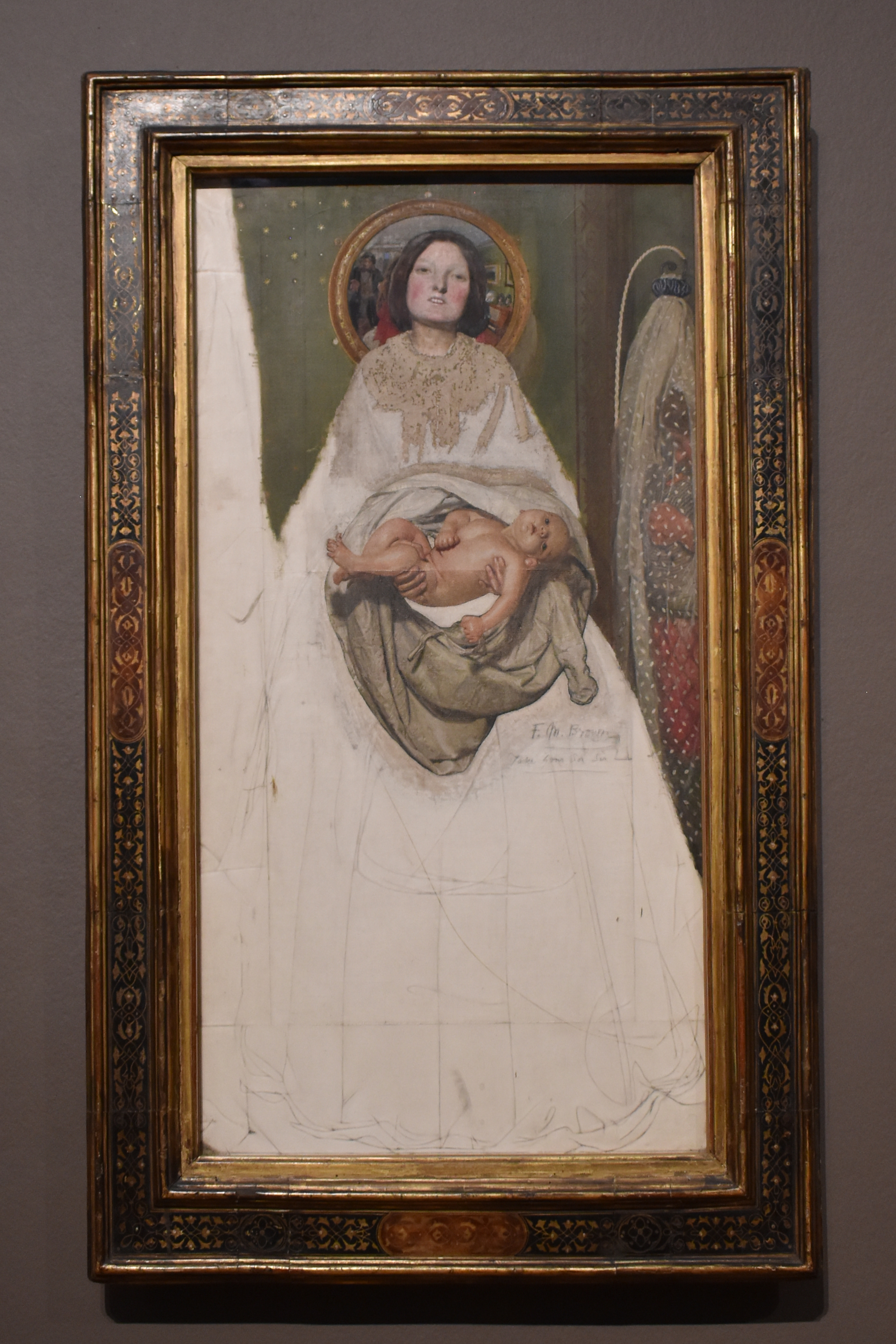 На этой загадочной картине изображена вторая жена художника, Эмма, и их новорожденный сын Артур Габриэль. Поза напоминает традиционную Мадонну с младенцем, но напряженное выражение лица матери говорит о том, что это не обычное празднование брака и материнства. Бытовые детали комнаты указывают на современную жизненную тематику, когда женщина протягивает ребенка мужу, отражённому в зеркале. Форд Мэдокс Браун начал эту композицию в 1851 году и, хотя работал над ней в течение нескольких лет, забросил её после смерти Артура в 1857 году.