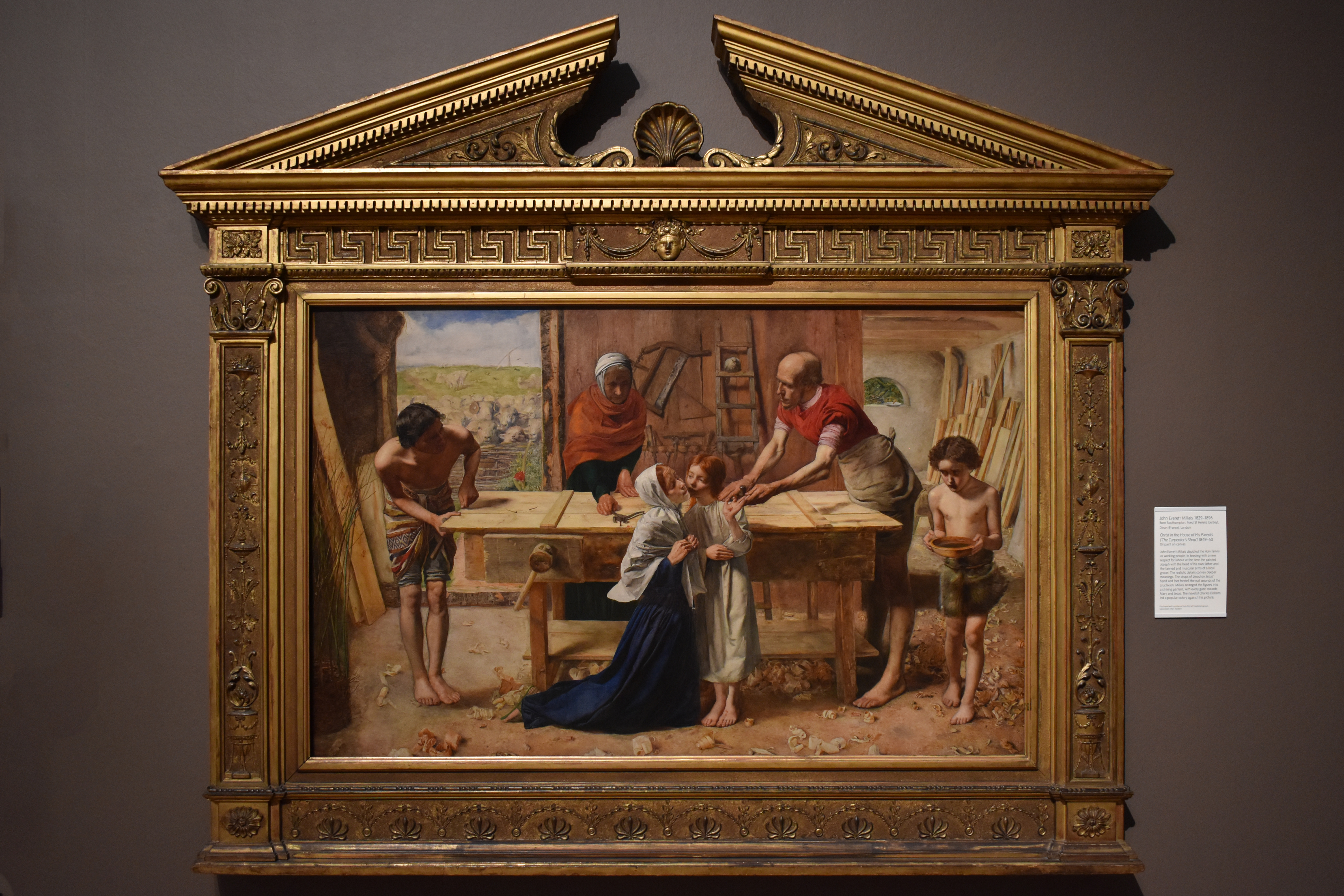 Джон Эверетт Милле изобразил Святое семейство в виде работающих людей, что соответствует новому уважению к труду в то время. Он изобразил Иосифа с головой собственного отца и загорелыми и мускулистыми руками местного бакалейщика. Реалистичные детали передают глубокий смысл. Капли крови на руках и ногах Иисуса предвещают раны от гвоздей на распятии. Милле выстроил фигуры в удивительный узор, каждый взгляд направлен на Марию и Иисуса. Писатель Чарльз Диккенс возглавил народное возмущение против этой картины.