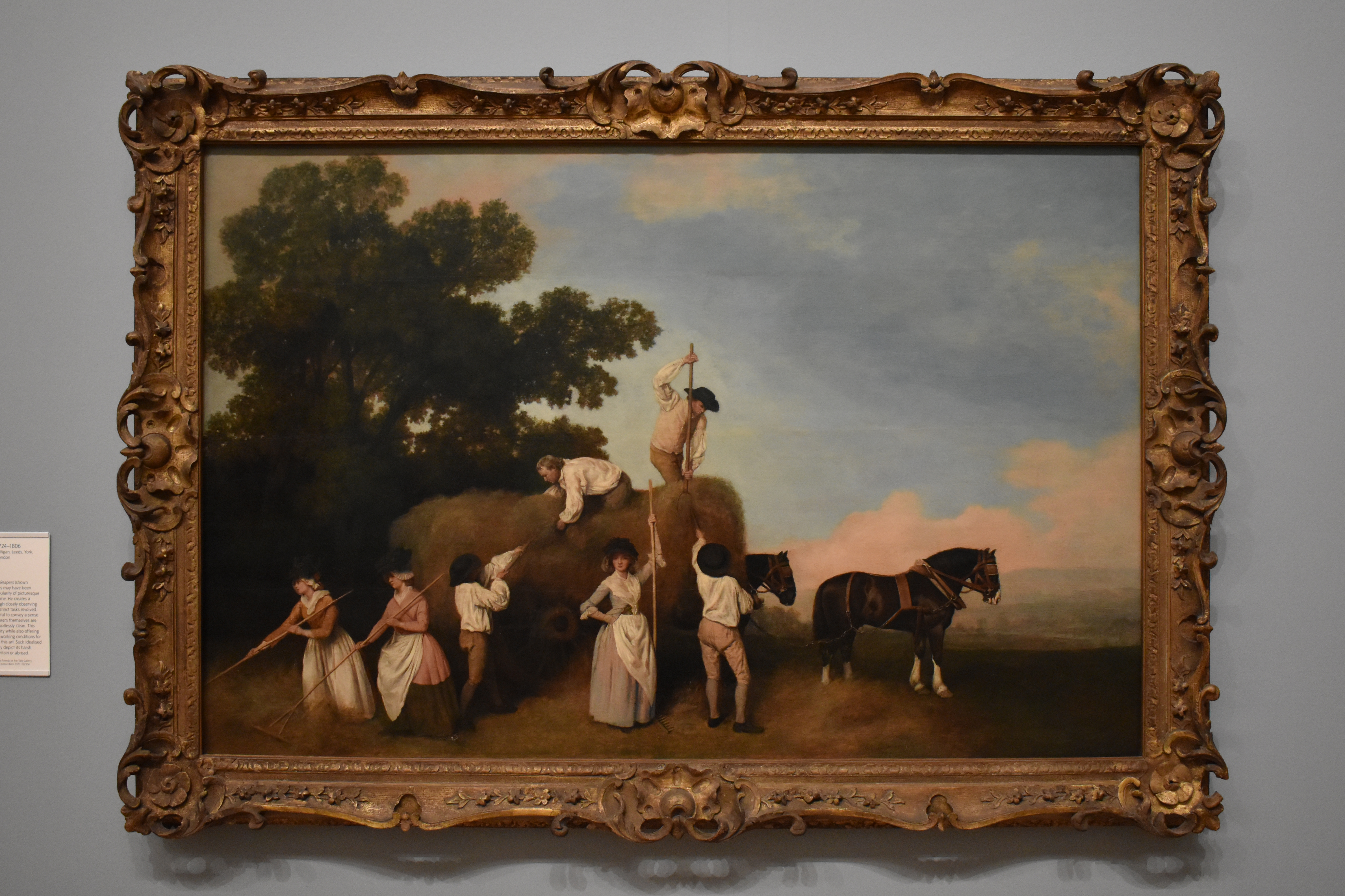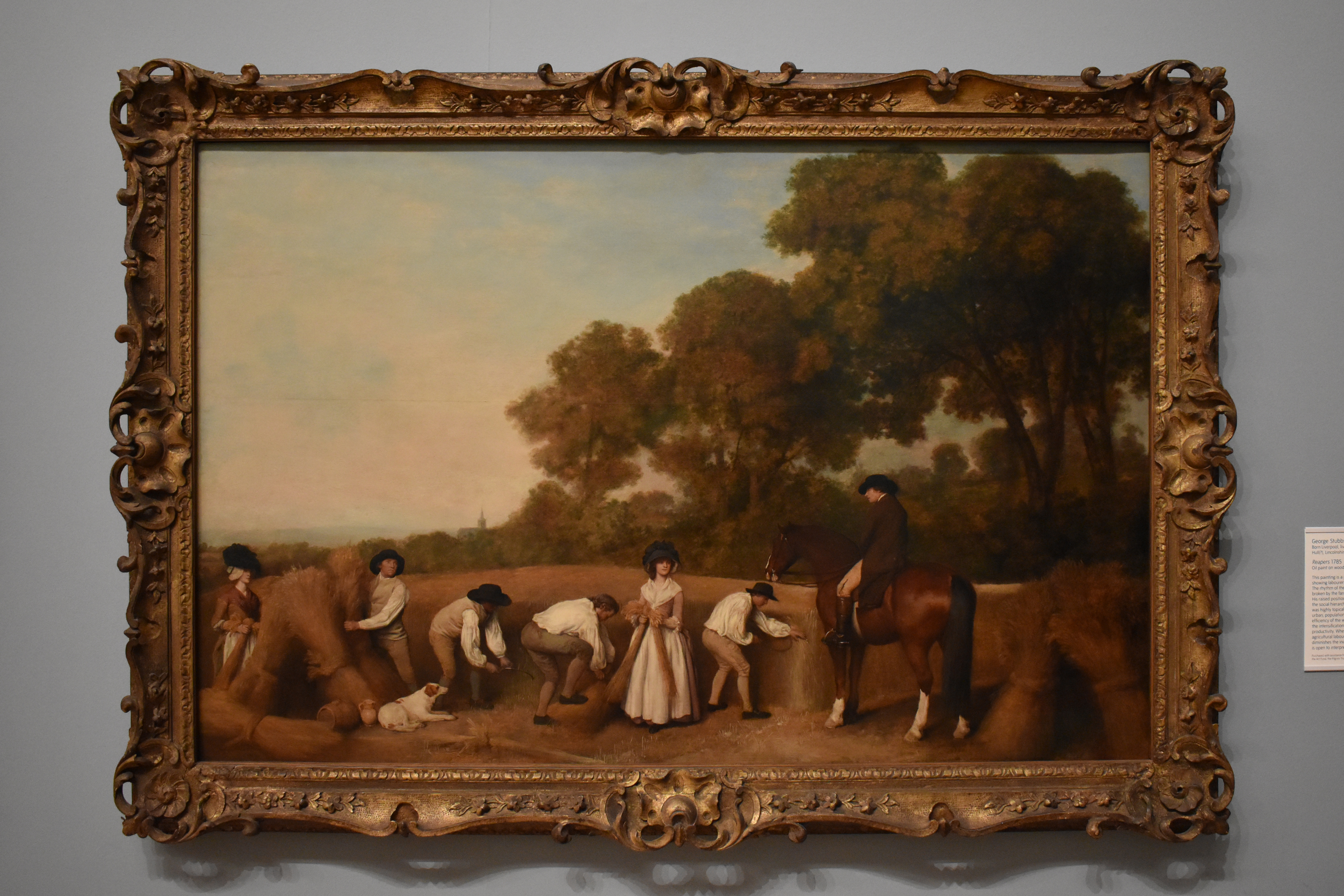 Джордж Стаббс, изображенный в паре со жнецами (на фото рядом), возможно, реагирует на популярность живописных сельских сюжетов в это время. Он создает ощущение реалистичности, внимательно наблюдая за сенокосом и различными работами, связанными с ним. Но Стаббс также старается передать ощущение гармонии. Сами работники спокойны, элегантны и безупречно чисты. Это подчеркивает их достоинство и в то же время дает уверенное представление об условиях труда для состоятельных потребителей этого искусства. Такие идеализированные образы труда редко отражают его суровую реальность, будь то в Британии или за рубежом.