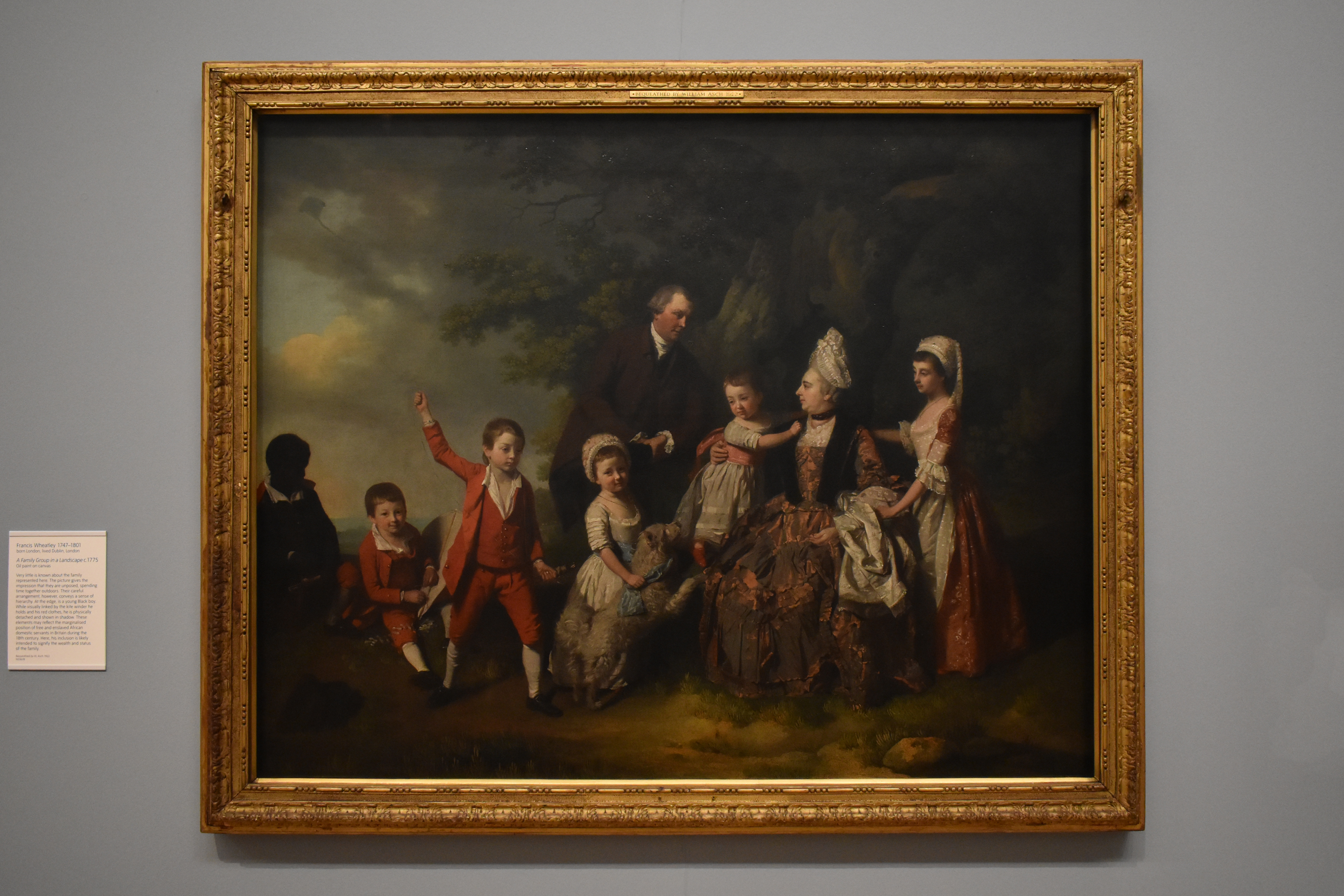 О представленной здесь семье известно очень мало. На картине создается впечатление, что они не позируют, проводя время вместе на свежем воздухе. Однако их аккуратное расположение передает ощущение иерархии. На краю – маленький чернокожий мальчик. Хотя визуально он связан с ними с помощью воздушного змея, который он держит в руках, и его красной одежды, физически он отстранен и изображен в тени. Эти элементы могут отражать маргинальное положение свободных и порабощенных африканских домашних слуг в Великобритании в XVIII веке. В данном случае его присутствие, скорее всего, призвано обозначить богатство и статус семьи.