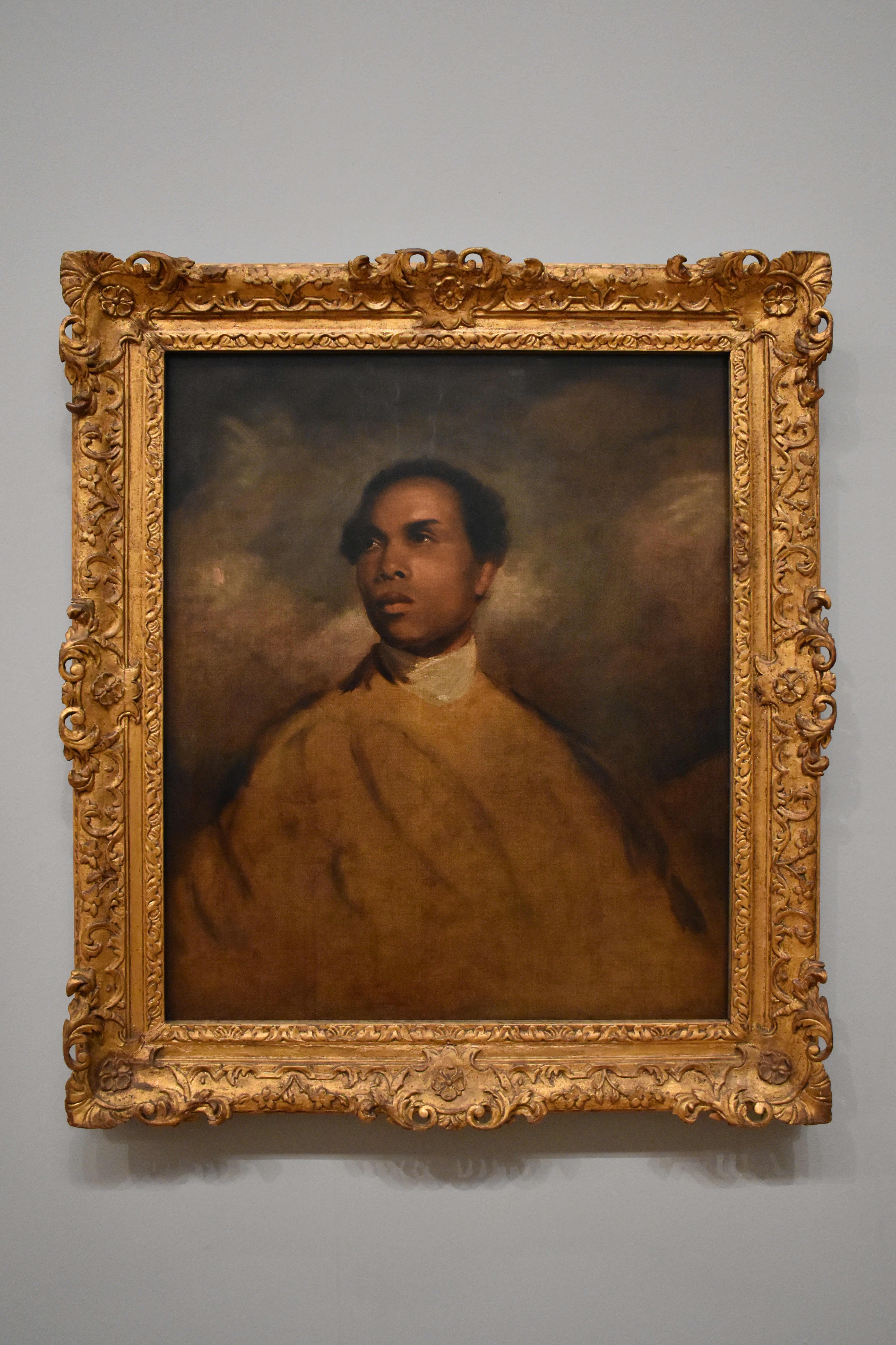 Это копия незаконченного портрета Джошуа Рейнольдса. Хотя личность портретируемого точно не установлена, предполагается, что это Фрэнсис Барбер (Francis Barber, 1742-1801). Барбер был обращен в рабство при рождении на Ямайке полковником Ричардом Батерстом. Тот увез его в Англию, где Барбер впоследствии был освобожден. Барбер много лет помогал писателю Сэмюэлю Джонсону (Samuel Johnso, 1709-1784), стал наследником Джонсона и сам стал публичной фигурой. Хотя созерцательный взгляд Барбера передает его достоинство, многочисленные версии этого портрета могут свидетельствовать о том, что к нему, как к чернокожему человеку, относились скорее как к объекту искусства, чем как к личности.