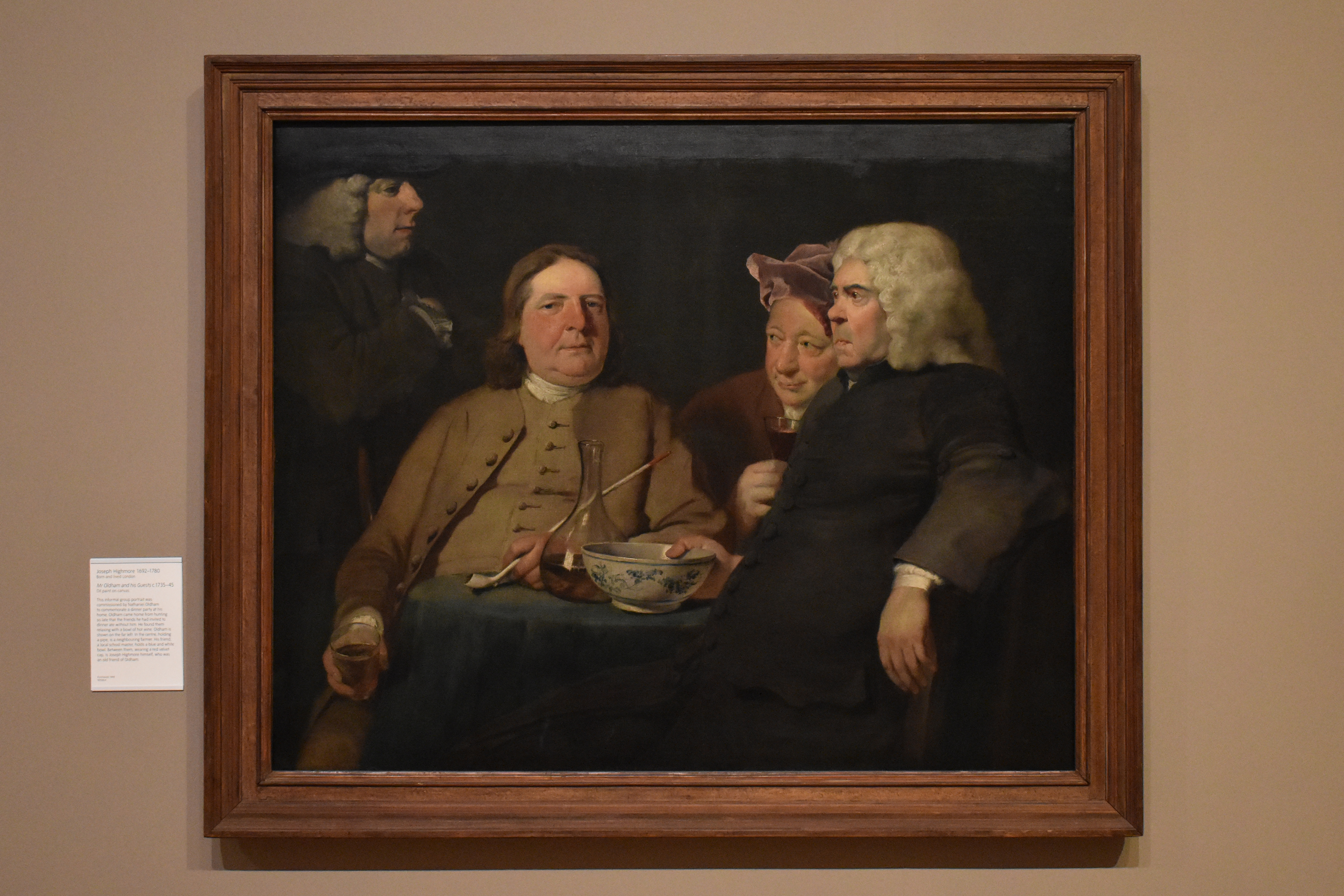 Этот неформальный групповой портрет был написан для Натаниэля Олдхэма в честь званого ужина в этом доме. Олдхэм вернулся домой с охоты так поздно, что друзья, которых он пригласил на ужин, ужинали без него. Он застал их отдыхающими с чашей горячего вина. Олдхэм изображен крайним слева. В центре, держа в руках трубку, – соседний фермер. Его друг, учитель местной школы, держит сине-белую чашу. Между ними, в красной бархатной шапочке, – сам Джозеф Хаймор, близкий друг Олдхэма, которому было поручено написать эту сцену.