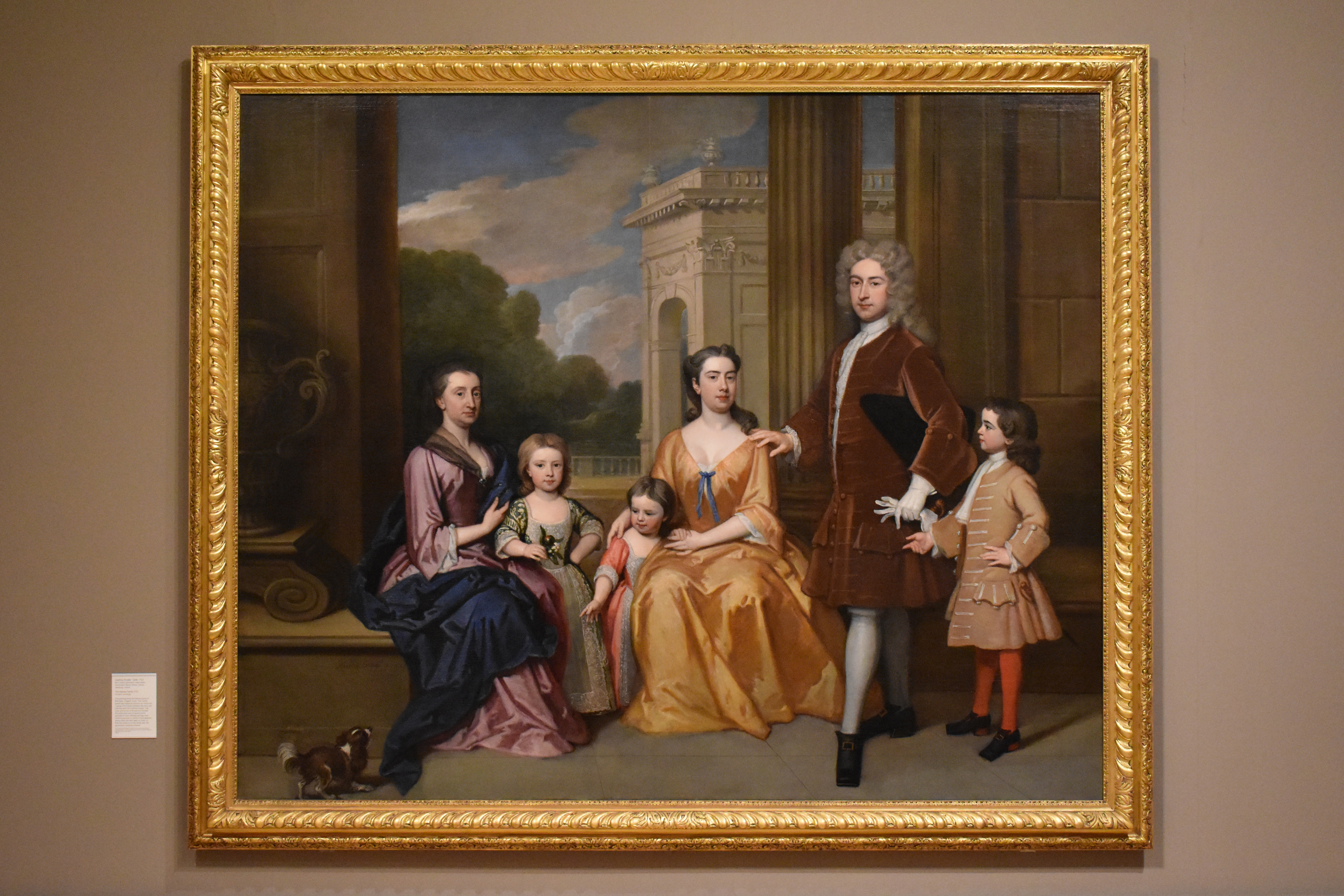 На этой картине изображена семья Харви из Роллс-Парка, Эссекс. Их богатство было построено на бизнесе, но масштаб и формат этой картины имитирует аристократический стиль парадных придворных портретов. Предполагает ли сдержанный стиль этой картины новый набор социальных ценностей? Такие яркие картины предназначались для показа в галереях загородных домов, где выставлялись и другие портреты, чтобы подчеркнуть преемственность семьи в нескольких поколениях.