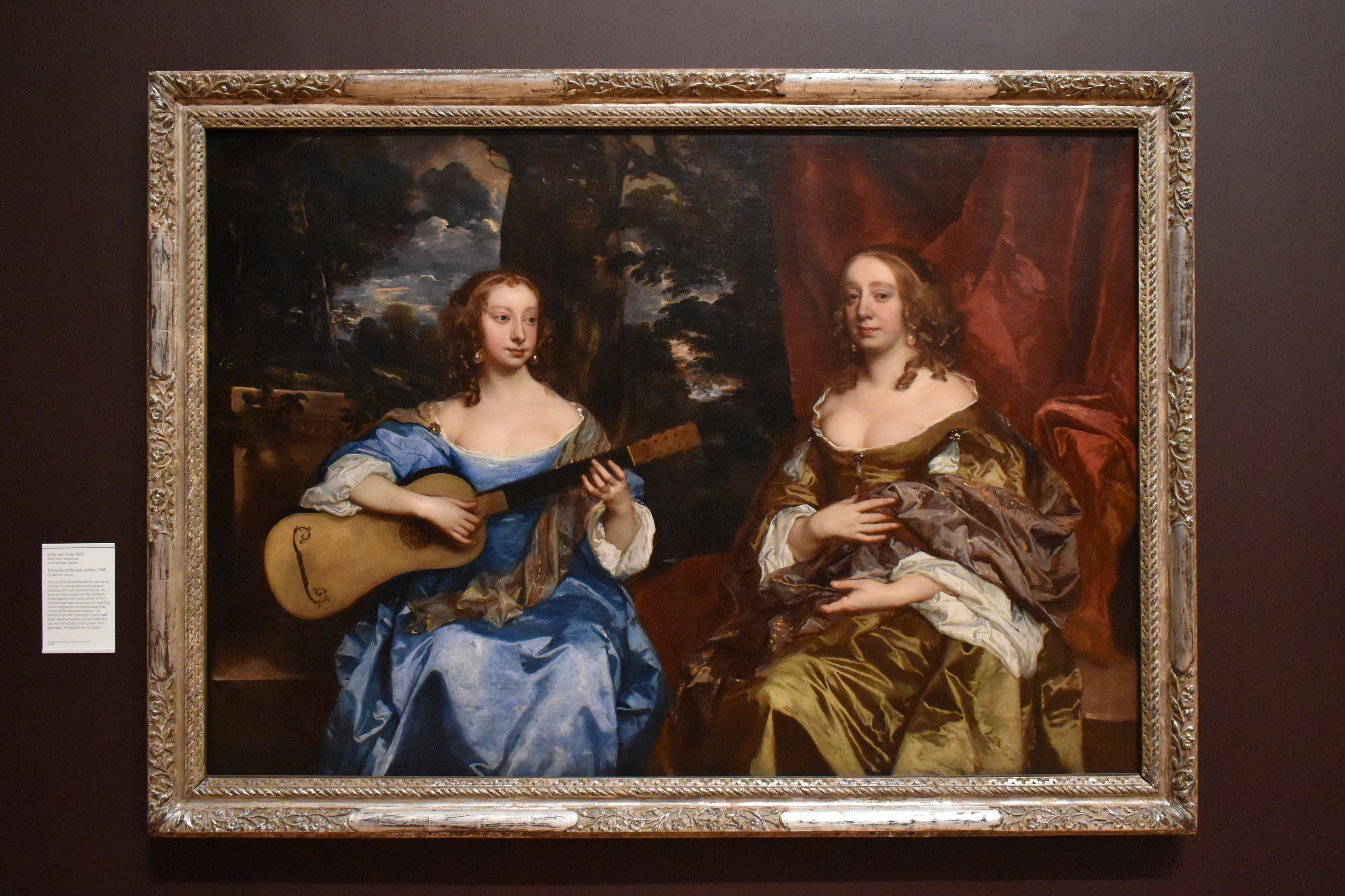 Эта картина связана с семьей Лейк, жившей в Кэннонс Хаусе и поместье в Мидлсексе. Женские портреты Лели, как и этот, как правило, соответствуют стандартам идеальной красоты, которые были актуальны при дворе. Художник был больше озабочен созданием ощущения гламура и изысканности, чем передачей индивидуальности. Женщина слева играет на гитаре французского производства – последняя мода, пришедшая из Парижа. Лели был ведущим портретистом своего поколения, главным художником Карла II.