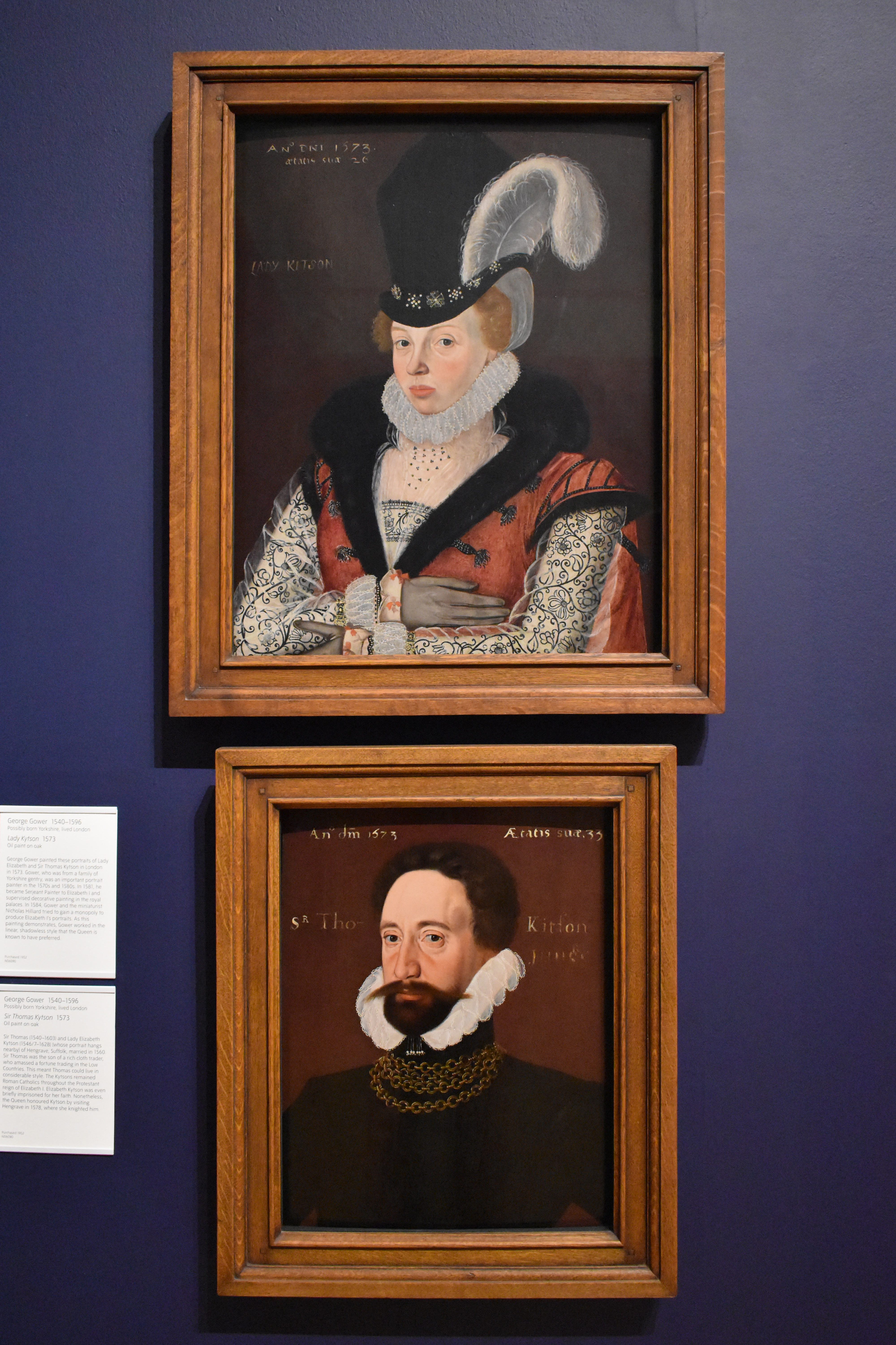 Джордж Гоуэр написал эти портреты леди Элизабет и сэра Томаса Кайтсона в Лондоне в 1573 году. Гоуэр, происходивший из семьи йоркширских дворян, был известным портретистом в 1570-х и 1580-х годах. В 1581 году он стал сержантом-художником Елизаветы I и руководил декоративной живописью в королевских дворцах. В 1584 году Гоуэр и миниатюрист Николас Хиллиард пытались получить монополию на создание портретов Елизаветы I. Как показывает эта картина, Гоуэр работал в линейном, лишенном теней стиле, который, как известно, предпочитала королева.
