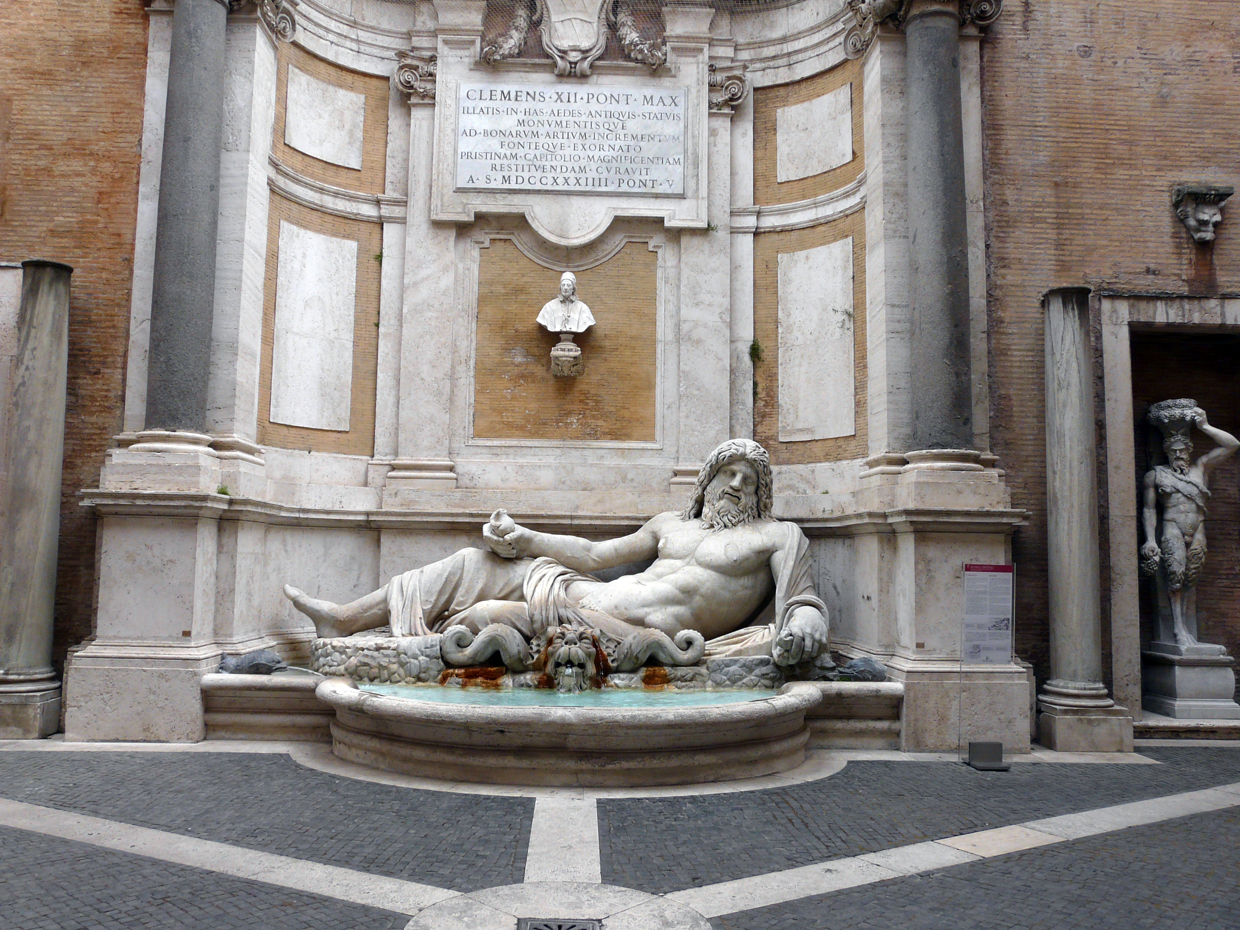 В 1720 году в портике двора разместили великолепную скульптурную группу – богиня Рома и два пленённых варварских правителя. Ранее группа входила в коллекцию кардинала Чези и была выкуплена папой Климентом XI именно для Капитолийского музея.