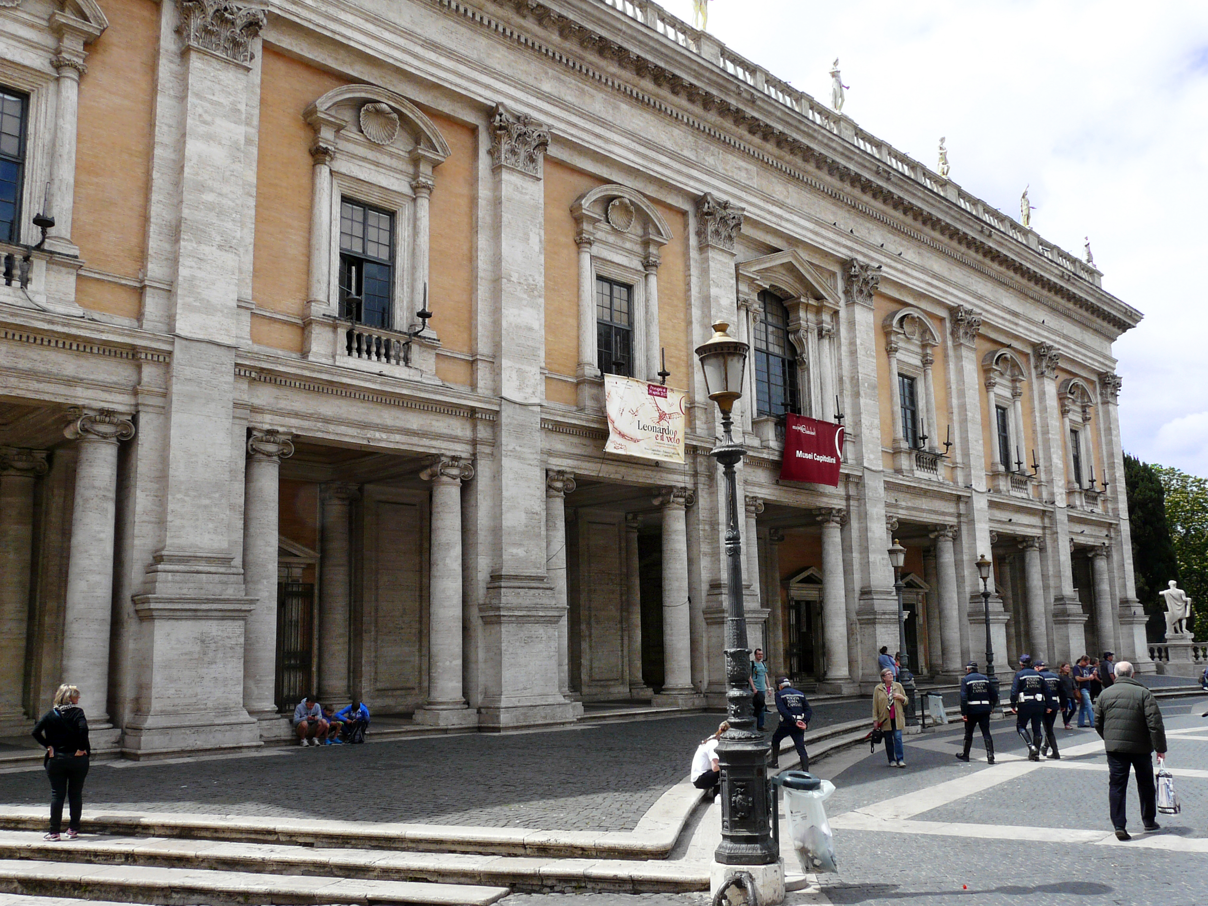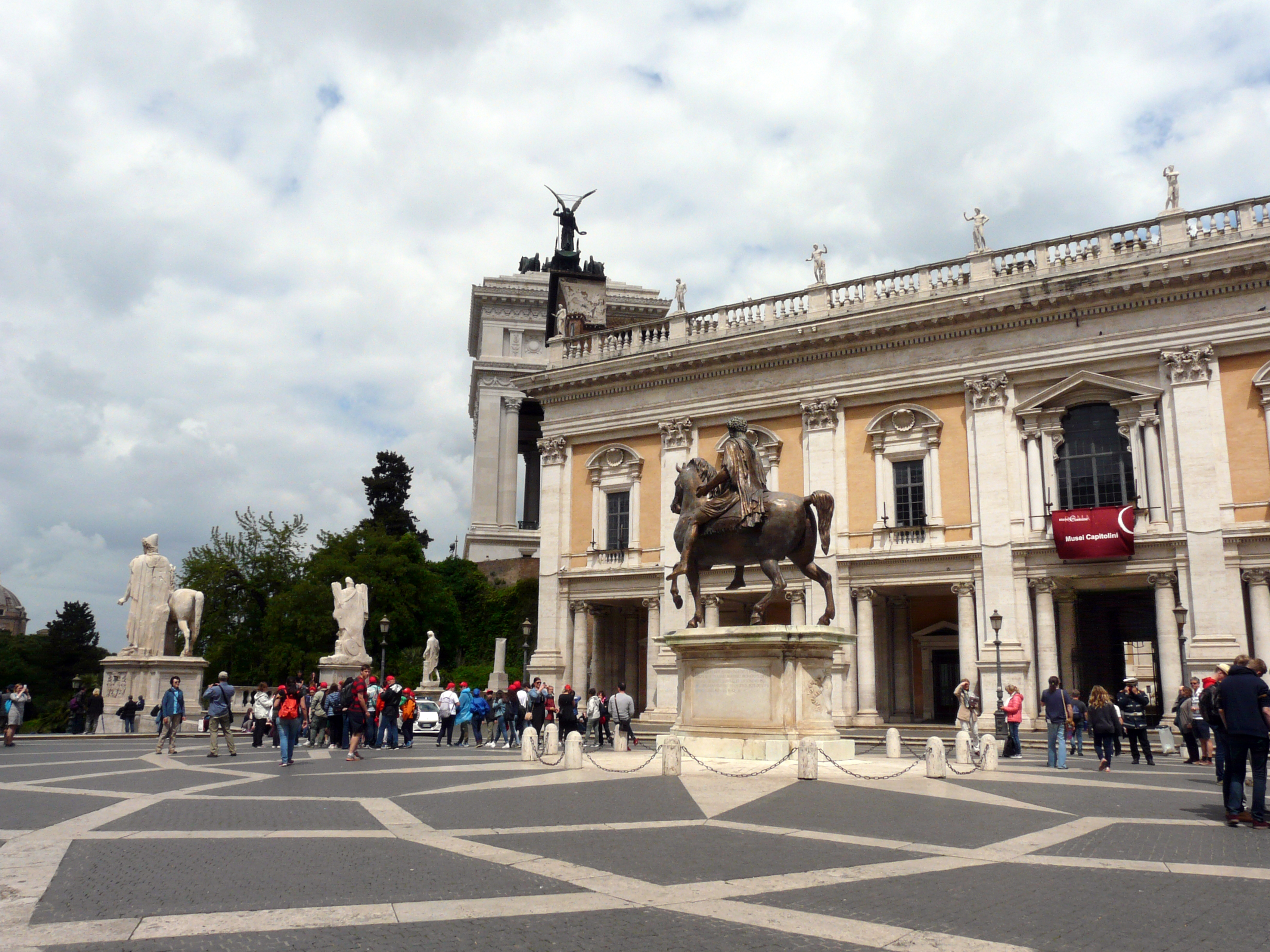 Также Микеланджело является автором проекта Кордонаты и балюстрады; в центре площади он установил конную статую Марка Аврелия (в настоящее время её оригинал находится в Капитолийских музеях).