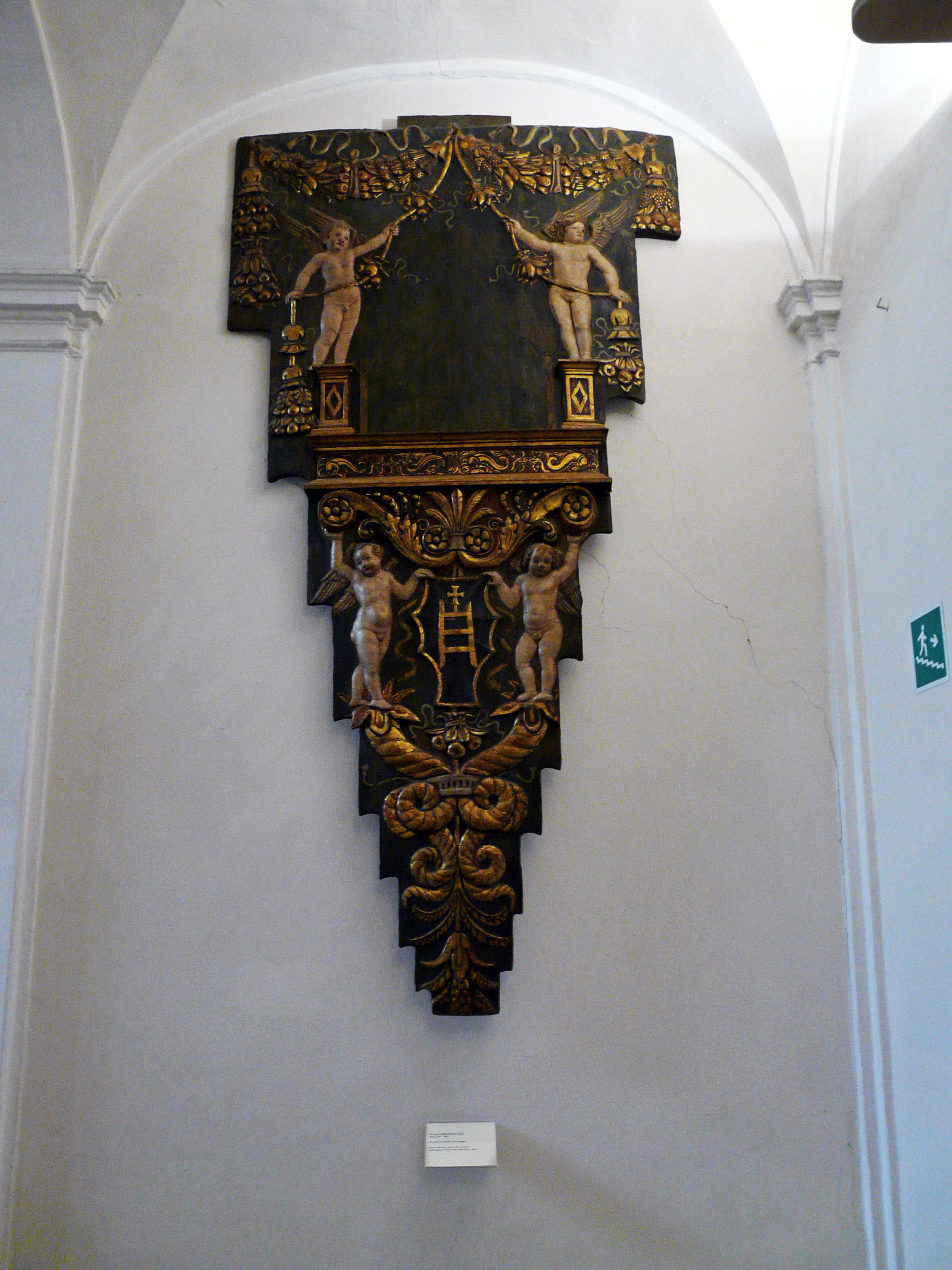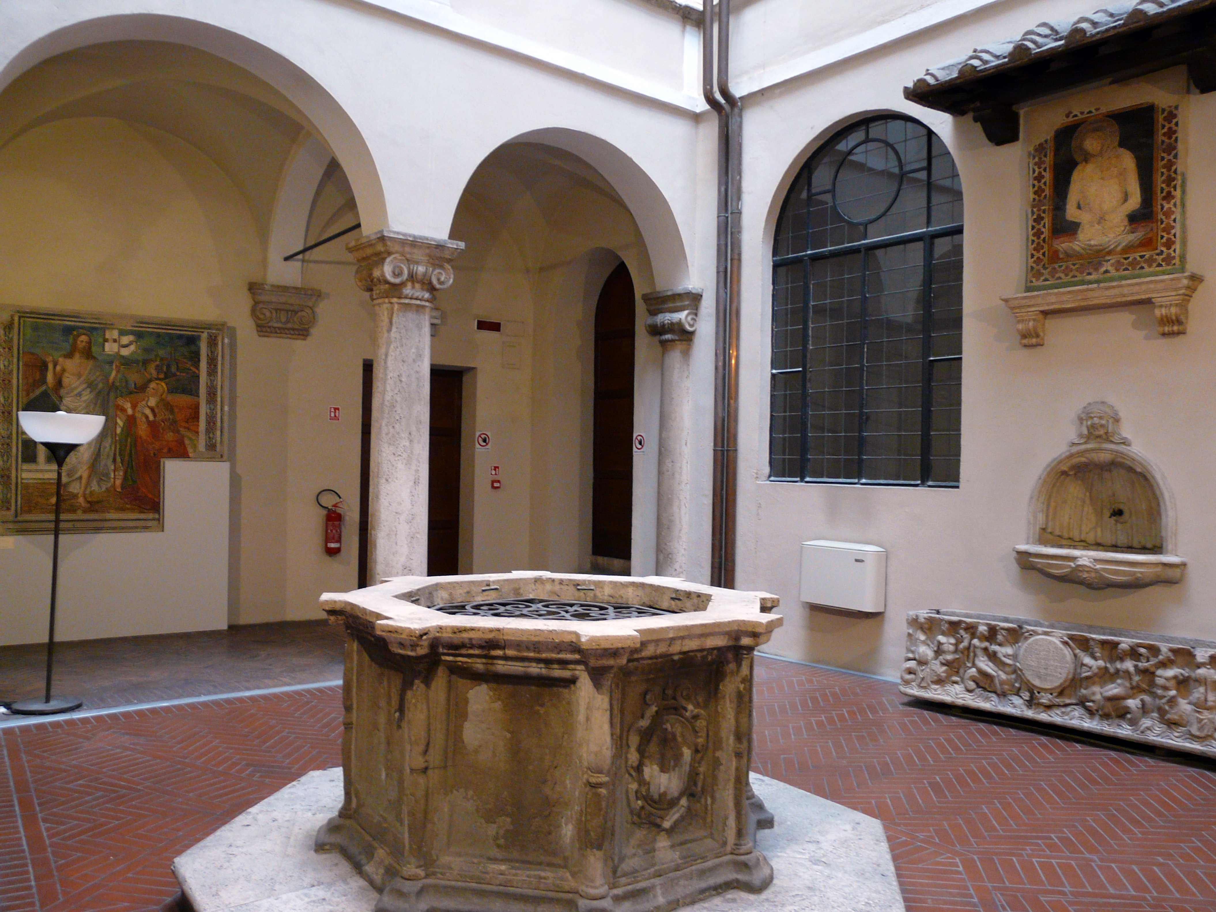 На другой стене – цветной барельеф работы Нероччо де Ланди (итал. Neroccio de Landi; 1447-1500) из госпиталя и странноприимного дома Санта-Мария-делла-Скала (Ospedale di Santa Maria della Scala) в Сиене