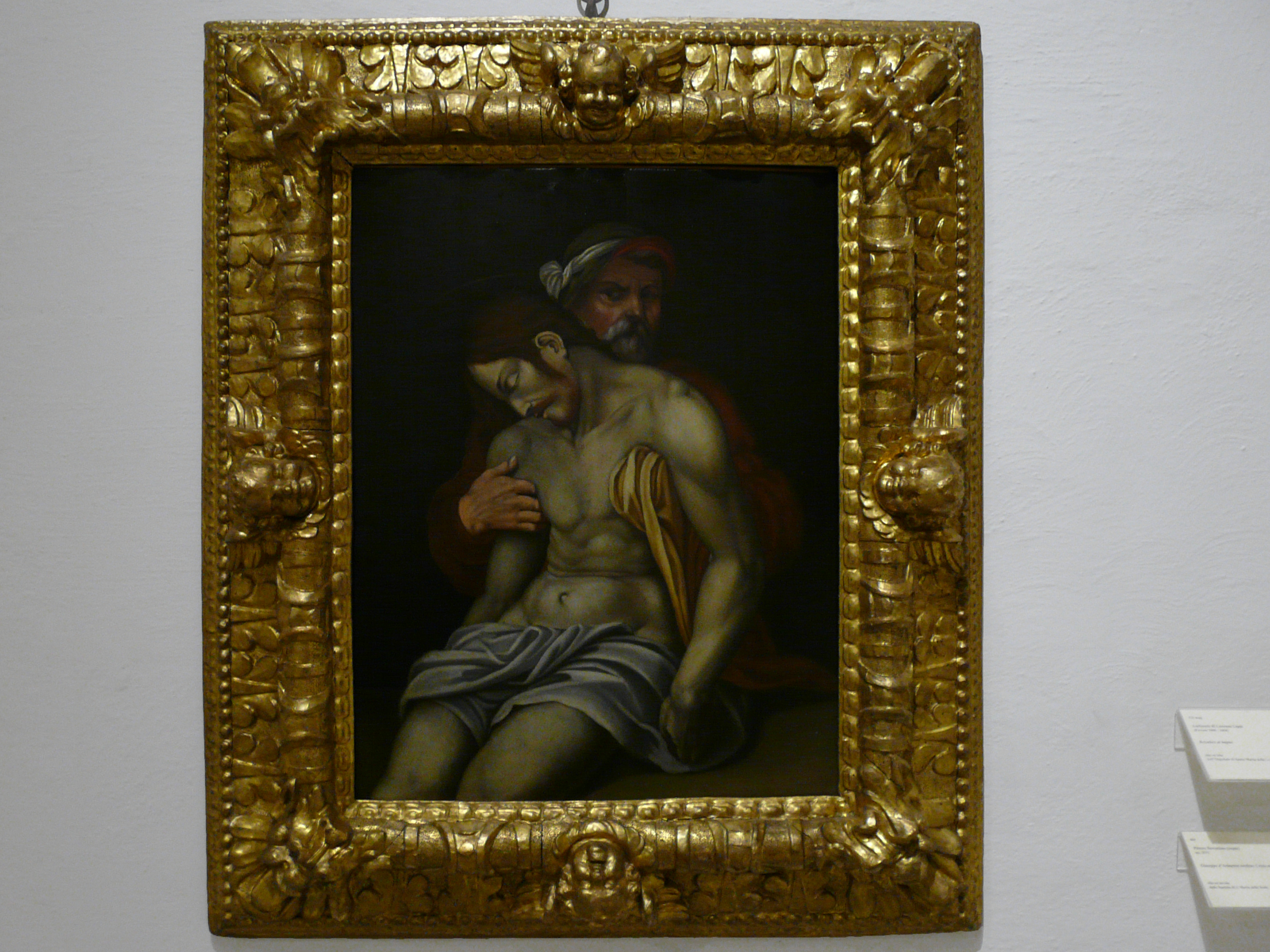 На другой стене – цветной барельеф работы Нероччо де Ланди (итал. Neroccio de Landi; 1447-1500) из госпиталя и странноприимного дома Санта-Мария-делла-Скала (Ospedale di Santa Maria della Scala) в Сиене