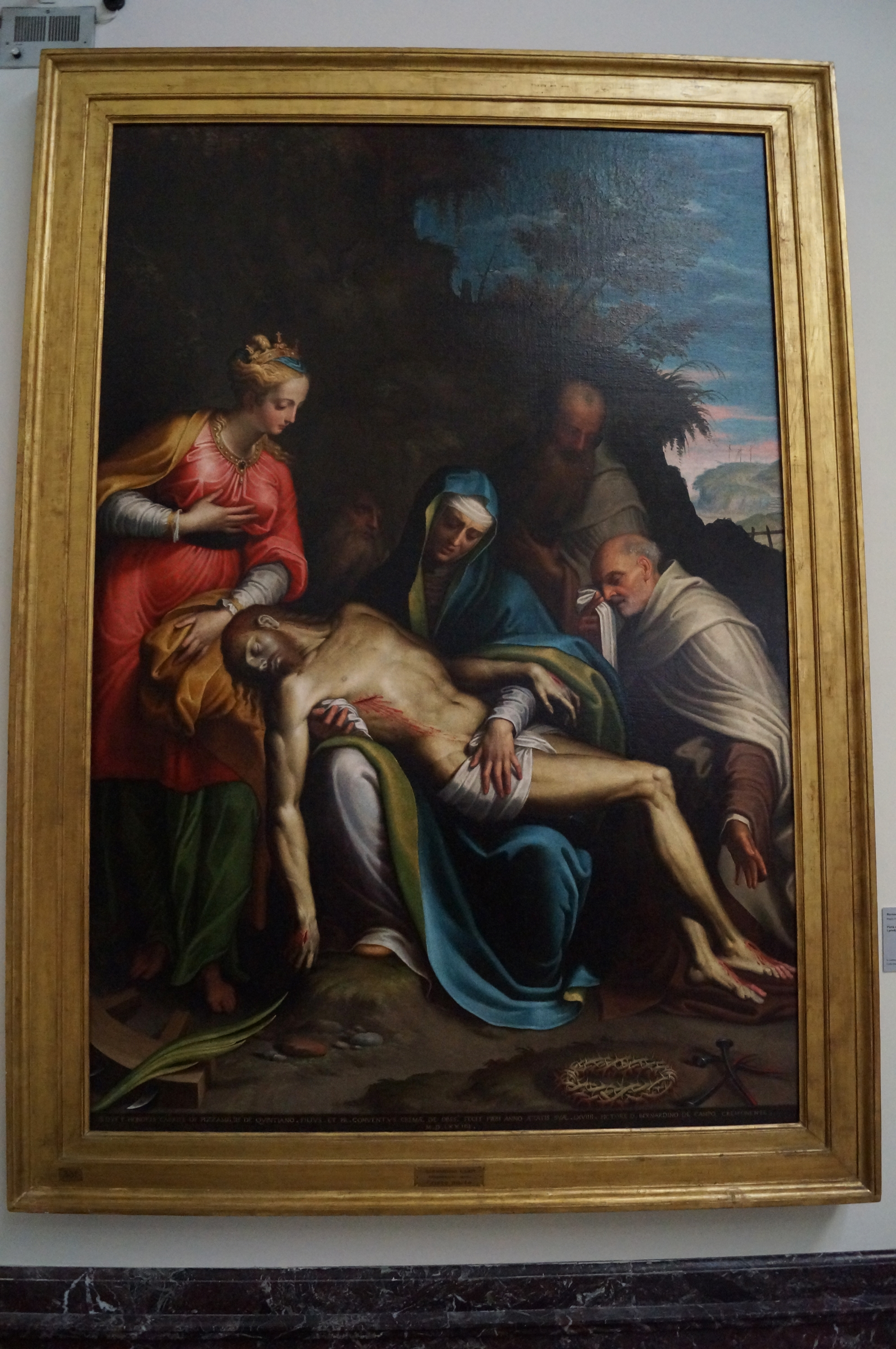 This fresco is part of a cycle from the Oratorio della Maddalena in the Monastery of San Colombano al Lambro near Lodi. It was partially detached and trasferred onto canvas in 1846, when the monastery was destroyed. The decoration of the oratory was commissioned from Bernardino in 1577 by the prior of the Certosa di Pavia on which San Colombano depended, but it was only begun in 1579 and completed in 1580. The artist used assistants to ensure that he could rapidly complete the demanding task.