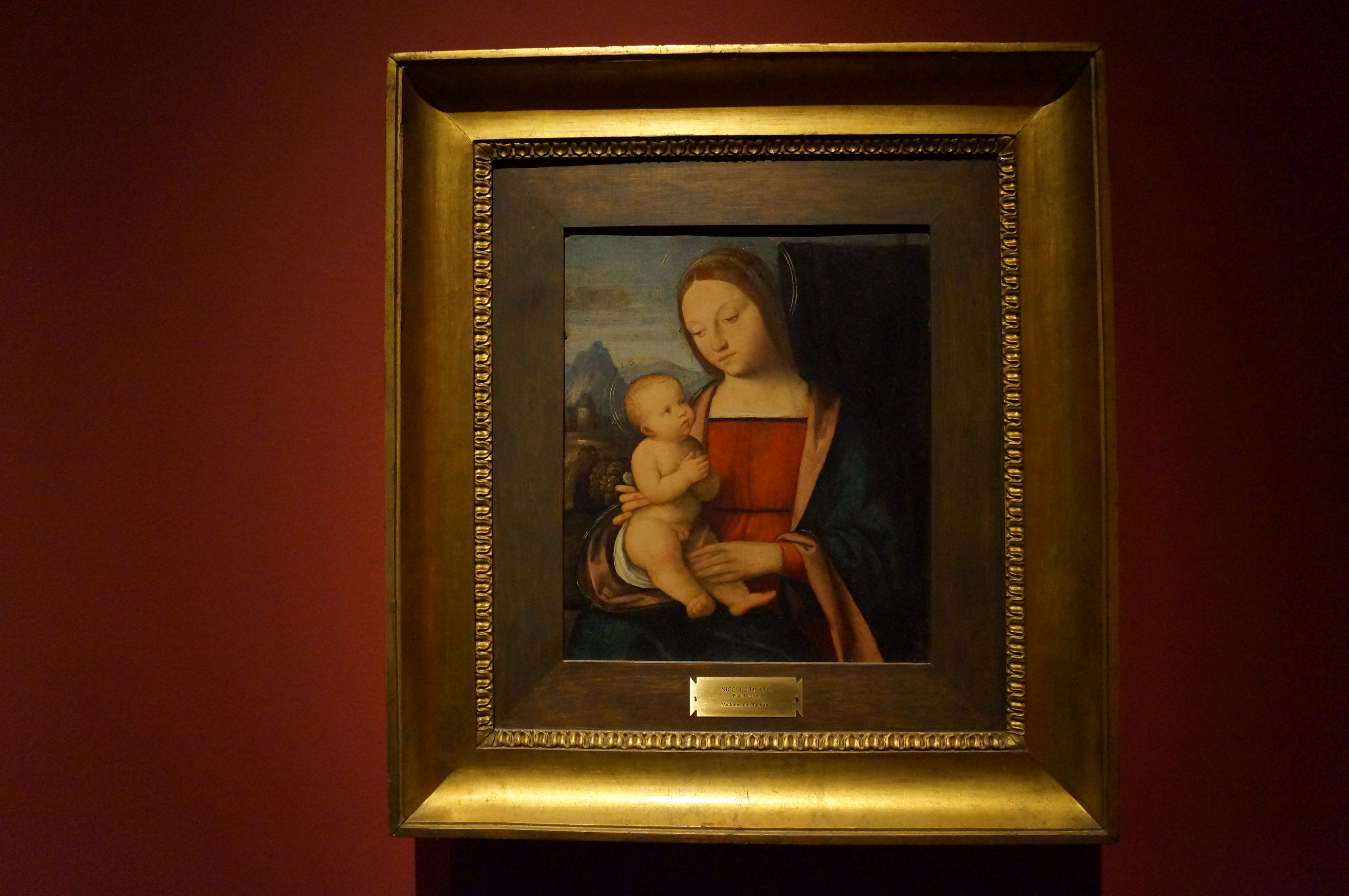 This panel is already modern, as witnessed by the Christ child, still bound tightly as a mummy, but struggling with a certain naturalness, very different to the Byzantine world shown by the panel of The Master of San Verano in the same room. The panel has suffered, so that we see the colour of the underlying layer of preparation, especially on the face of the Madonna. Nevertheless, what remain is the ruin of a masterpiece of italian painting from the first half of the 14th century.