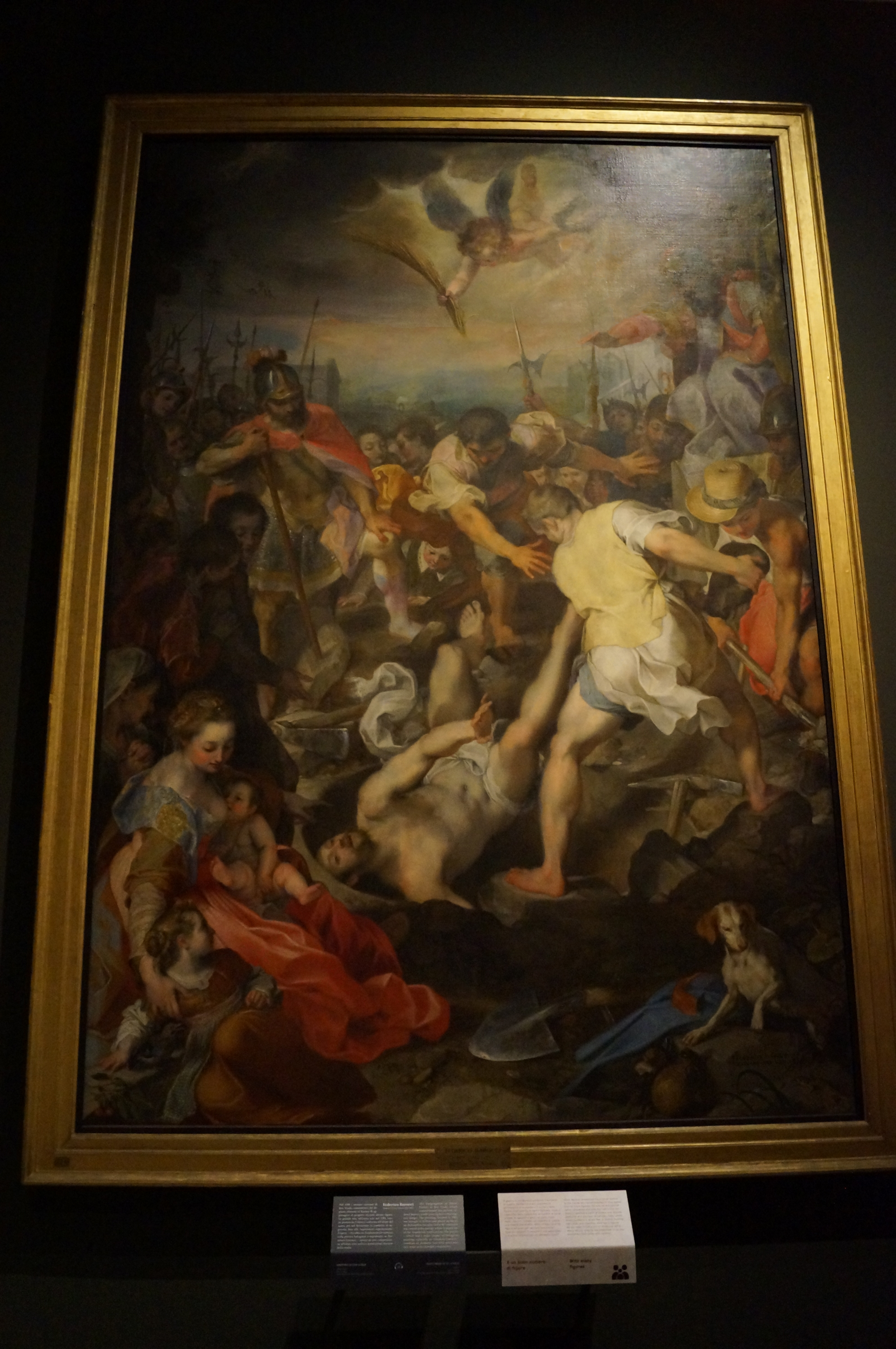 The date of this painting, once the altarpiece in the Cattaneo Adorno family chapel in the church of San Francesco ad Albaro in Genoa, is the subject of some debate. It appears to be a youthful work by Procaccini who is known to have been in Genoa in 1618, although he had already worked for his authoritative patron Gian Carlo Doria prior to that date. Charles Borromeo, who was canonised on 1 November 1610, is surrounded by angels in a splendid array of dazzling colours.