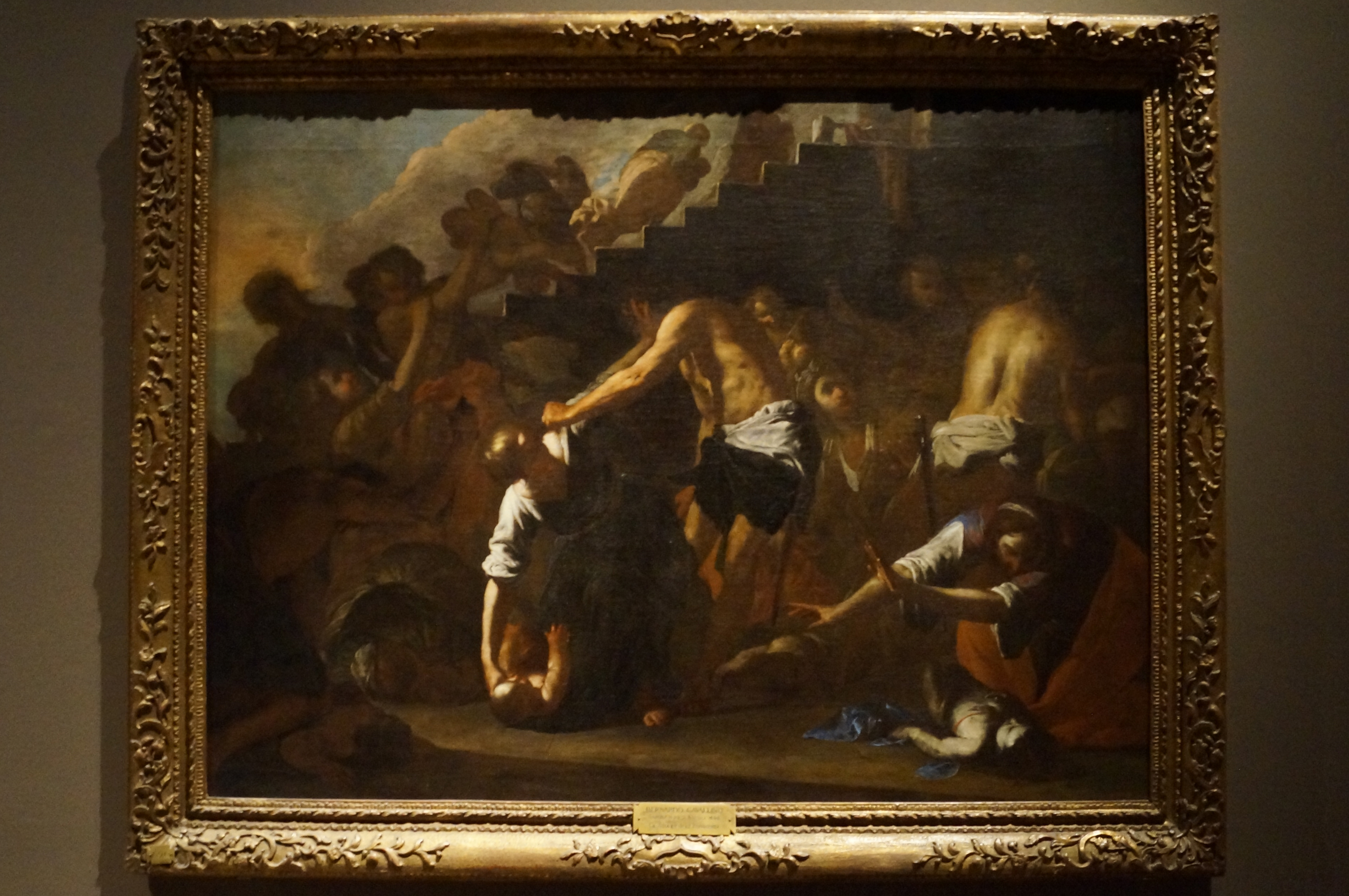 This painting was long attributed to Caravaggio himself despite its being initialled “GBC”, the monogram with which Battistello used to sign his work. The use of a support made of the kind of hempen sacking favoured by Caravaggesque painters in Naples appears to indicate that it was painted in that city, yet its links with paintings by Battistello now in northern Italy suggest that the picture was then sent north, possibly to Genoa where his work was much prized and where he himself resided for a time.
