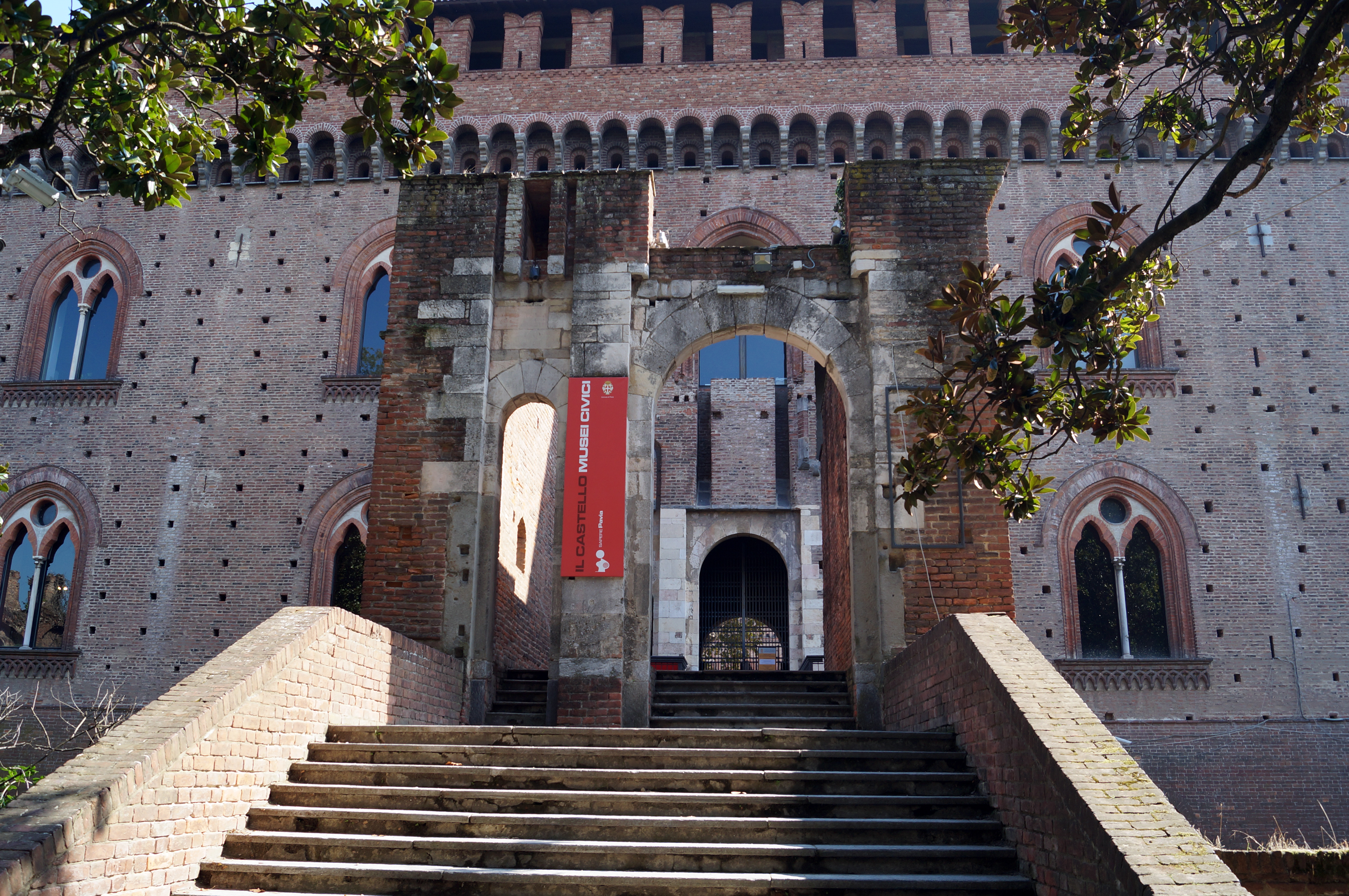Замок Висконти (итал. Visconti Castle) является одним из наиболее известных памятников Павии, в котором сейчас находятся городские музеи. Построенный во второй половине XIV века правителем Милана Галеаццо II Висконти замок в виде крепости с величественным домом имел форму четырёхугольника. Северная сторона была разрушена в 1527 году во время войны между армиями Карла V из Испании и Франциска II из Франции во время битвы при Павии. На юго-восточном и юго-западном углах все еще видны две башни, ров, который можно посетить сегодня, остатки разводных мостов, зубчатые стены с патрульными дорожками.