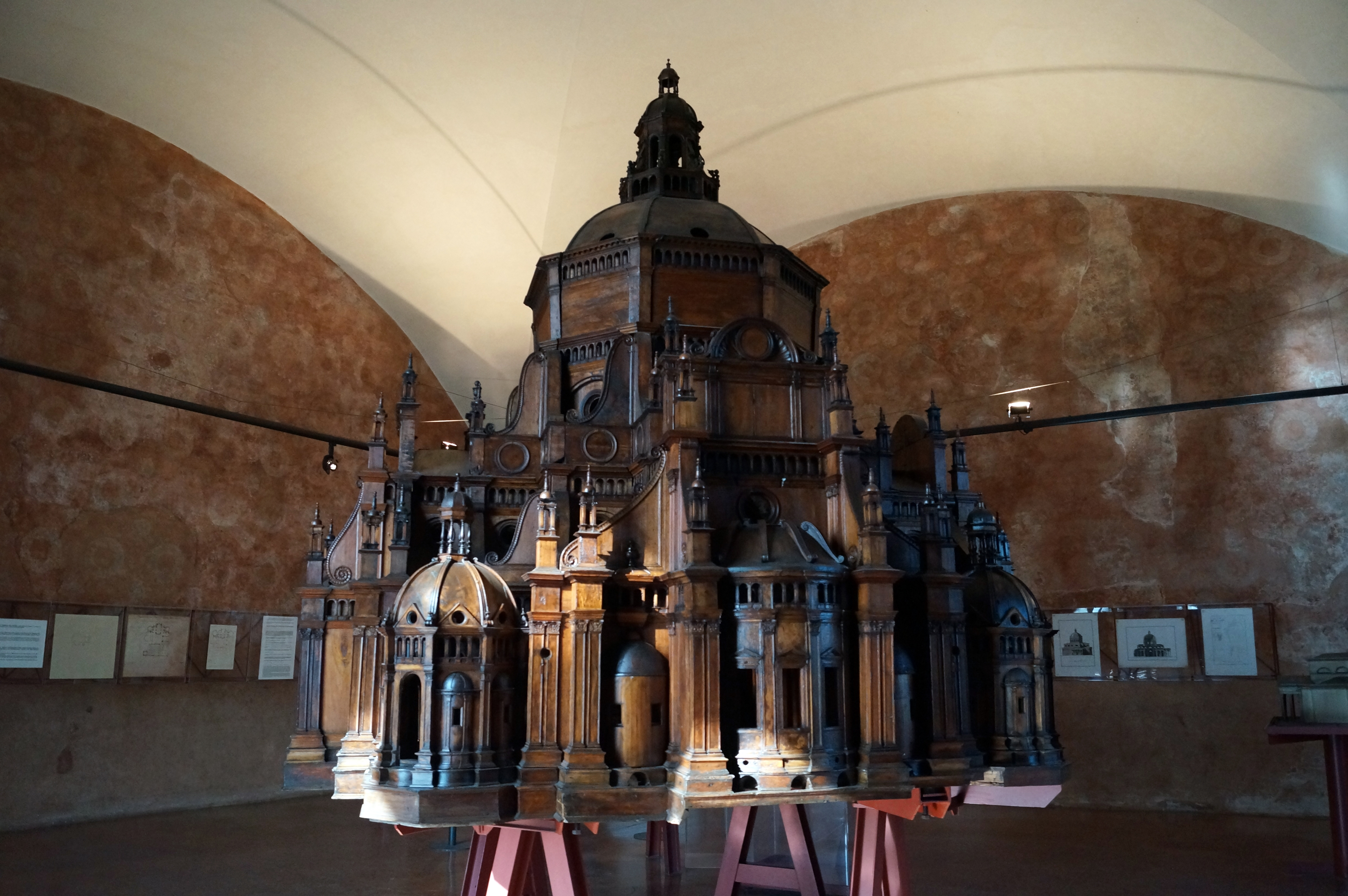 Однако самое заметное ядро составляют работы Ломбарда, в том числе знаменитая Пала Боттигелла Винченцо Фоппа, мастера живописи Ломбардного Ренессанса, а также чудесный стол Христа Портакроша и десять кертозинов, выполненных Амброджо да Фоссано (Бергоньоне) для Чертоза ди Павии. : фасад Чертоза на фоне работ представляет значительный интерес для изучения этапов строительства памятника. В следующей за ней башне находится деревянная модель собора Павии, одной из самых грандиозных деревянных моделей эпохи Возрождения, созданной Джованом Пьетро Фугацца в 1497 году.