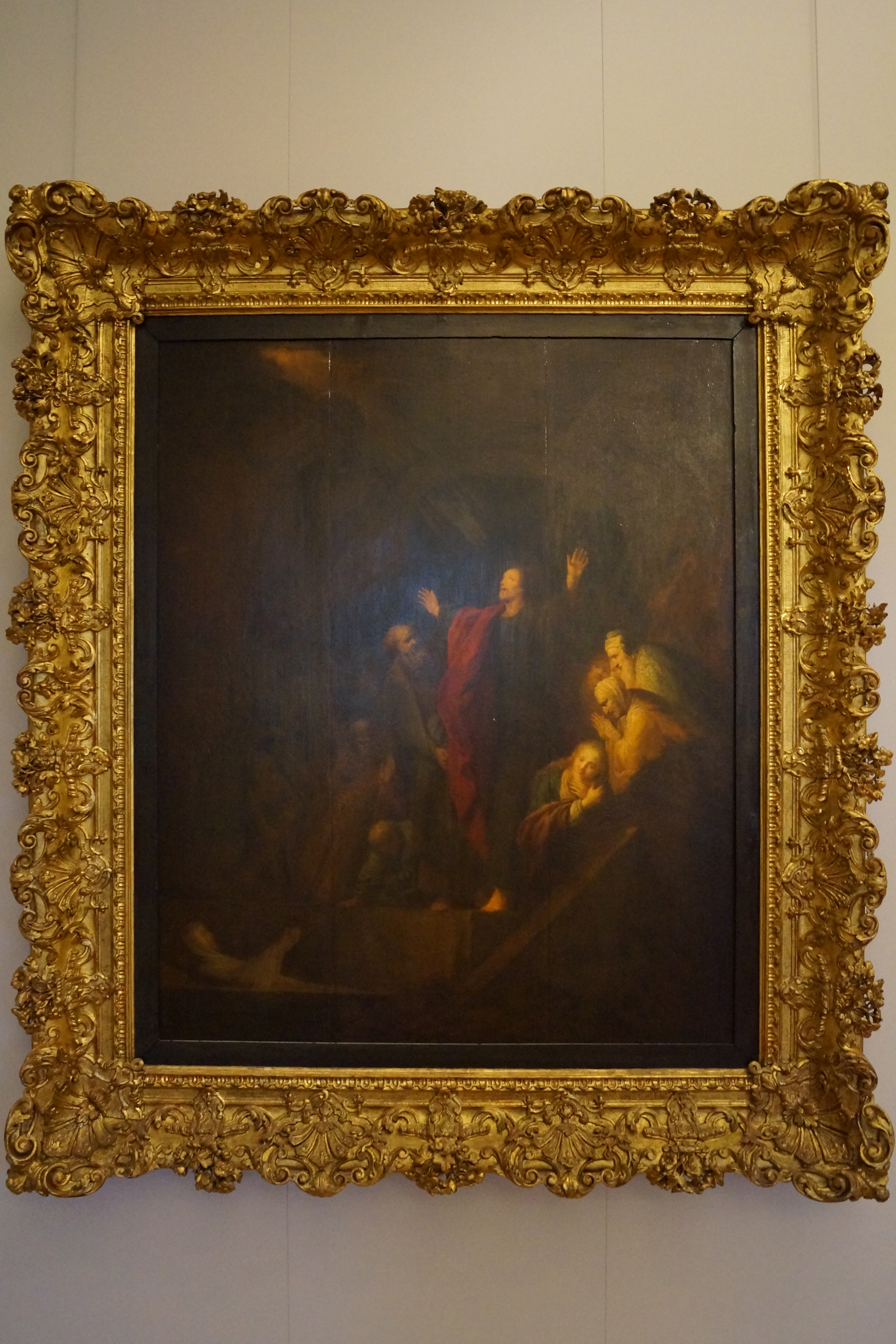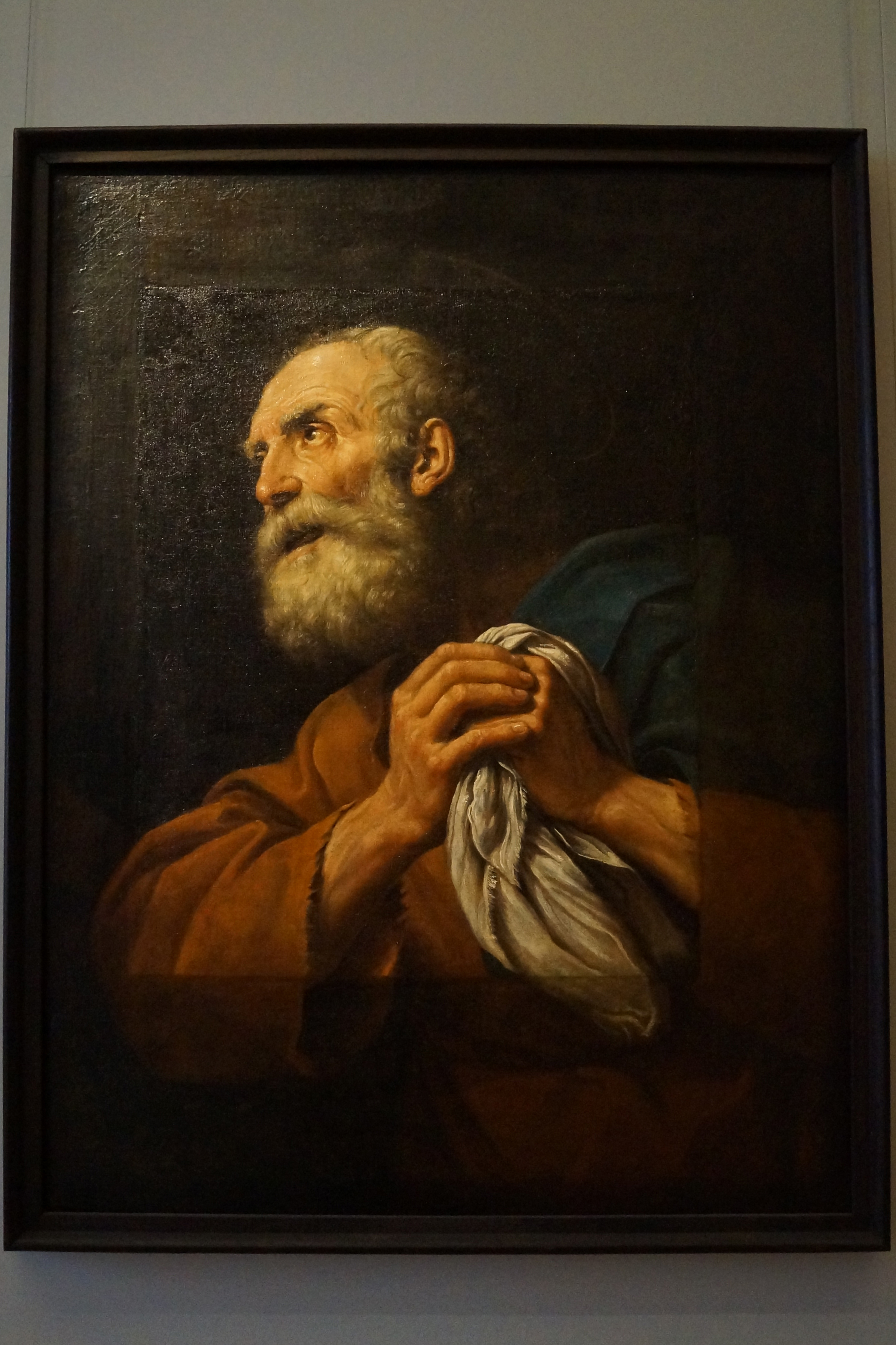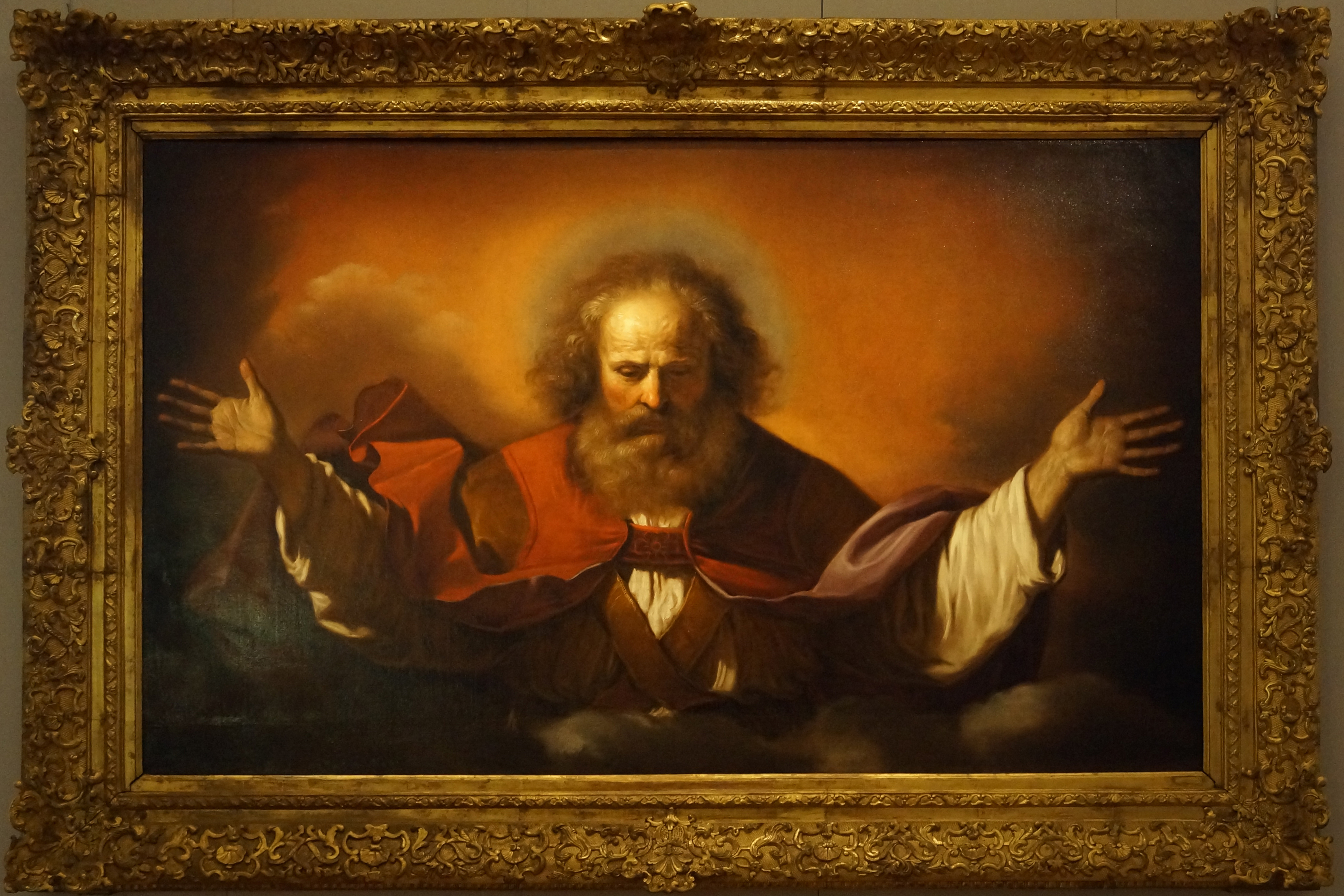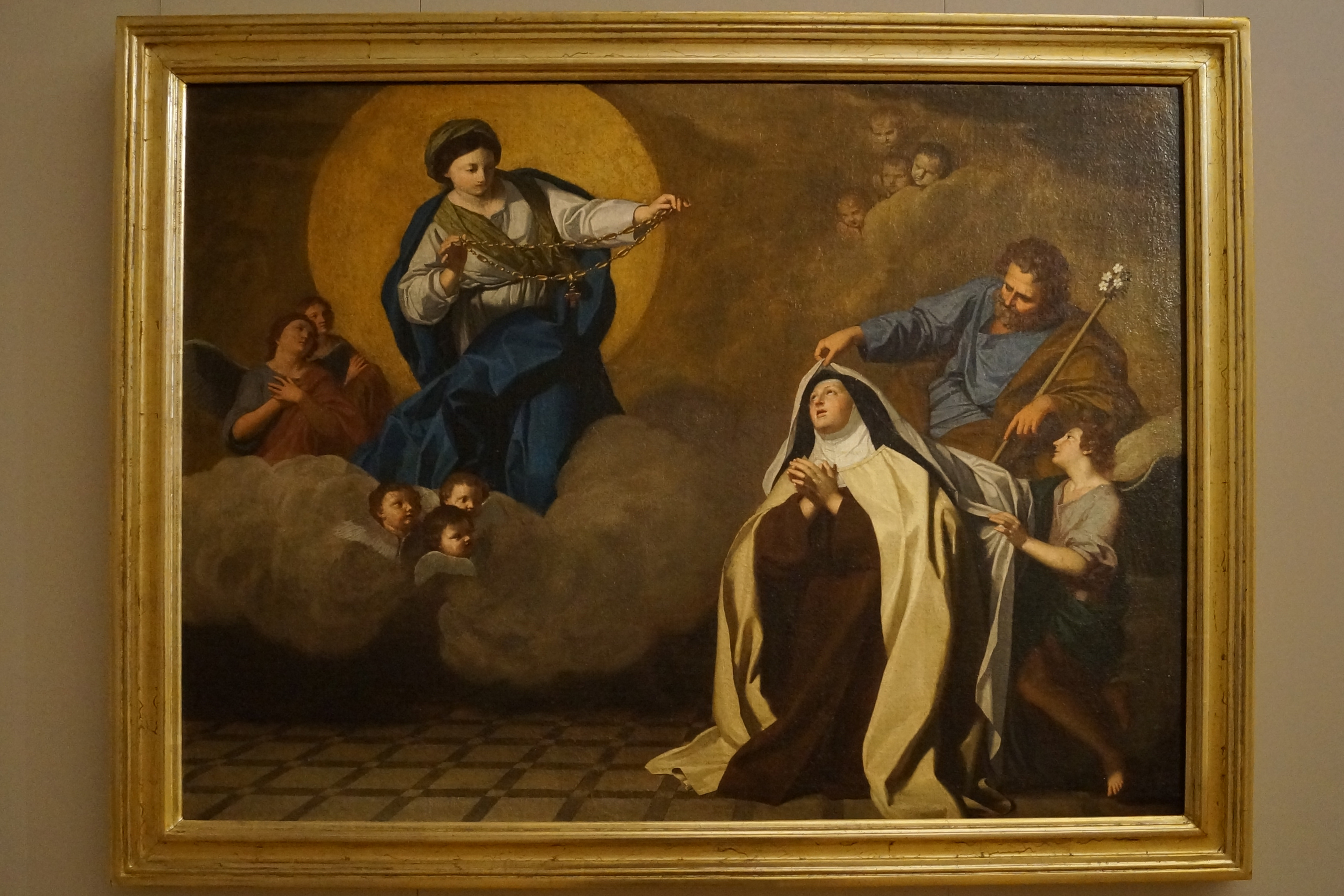 Картина, отмеченная монограммой "PDO" на фрагменте надгробной плиты, может быть датирована примерно 1740 годом. Первоначальная овальная форма, вероятно, подчеркивала интенсивный пафос и спиральный динамизм, который характеризует картину. Работа поступила в музей из династической коллекции.
