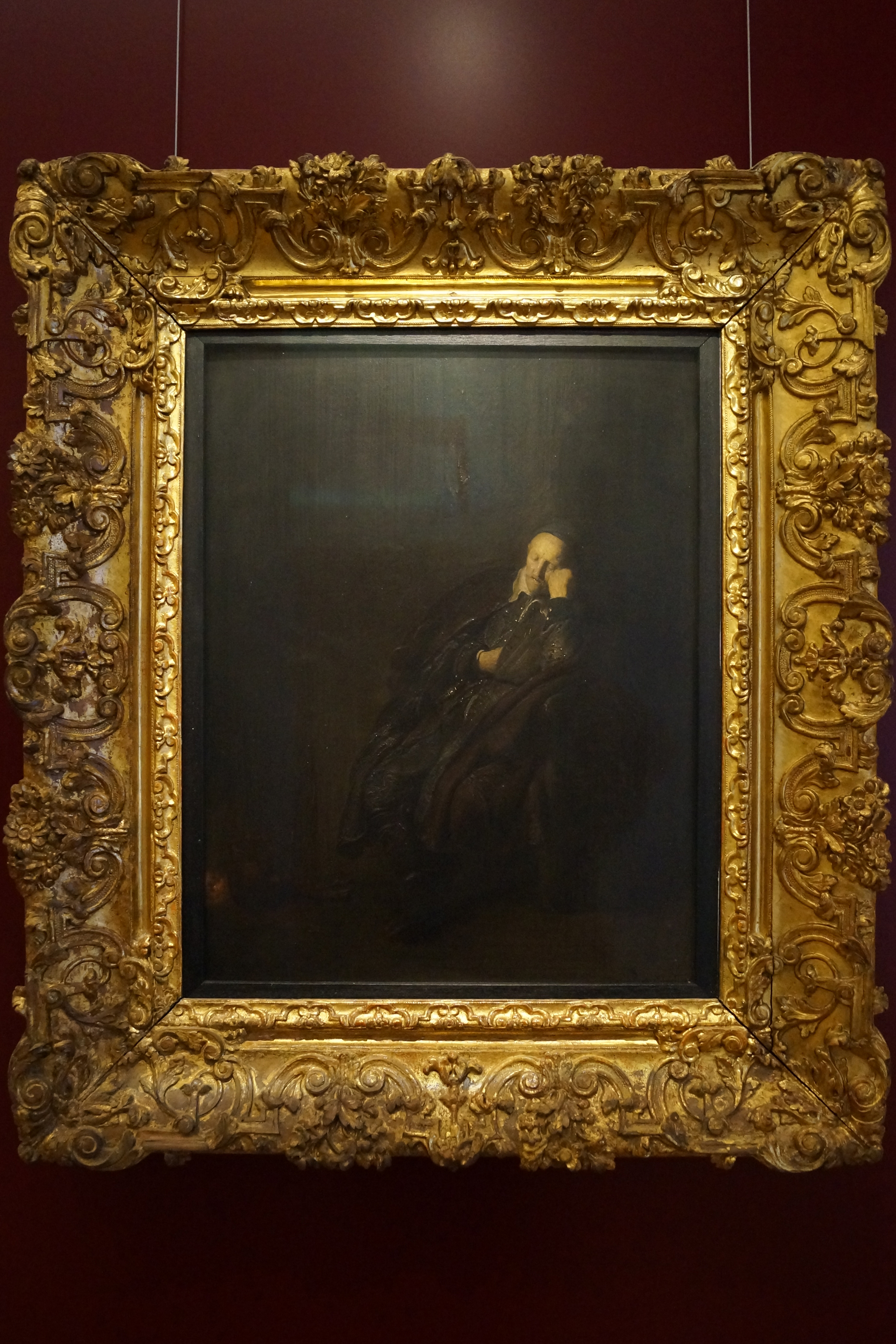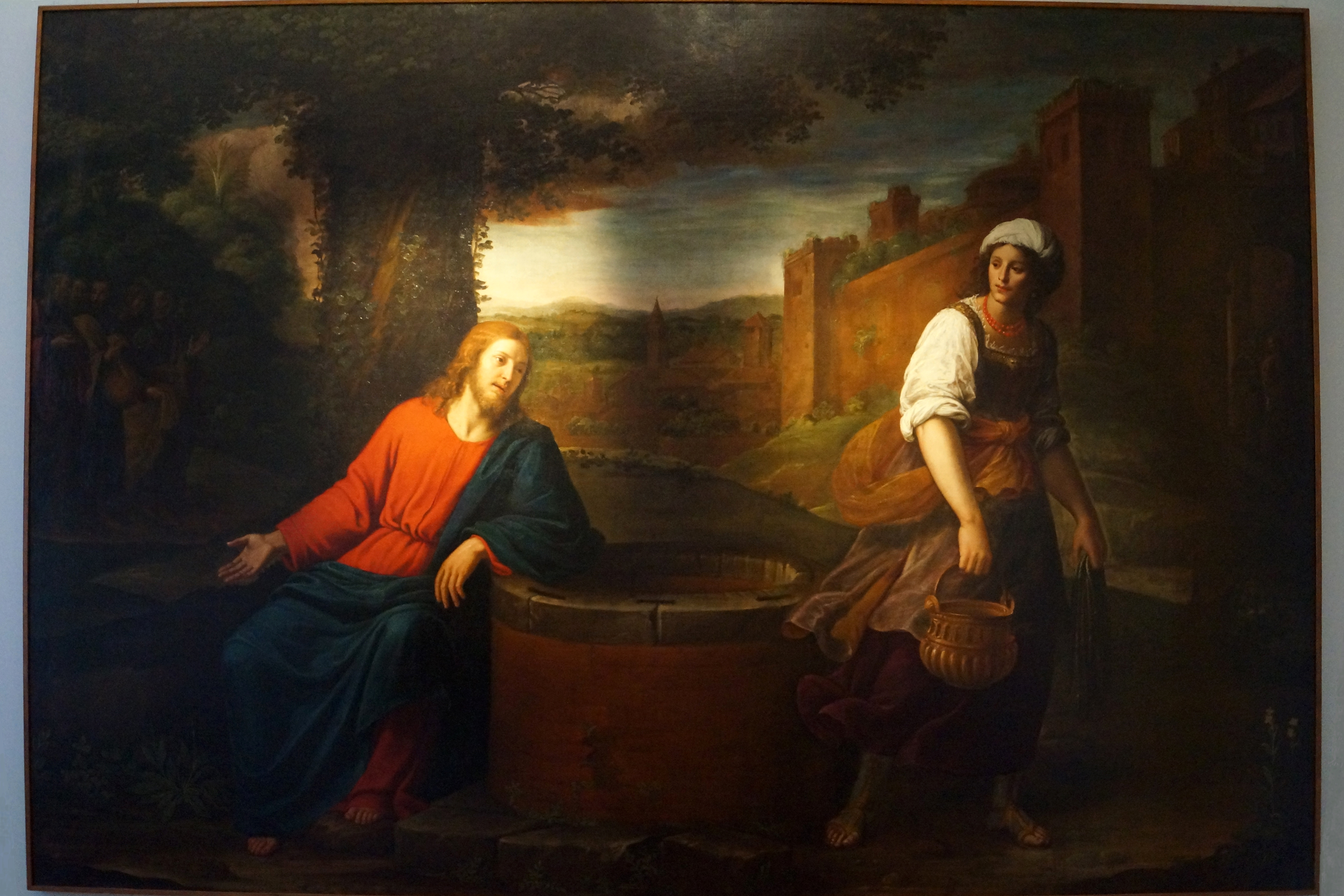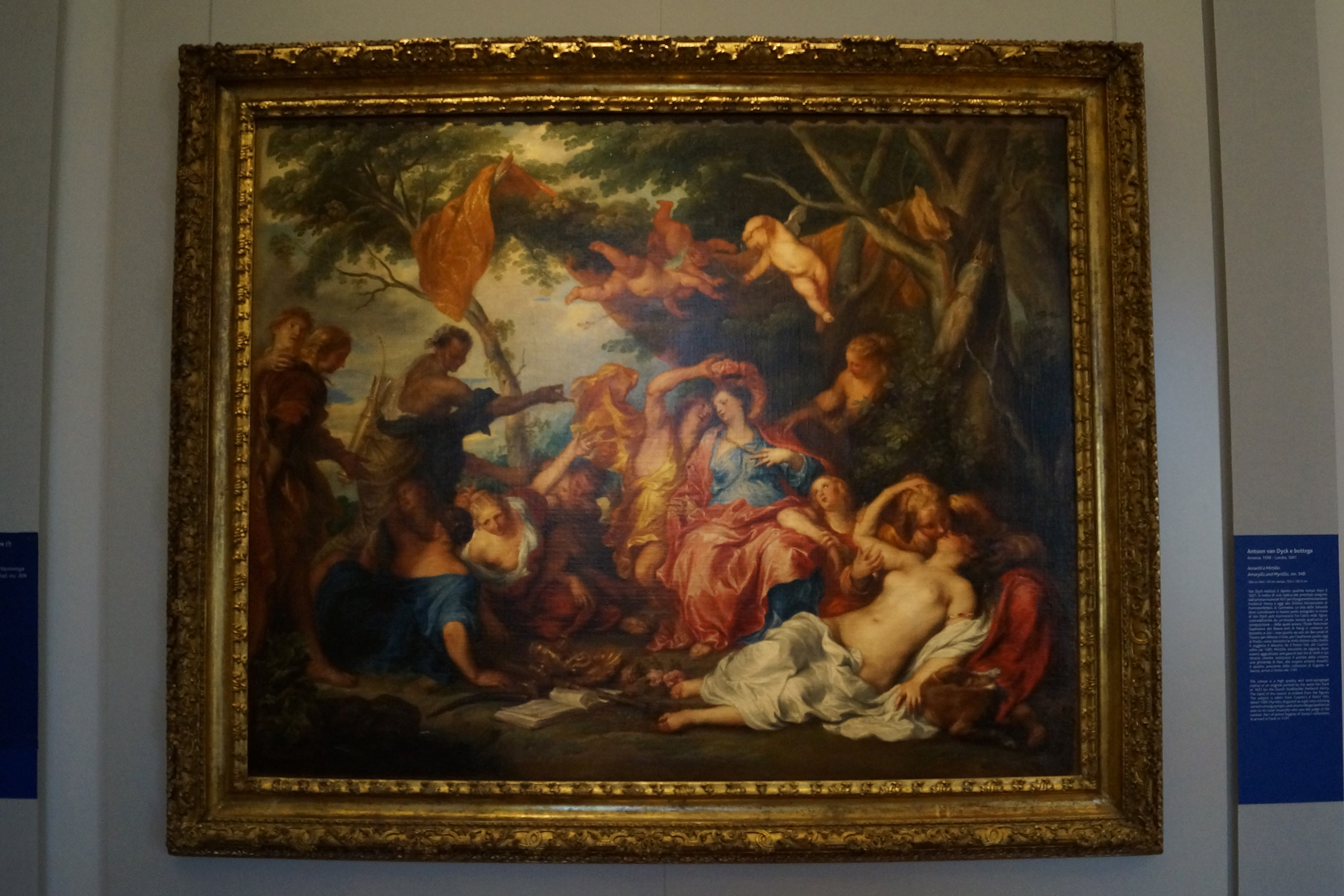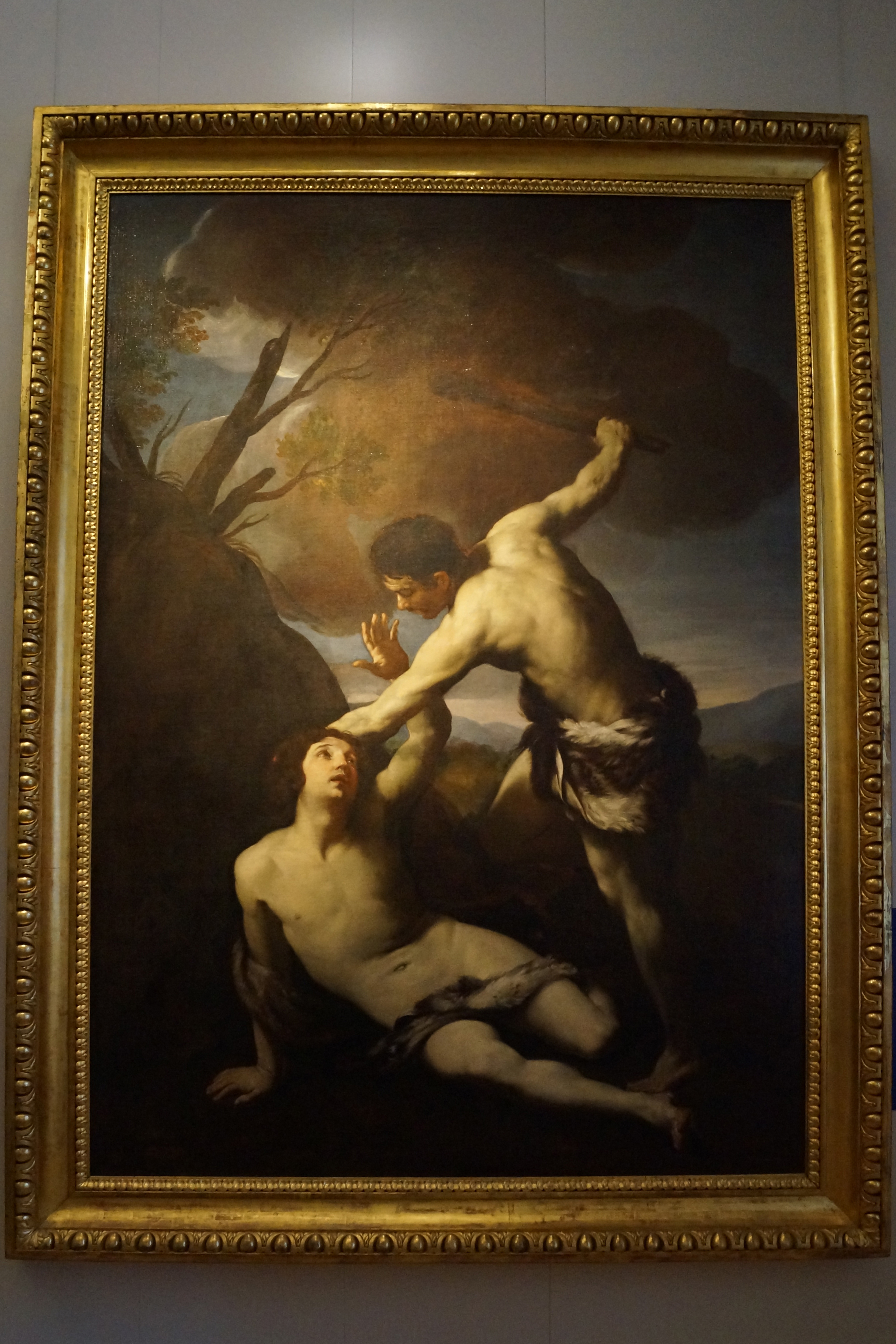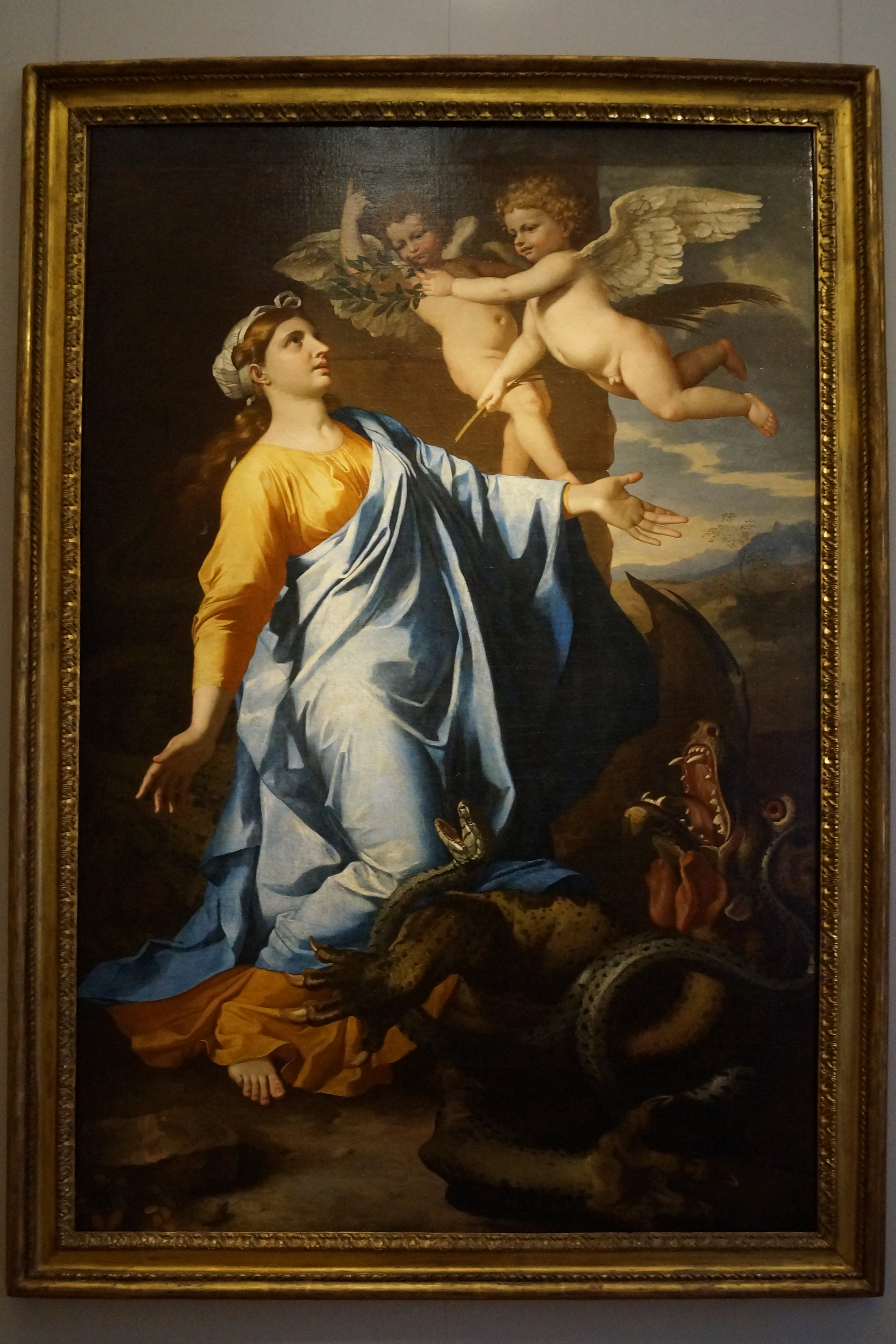 Картина, отмеченная монограммой "PDO" на фрагменте надгробной плиты, может быть датирована примерно 1740 годом. Первоначальная овальная форма, вероятно, подчеркивала интенсивный пафос и спиральный динамизм, который характеризует картину. Работа поступила в музей из династической коллекции.