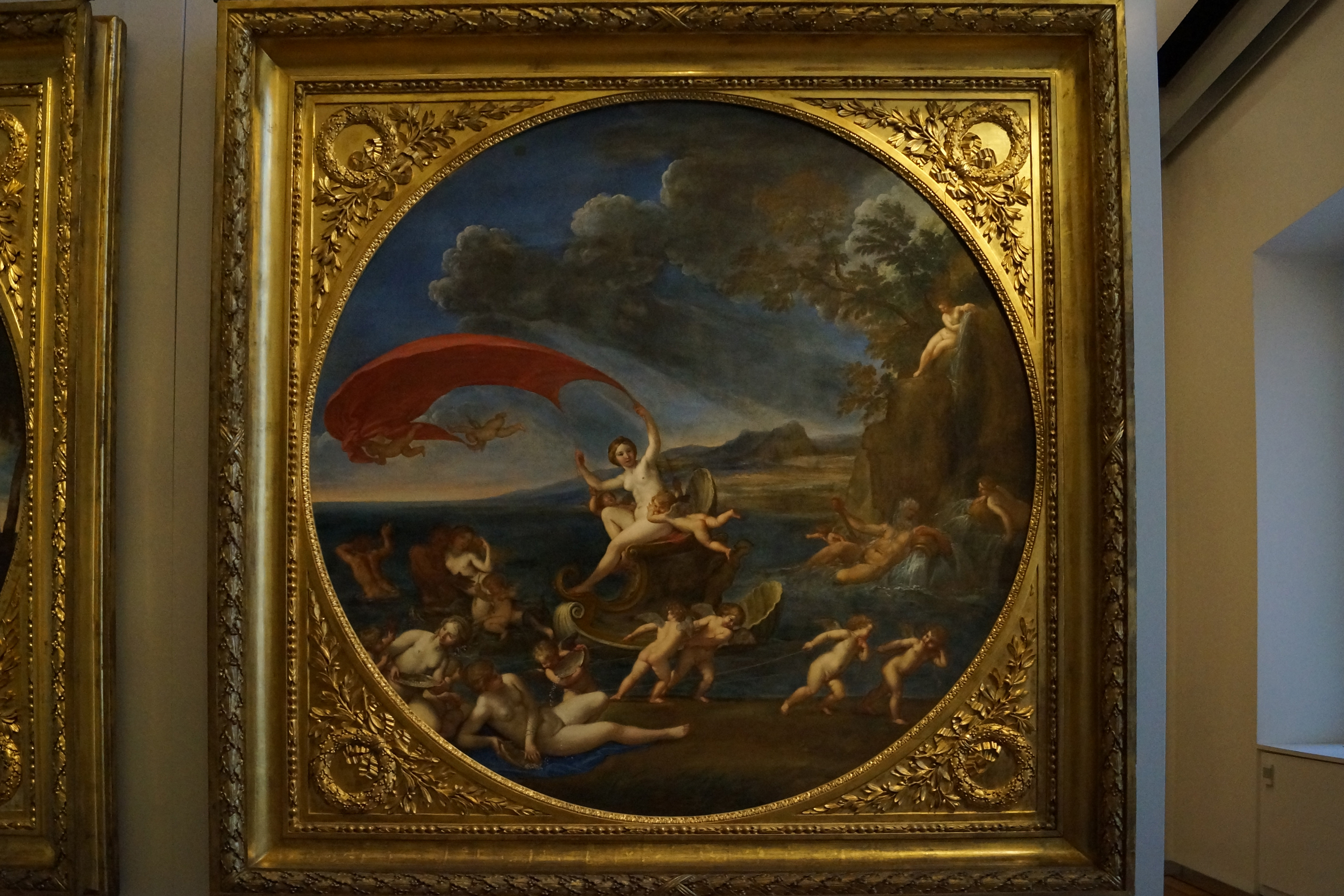 Картина, являющаяся копией оригинала, который находится сейчас в Дижоне, подписана и датирована 1793 годом, является примером аллегорических и мифологических работ, написанных французским художником Ганьеро. Работа была упомянута в 1831 году в собрании савойских герцогов Кариньяно.