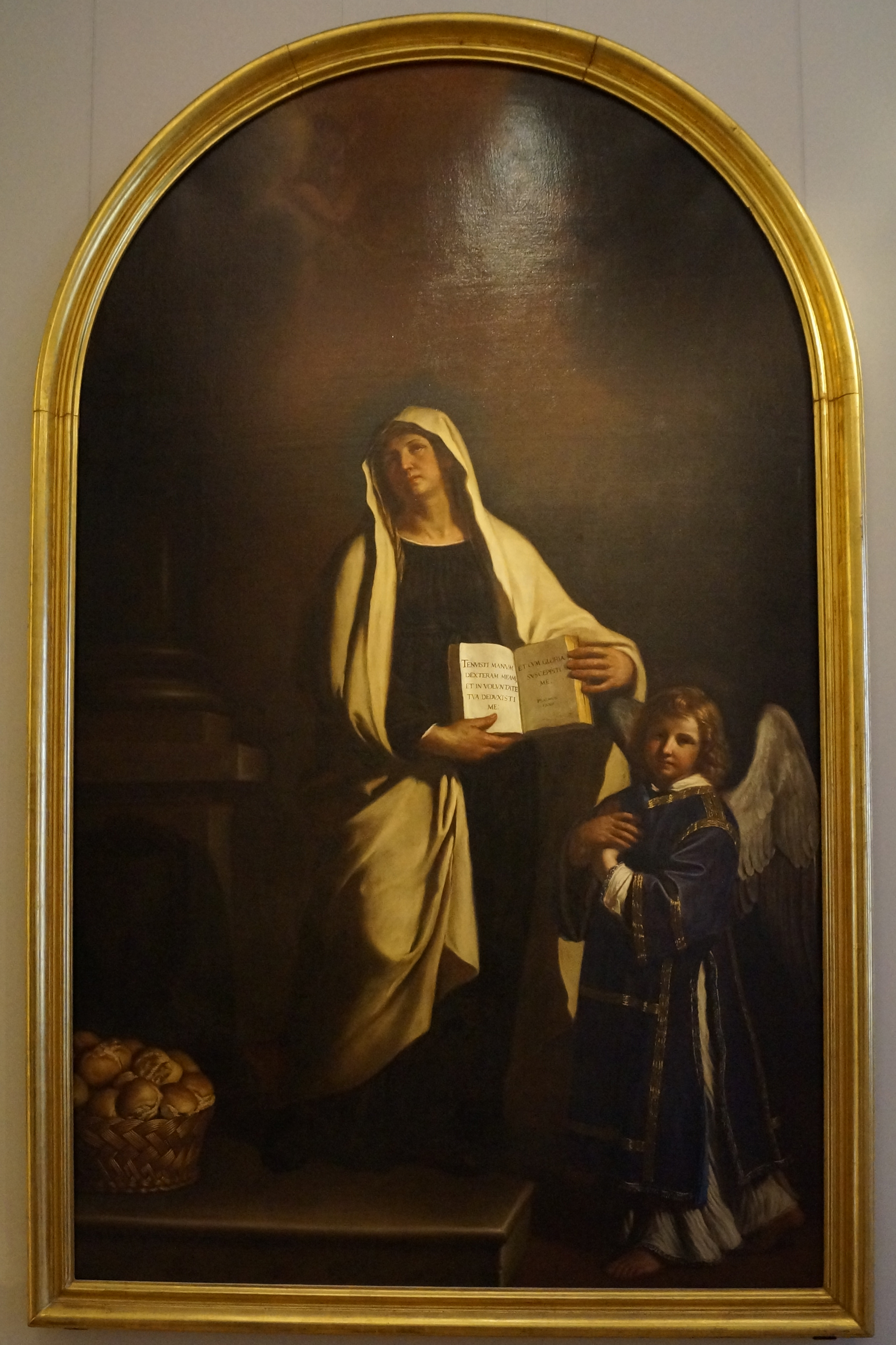 Полиптих со святым Иво "Сбор ходатайств бедных между святыми Григорием и Иоанно Богословом на Патмосе; В верхнем регистре: Святое Семейство, Святой Михаил и Святая Екатерина; вверху: лицо Христа (изображение Эдессы). Ангел Благовещения и Богородицы Благовещения (деревянные скульптуры); В пределле: истории святой Марии Магдалины.