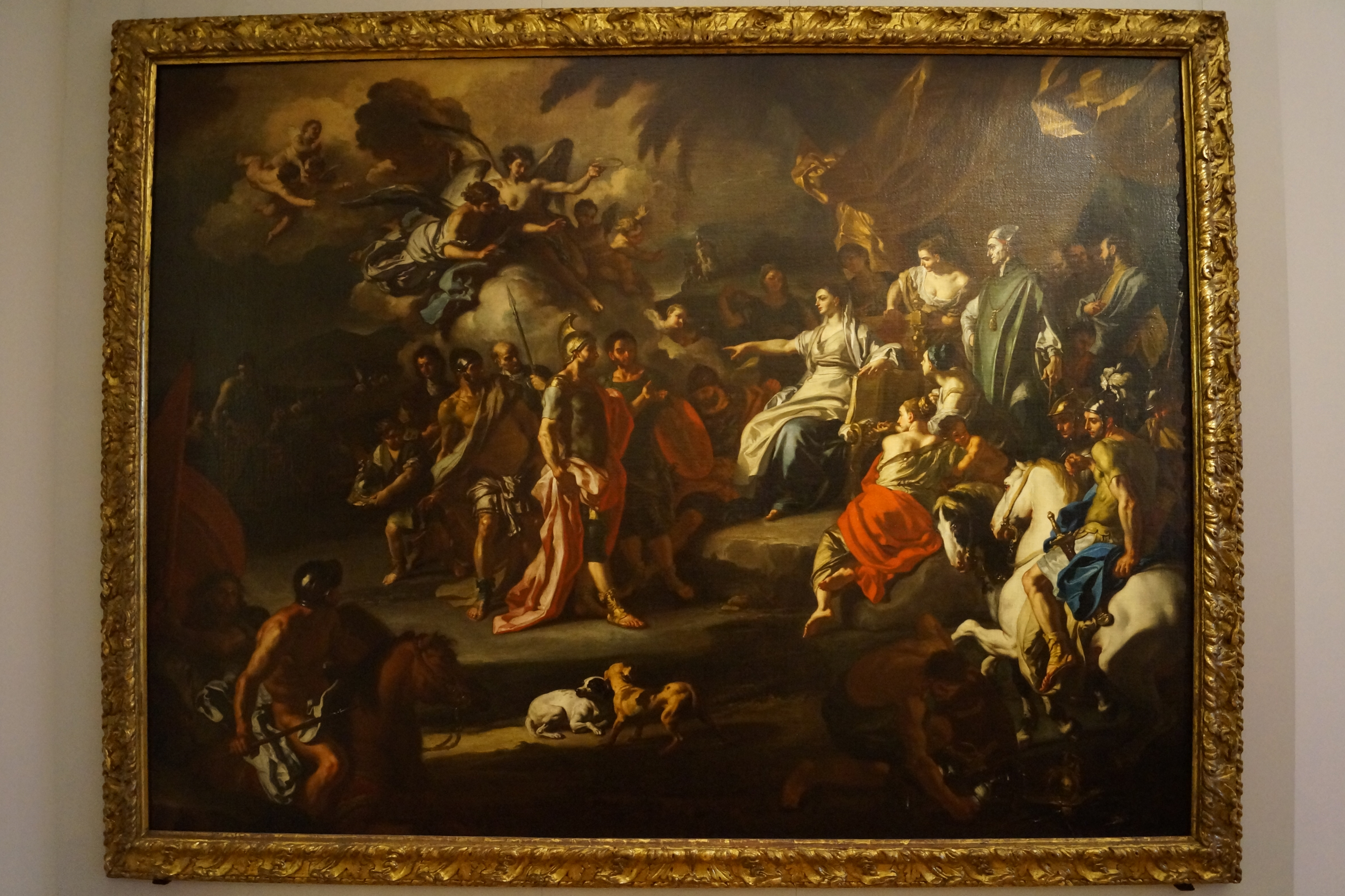 Картина, заказанная Карлом Эмануэлем III Савойиским итальянскому художнику Джузеппе Марии Креспи, была написана в 1742 году его сыном Луиджи, который с 1740 года руководил мастерской отца.
