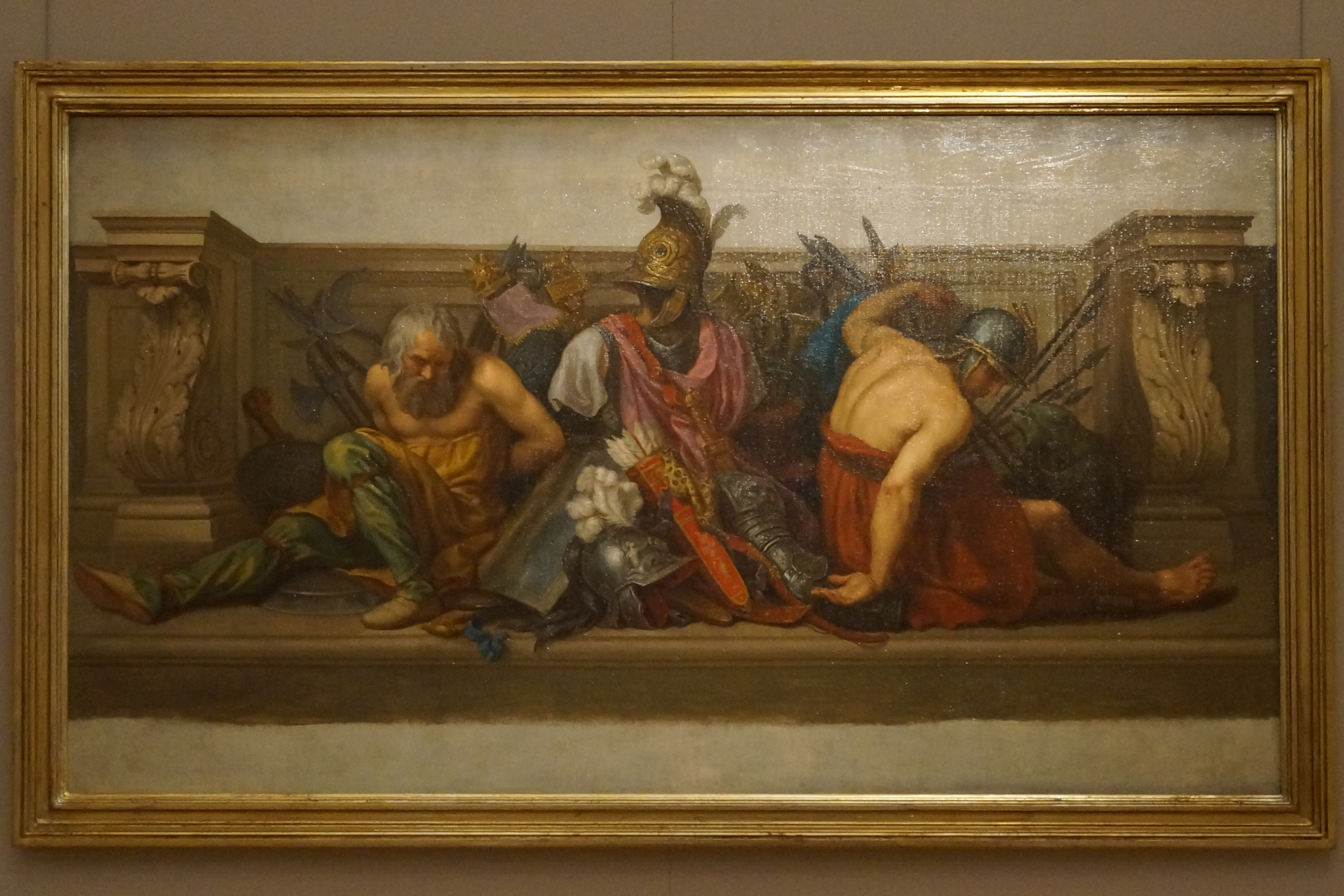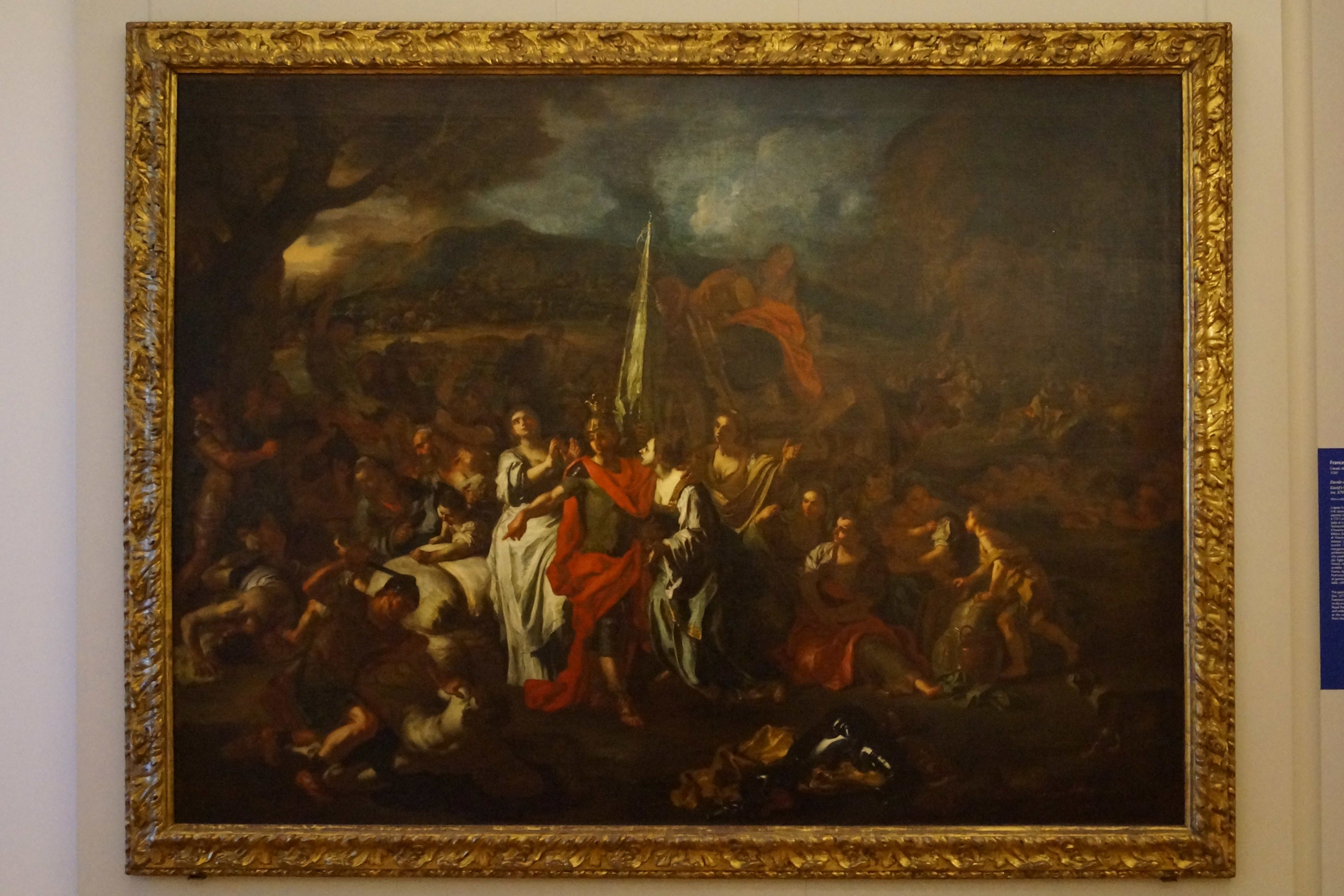 Работа представляет собой подготовительный экскиз для нижней части гобелена с изображением Александра в палатке Дариуса (Турин, Museo Civico d'Arte Antica), выполненного в гобеленовой мастерской после того, как он был вновь открыт в 1823 году. Картина была куплена в 1981 году у наследников Пешё.