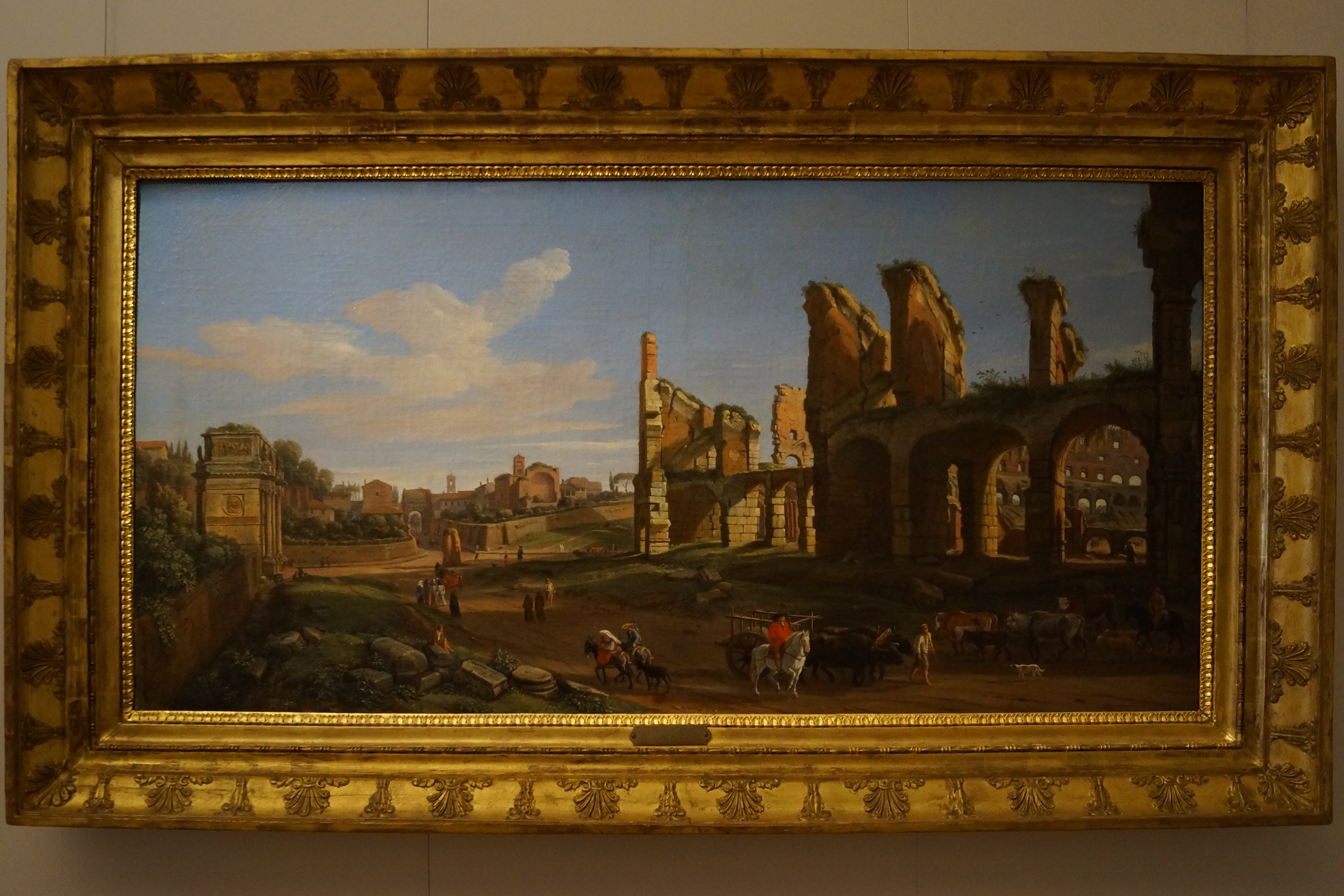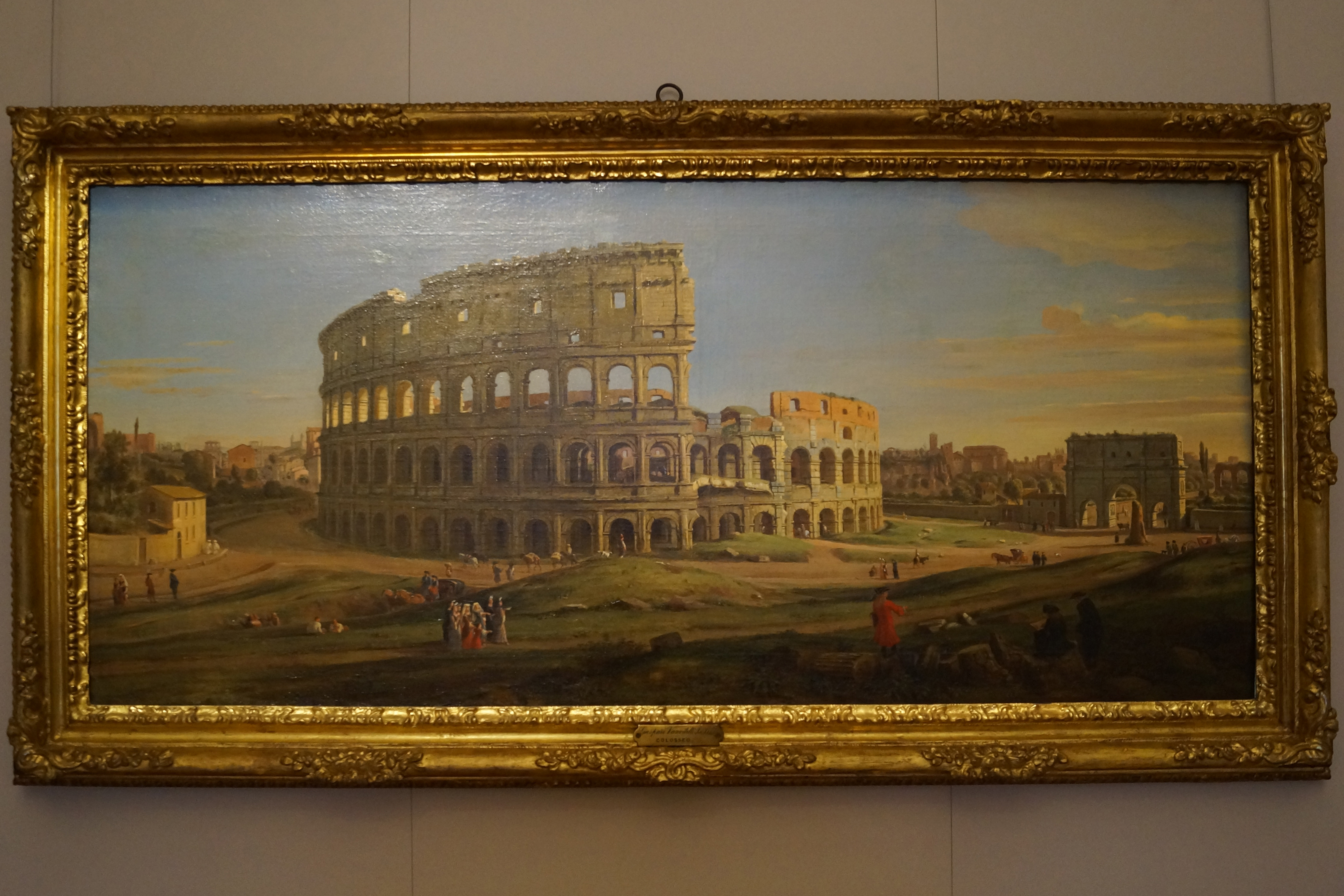 Картина Вид на Колизей и Римский форум подписана и датирована 1711 годом. Вероятно, она была приобретена в Риме по заказу Витторио Амадео II – возможно, через Филиппа Юварру – картина зарегистрирована как находящаяся в Королевском дворце в 1754 году с двумя другими такими работами, как вид на порт Неаполь и вид на Колизей.