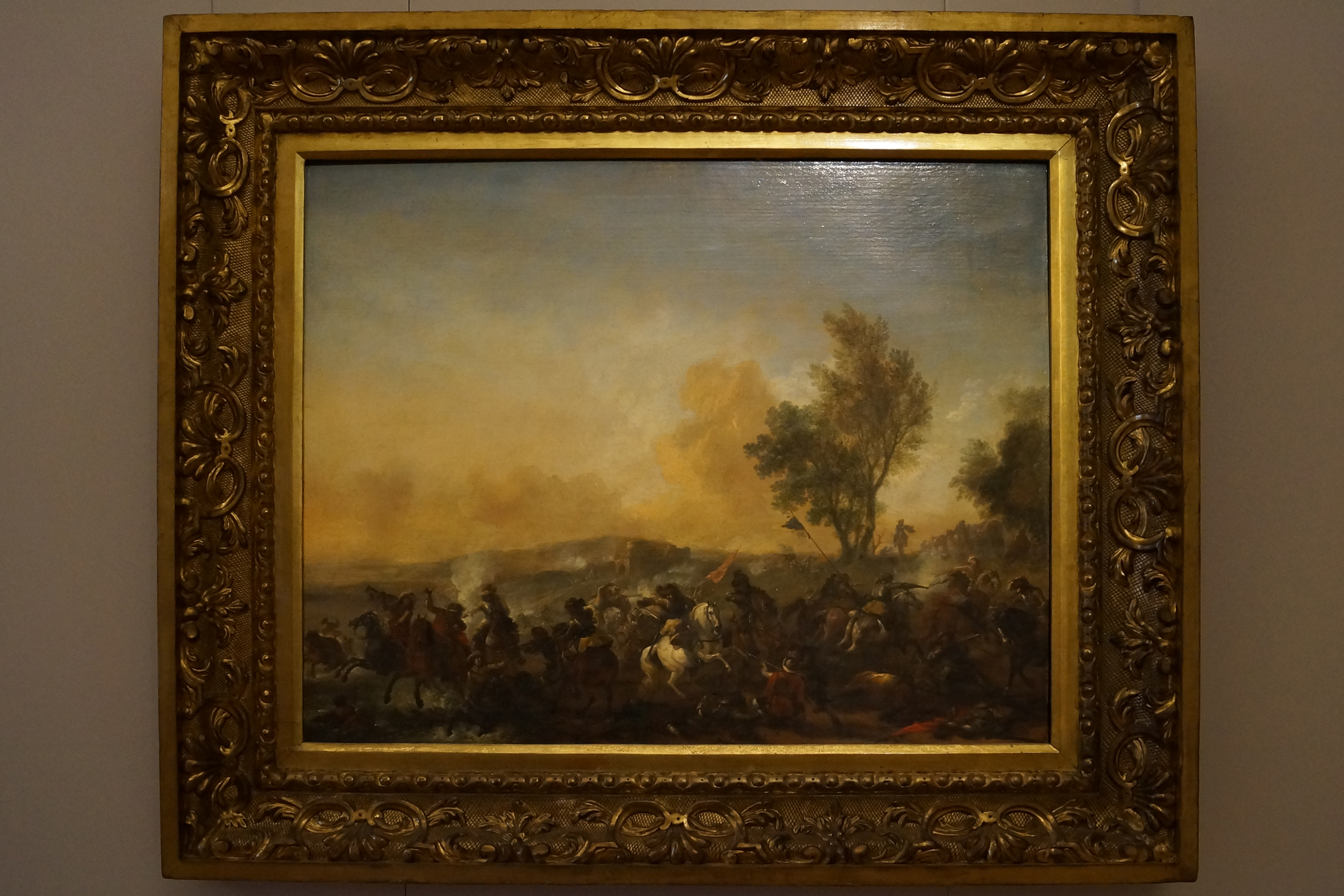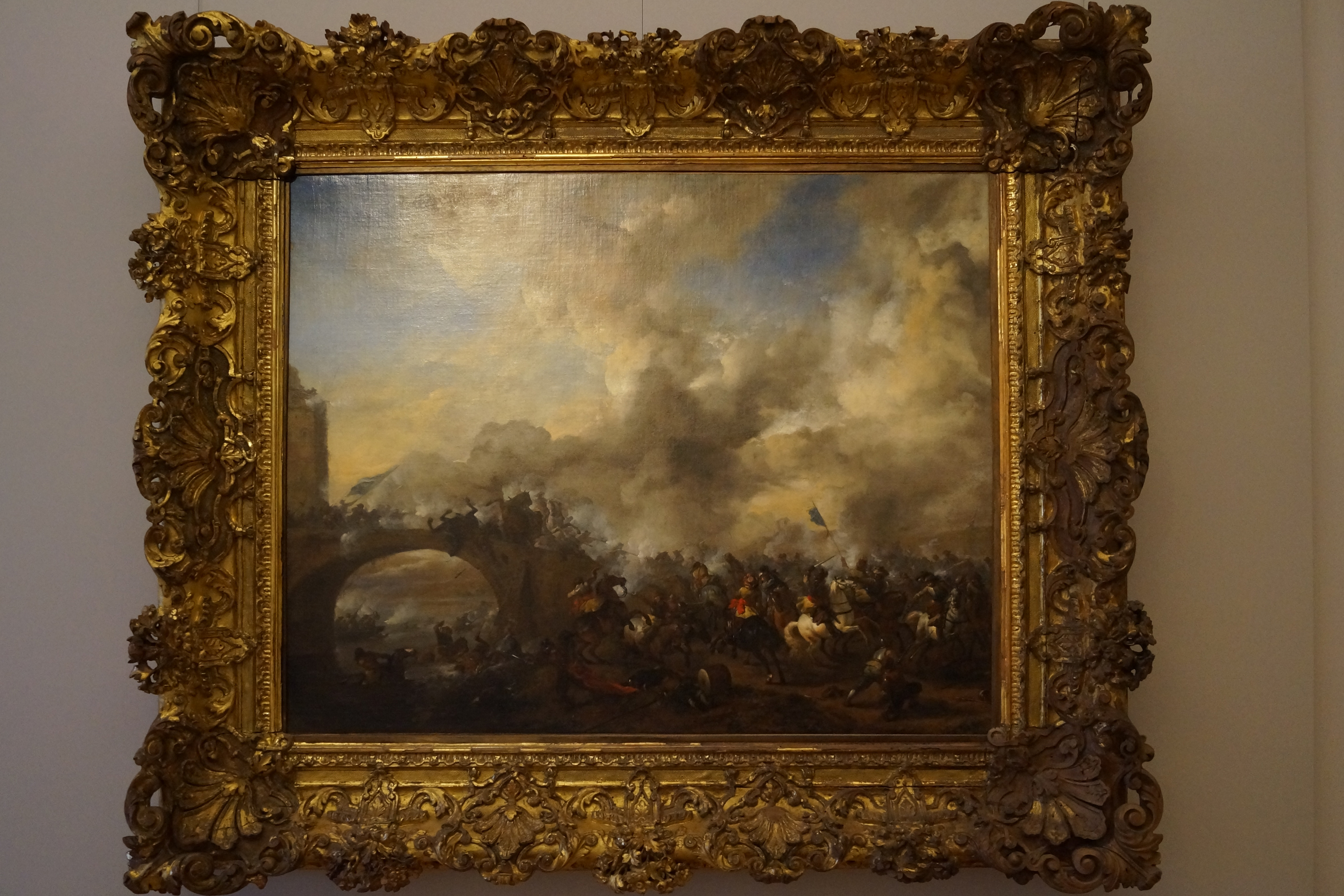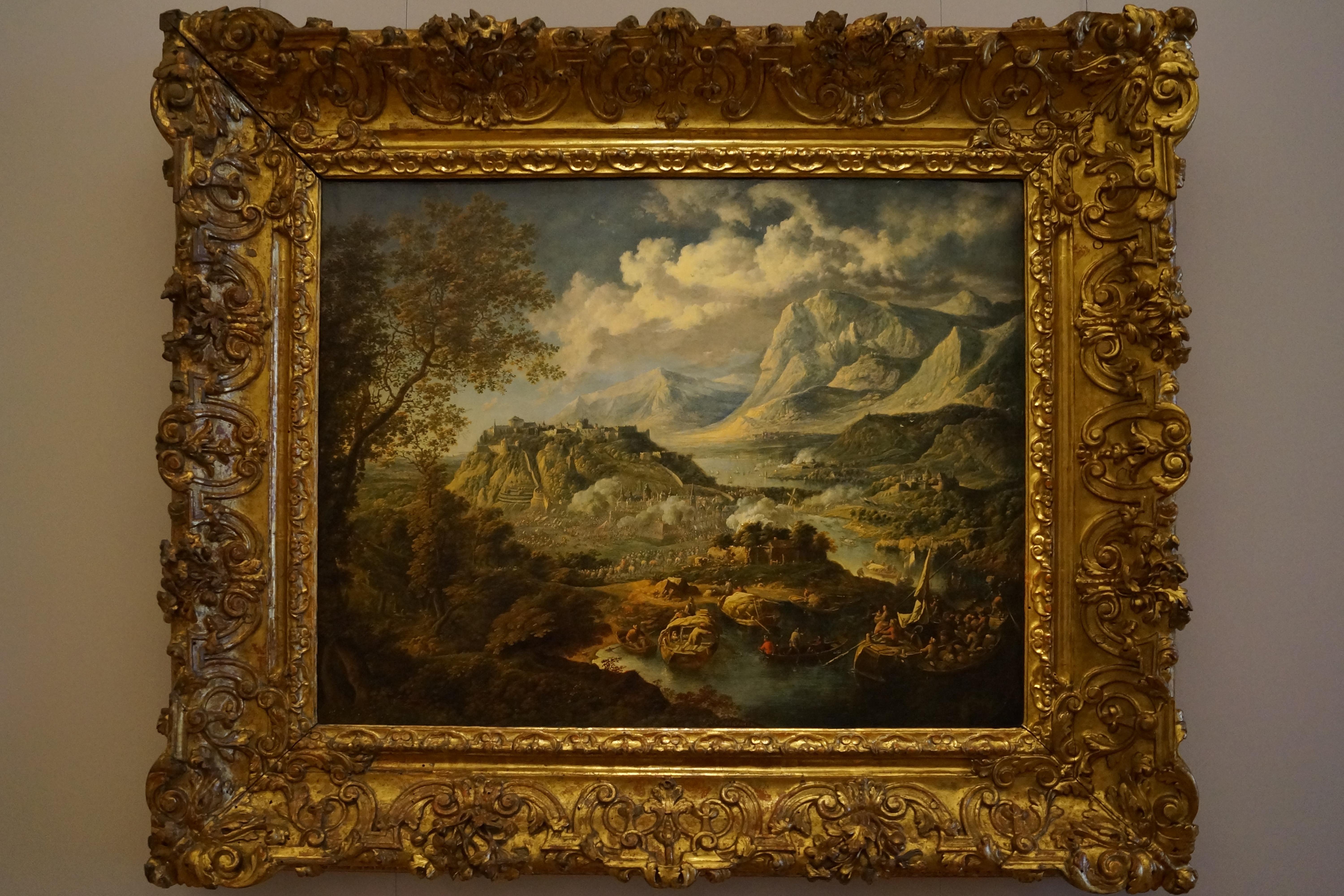 Картина подписана и датирована либо 1710, либо 1718 годом. Город, который когда-то считался Лондоном или Антверпеном, также мог быть Веной после победы принца Евгения Савойского-Суассона во время турецкой осады в 1683 году. Картина, принадлежавшая коллекции Евгения, была приобретена Карлом Эммануилом III в 1741 году.