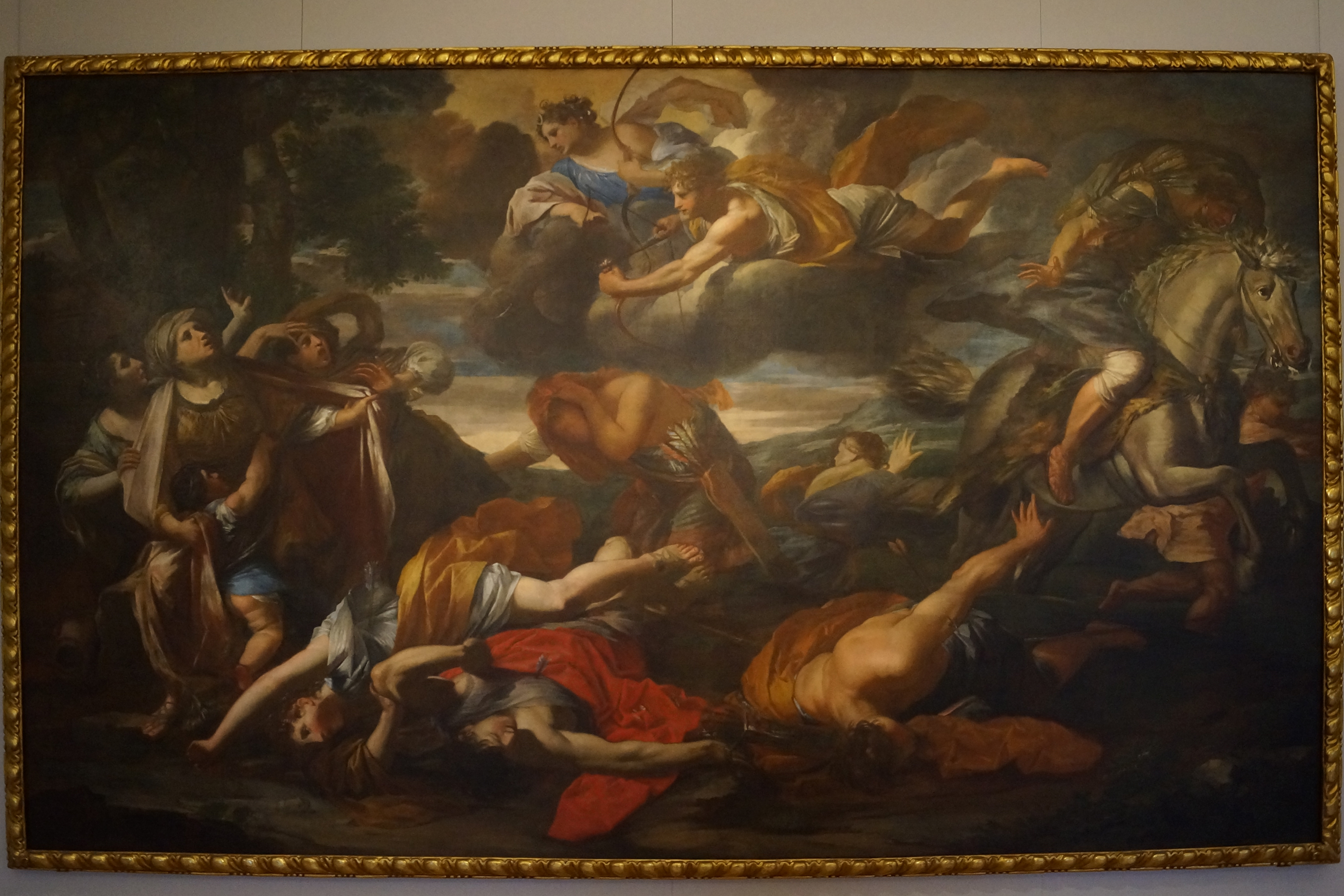 Картина "Резня ниобидов" была написана в 1760 году. Дофин, уроженец Лотарингии, много работал в резиденции Савойи. На полотне изображён эпизод из Илиады. Инвентаризированный в 1677 году в Кастелло-дель-Валентино, Турин, холст был частью династической коллекции.